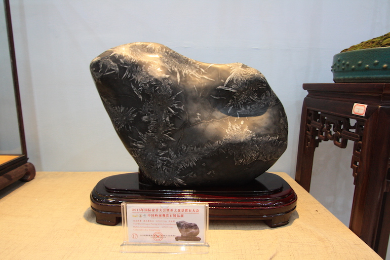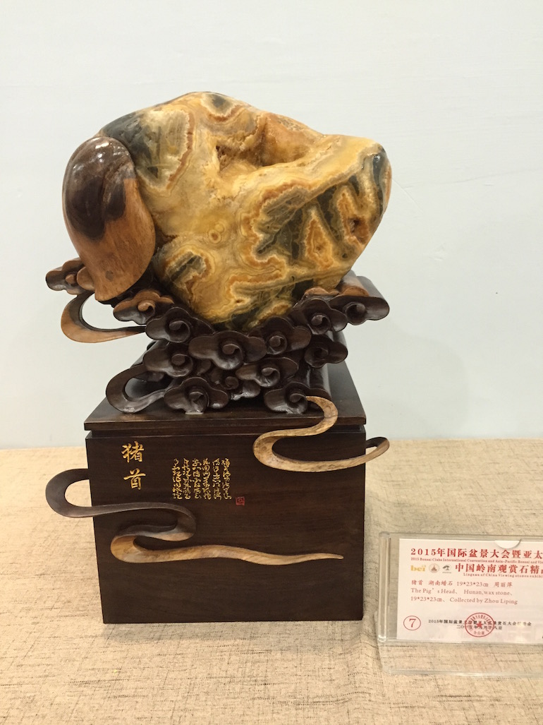 In addition to the Bonsai exhibition at the Bonsai Clubs International Convention (BCI) there was the Asia-Pacific Bonsai and Viewing Stone convention and exhibition which was held in the Science Hall in Guangzhou in China. There was a stunning collection of viewing stones of all shapes, sizes and colours and it was beautiful.