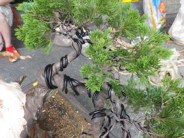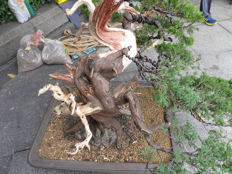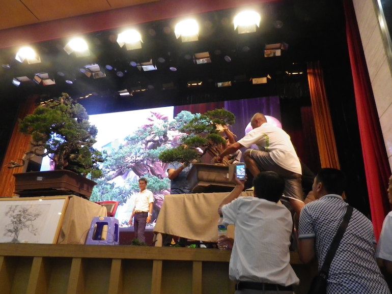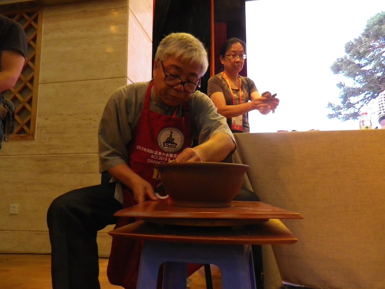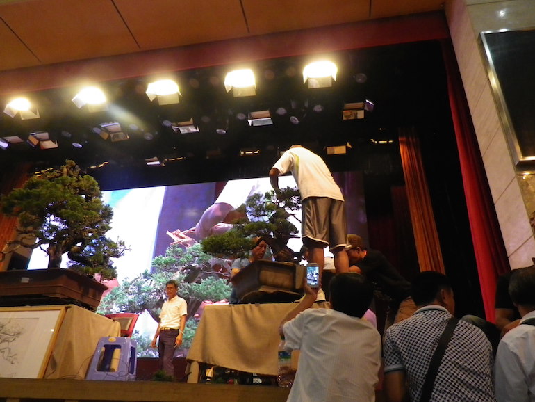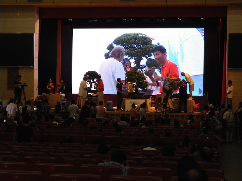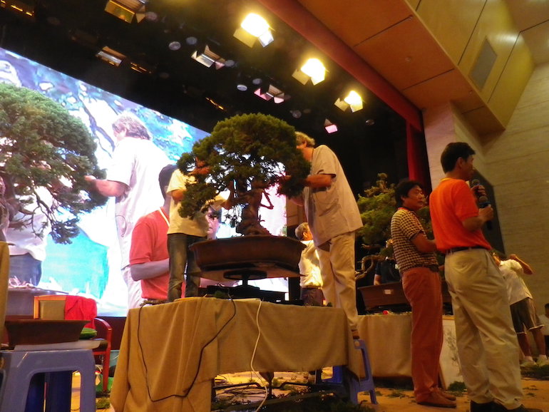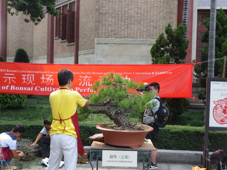 At this years Bonsai Clubs International Convention (BCI) in Guangzhou in China there were a good range of demonstrators and speakers from around the world. They were demonstrating styling, bending branches, wiring, jin and shari creation and pot making.