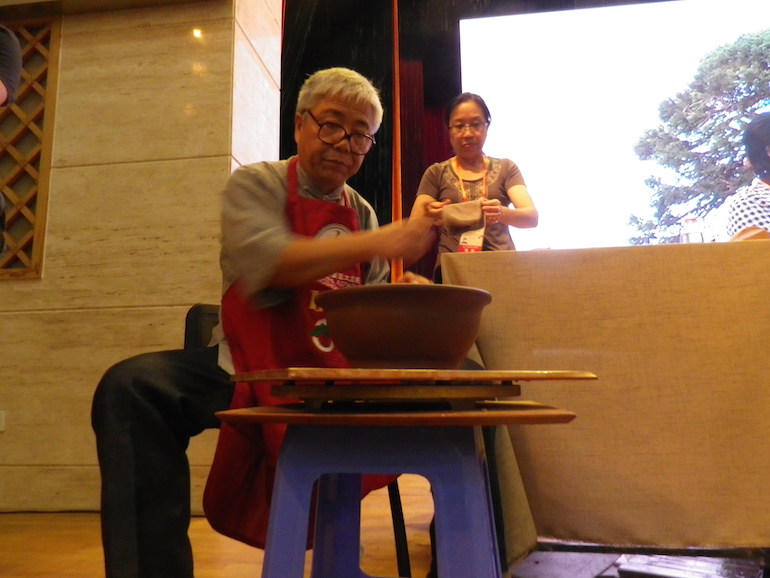 Mr Gong Lin Min, Chinese Zisha pot making master and is a senior artist and craftsman in China and has been devoted to researching and producing Zisha arts for more than 20 years. He did a demonstration of making a Zisha pot on stage within the Science Hall Amphitheater.