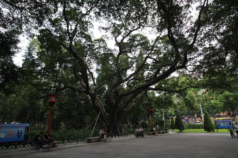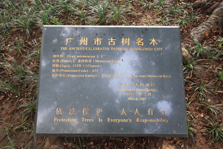 Within the grounds of the Yat-Sen’s Memorial Hall Park in Guangzhou were the most majestic mature figs and these are the ancient and celebrated trees of Guangzhou City. They are none other than Ficus microcarpa from the Moraceae family and are in excess of 150 years of age. They are protected trees within the city and the moto is that ‘Protecting Trees Is Everyone’s Responsibility’.