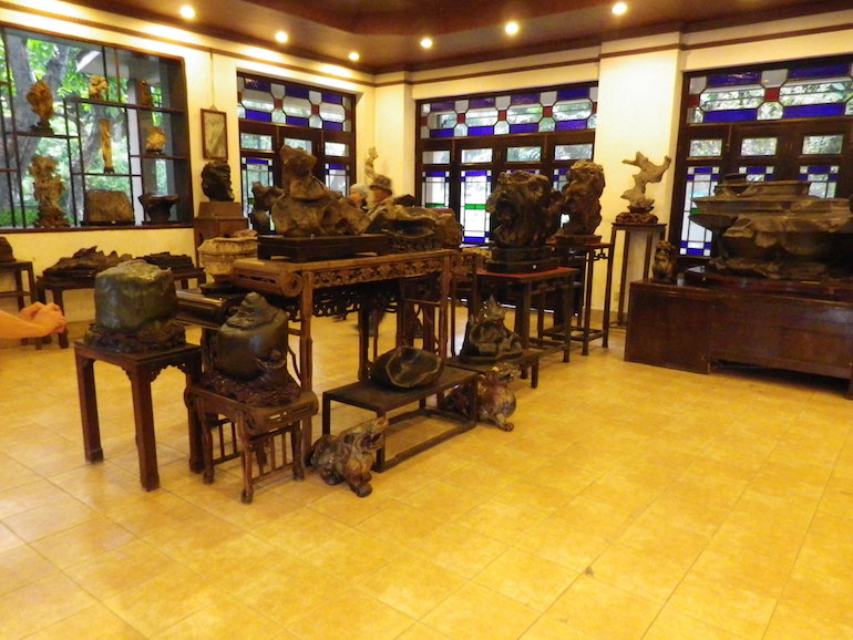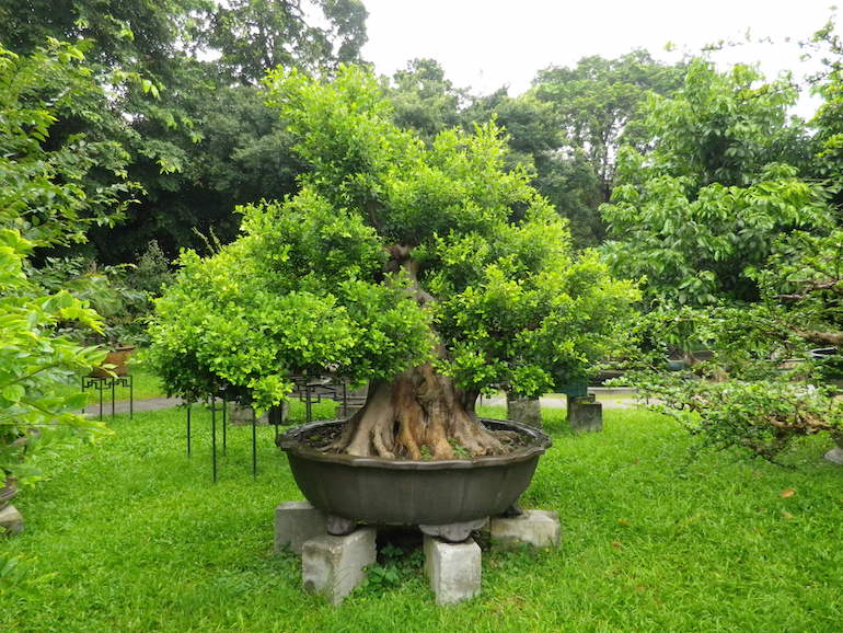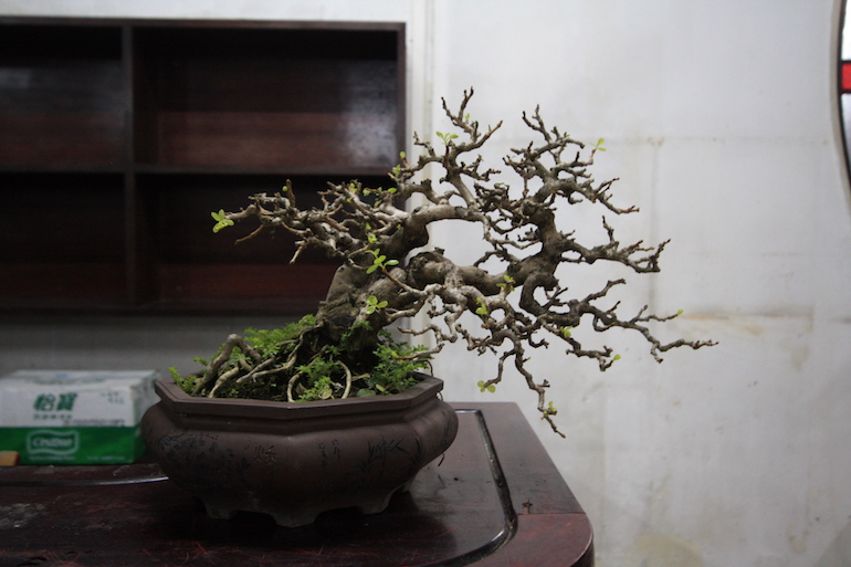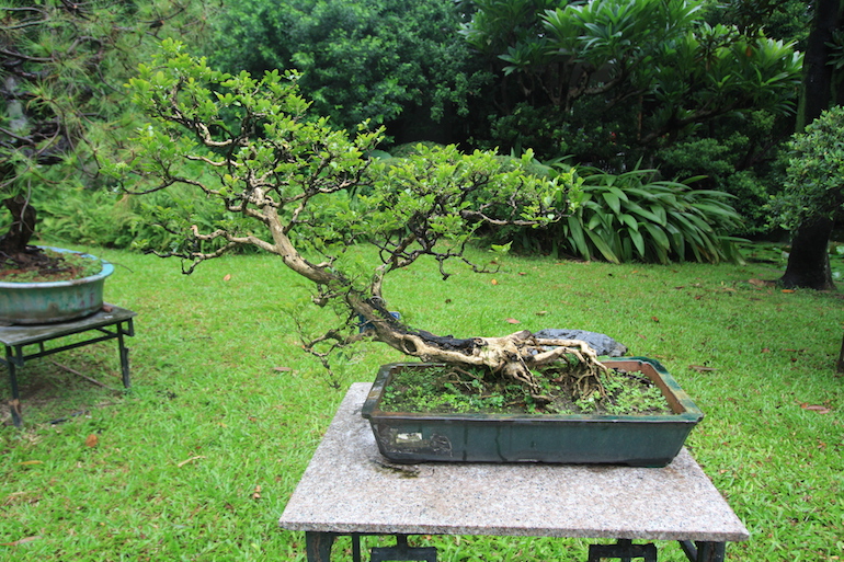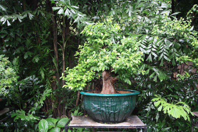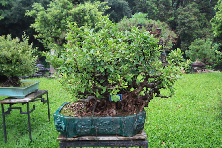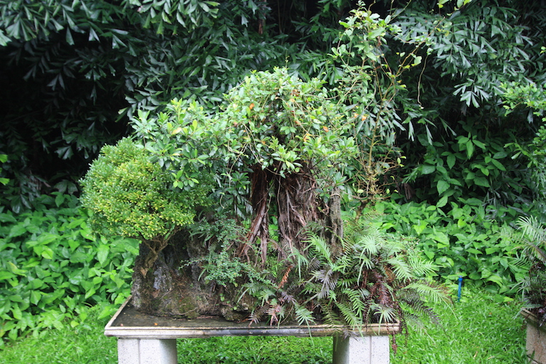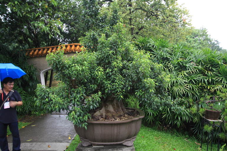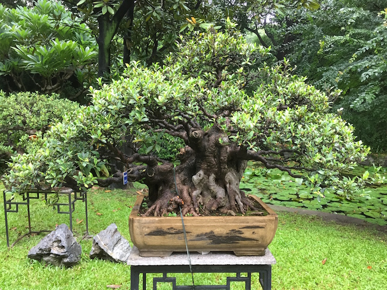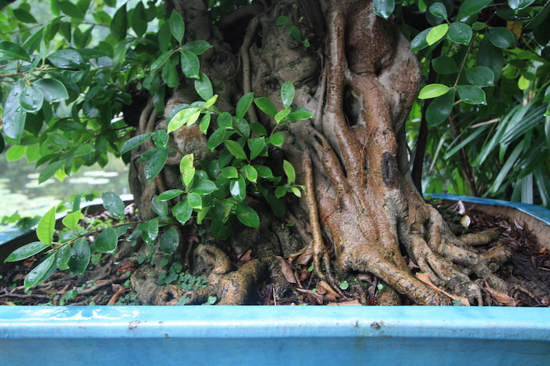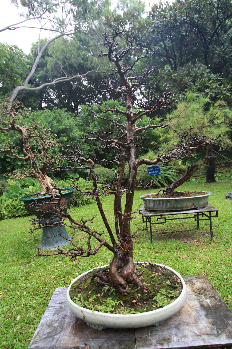 Other elements of interest included the Oak tree planted by Her Majesty Queen Elizabeth as well as an area of the garden done in more of a Japanese style but with Chinese elements. The mature Figs with their aerial roots were impressive and within the garden area there was a large gallery of viewing stones and more smaller bonsai on display. One other thing we noticed was that on large wounds they tended to foil dress these to aid in reducing water / sap loss in the high temperatures.