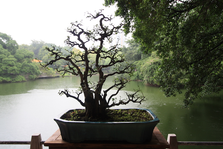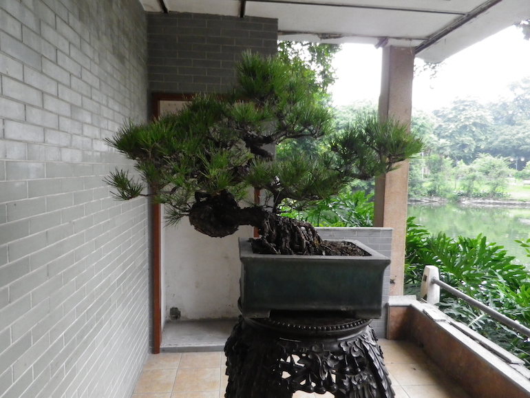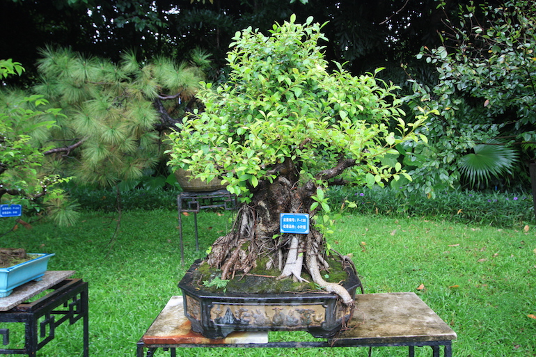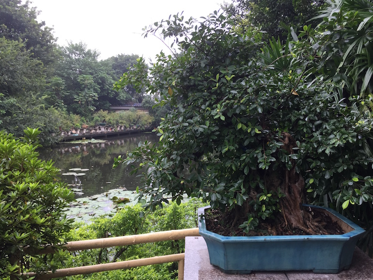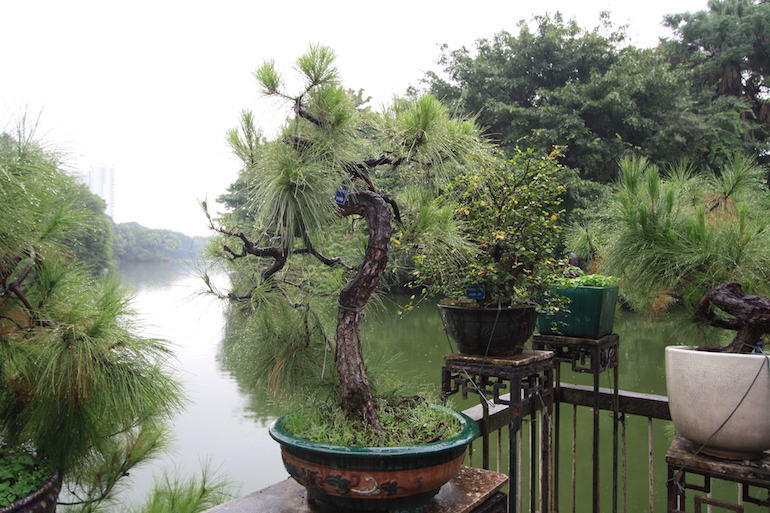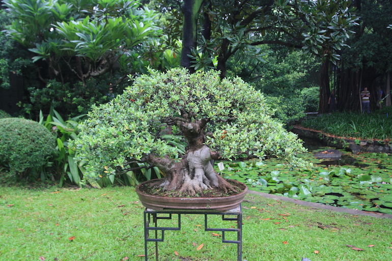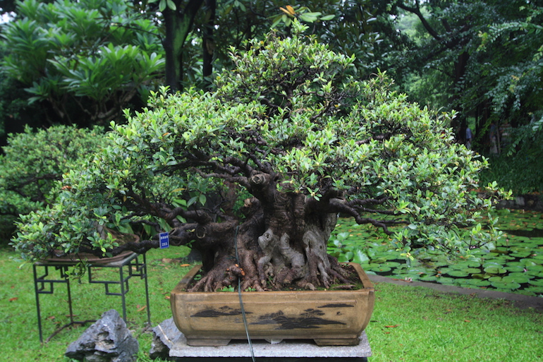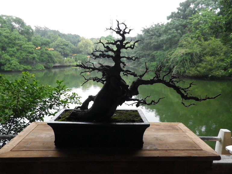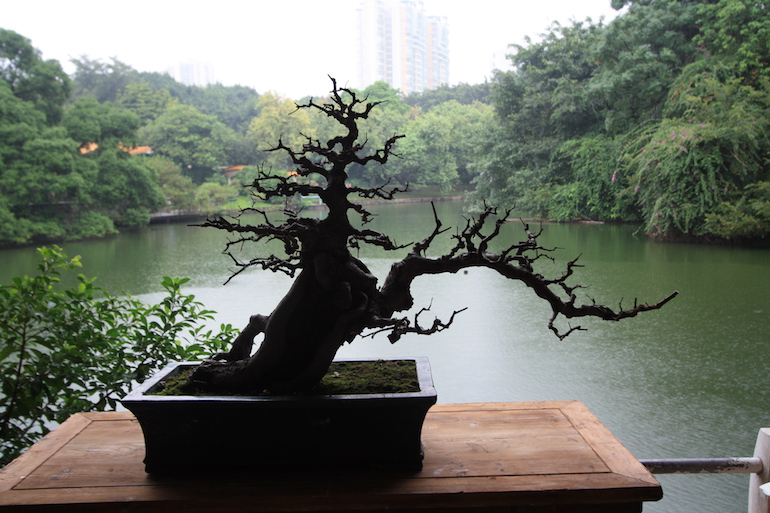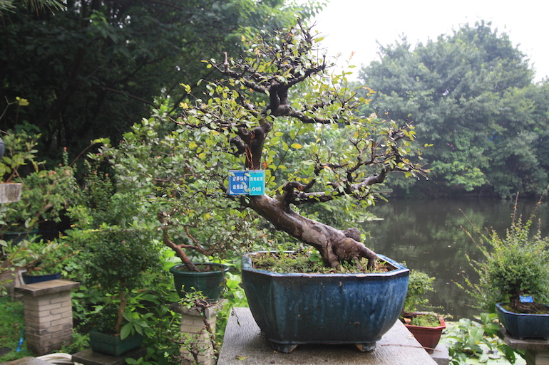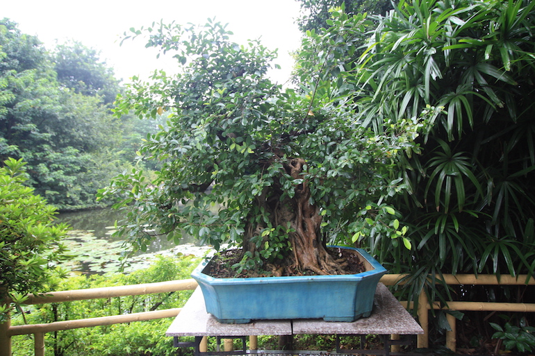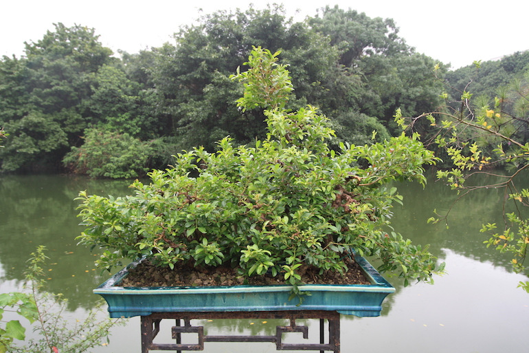 The Liuhuahu Park features a sub tropical scenery of palms, ficus and flowering trees and shrubs set within a designed landscape of rocks, buildings, bridges, lawn and paths. It is divided into three main areas, a resting area, recreational area and flowers, birds and bonsai viewing area. There are over 20 major scenic areas within the garden including the Frankfurt Rose Garden, the Oak planted by Her Majesty The Queen as well as the home of Lingnan Bonsai. This was one of the locations that we visited as part of the Bonsai Clubs International Convention in Guangzhou and it was excellent.