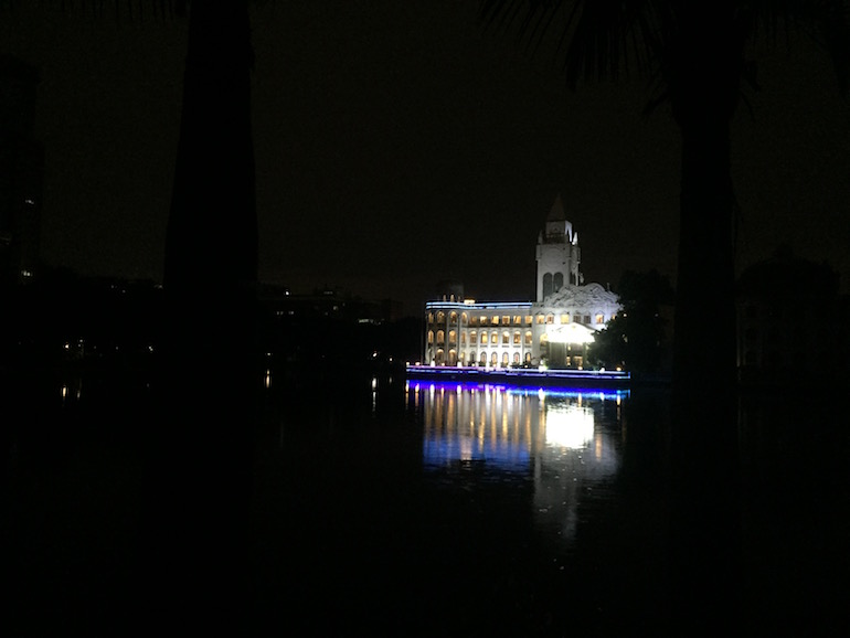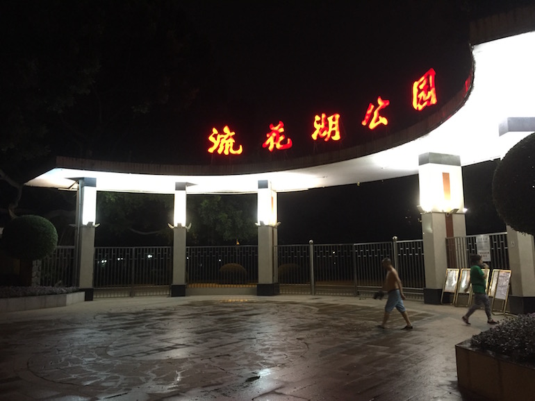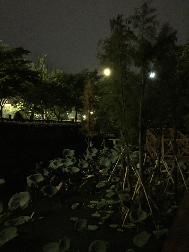 The Garden and Park at night are open to the public and their is on site security. It was fun to walk round the park and see the lights of Guangzhou city reflecting on the water. It was a busy park with many people using the space and there was on site karaoke as well as groups of walkers, joggers and runners, and we smiled as a group went past with loud speakers attached to themselves setting out  a good work out pace.
