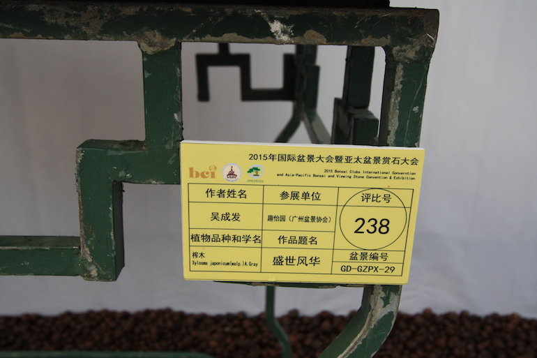 The Xylosma japonicum was another first for me at the Bonsai Clubs International (BCI) Convention exhibition. This was a first to see the Xylosma (柞木属 zuo mu shu) up close and also used as a bonsai. According to Wikipedia is tan evergreen flowering shrub from the Salicaceae family. It is commonly known as brushhollies, Xylosmas or ‘Logwoods’ as the wood is fragrant. There is also a good write up on Flora of China.