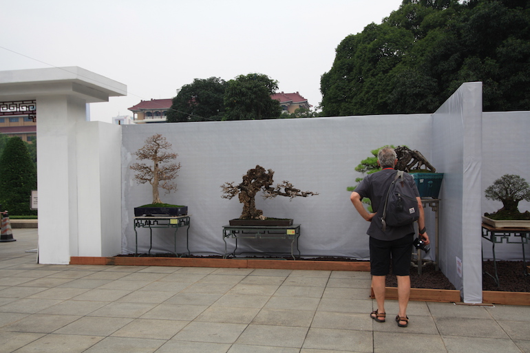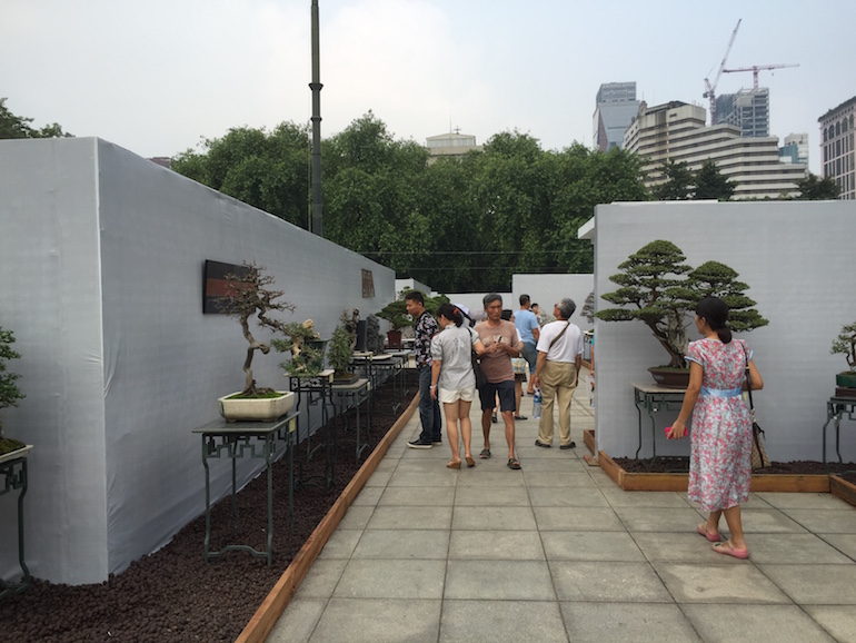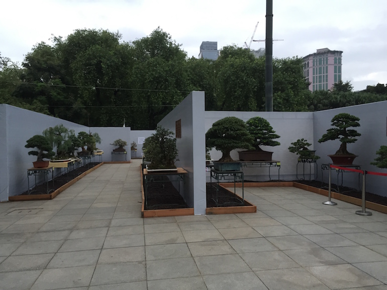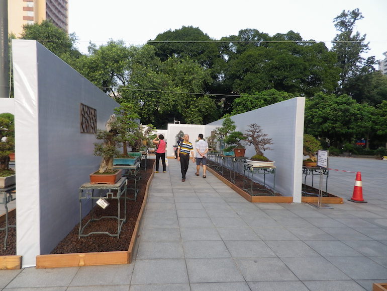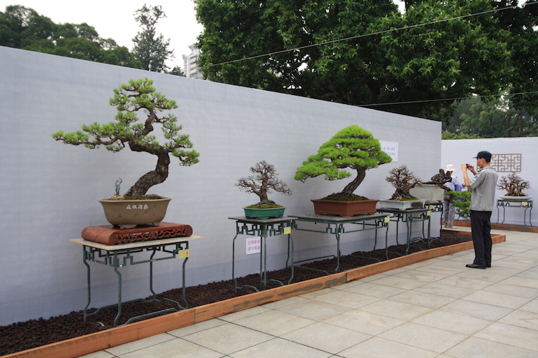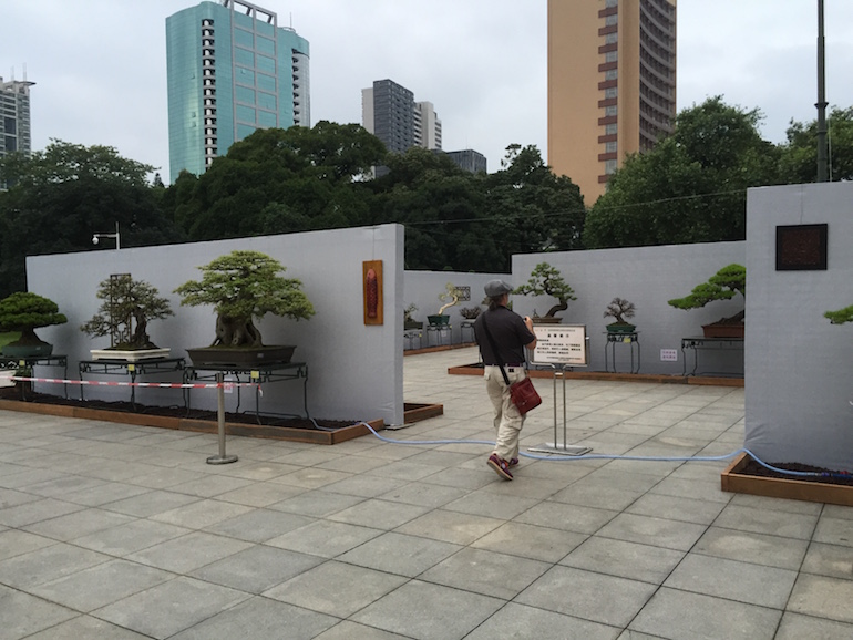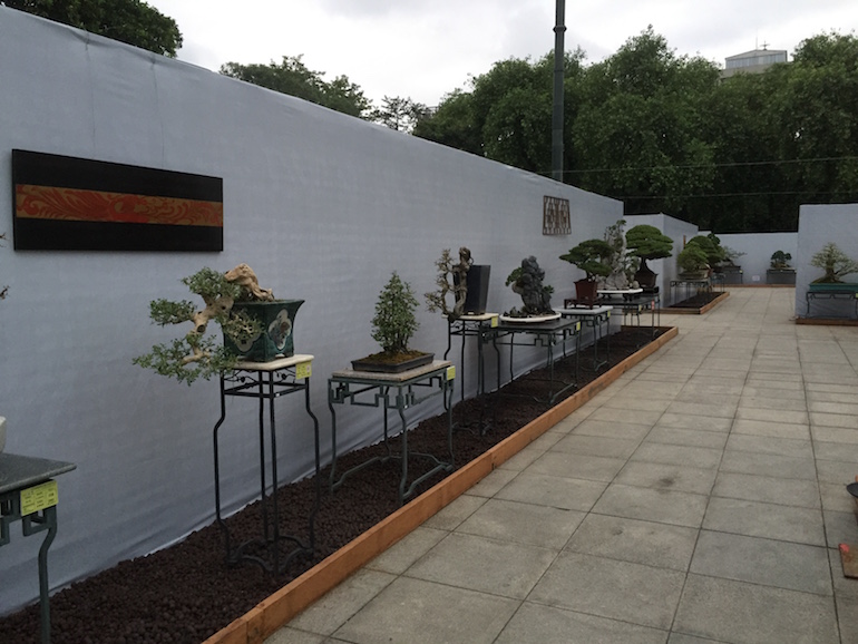 The bonsai trees given their size and weight were displayed on wrought iron stands that stood from the ground and they presented a consistent image for the overall display and set the trees off to advantage. The backdrop screens being white provided good photographic opportunities as well as again provided a clean and crisp finish to the exhibition. The whole exhibition area was kept immaculate and cleaners regular came round to sweep up any debris, litter and keep the whole site looking good.