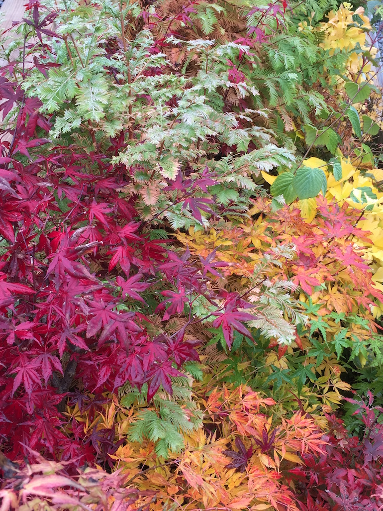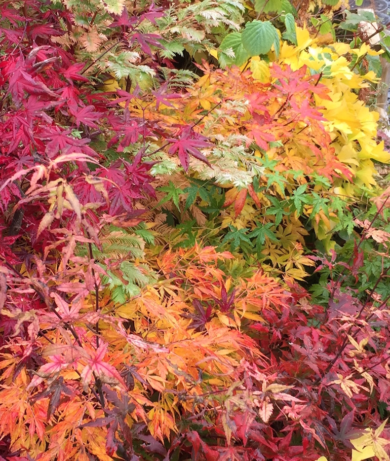 The intensity of colours and range is influenced by the weather, and this year given the warm sunny days in the UK with cool dry nights it has helped to induce brilliant autumn colours. It has been noticeable with our bonsai trees this year too with some stunning reds, yellows and oranges this year plus it has been great to have the leaves stay on for longer during the colour changes and they are only starting to drop more recently on some species.