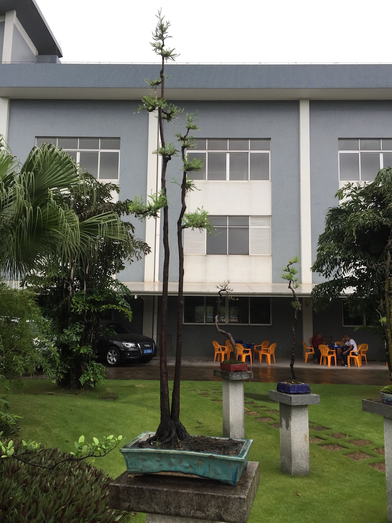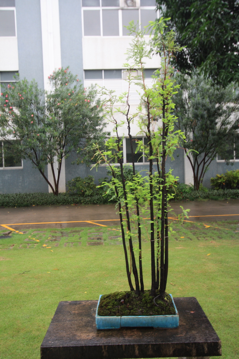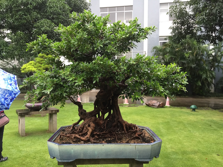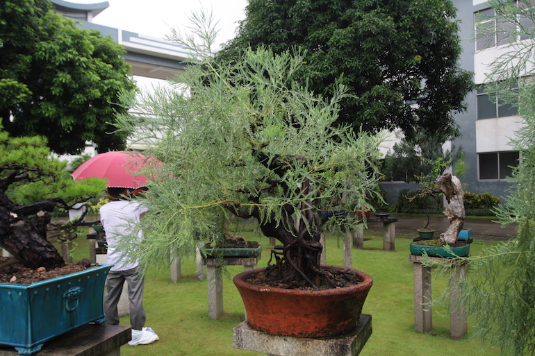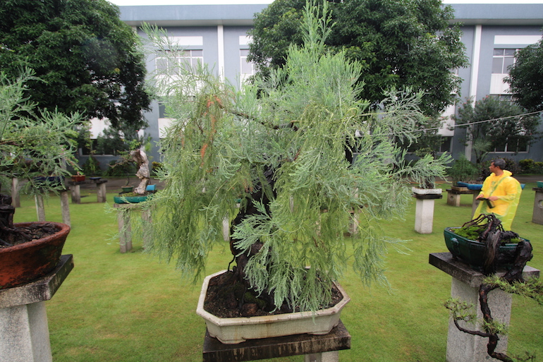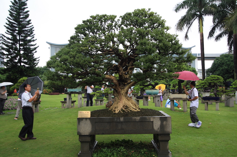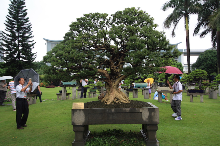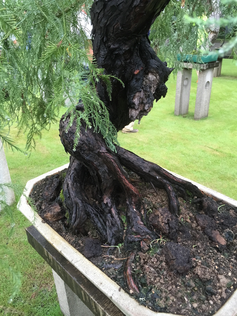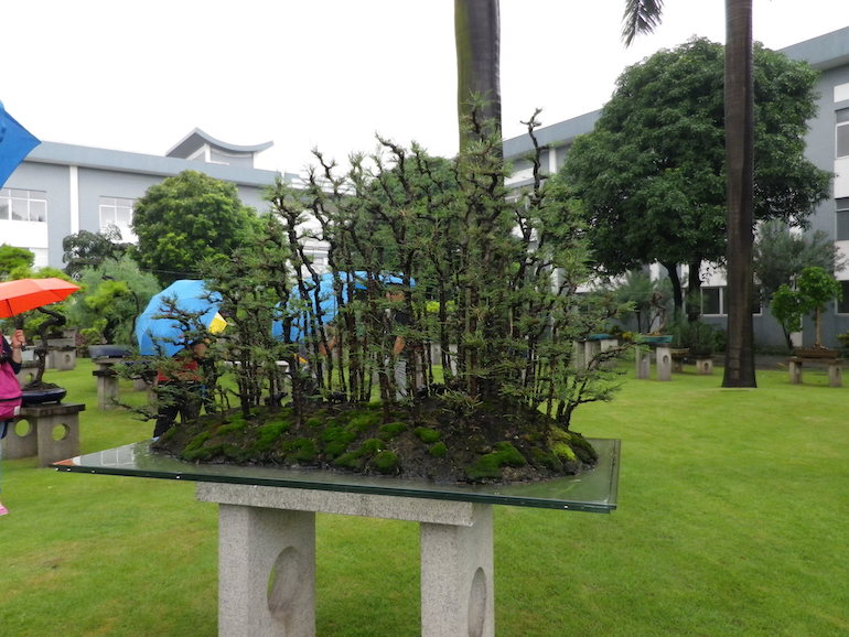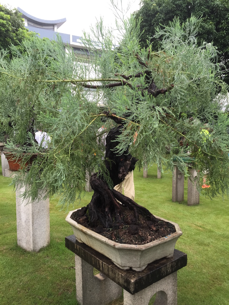 This was a collection of bonsai that kept inspiring, because in addition to a stunning massive collection of the finest Pinus massoniana there was a wide variety of other tree species on display as bonsai too including Giant Redwoods! This collection was in the Daliang County of Shunde in China in a place called Pinsongqiu, and despite the wet weather we got to wander round this exquisite collection admiring the intricate techniques used in these creations of art.