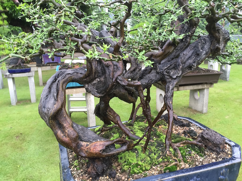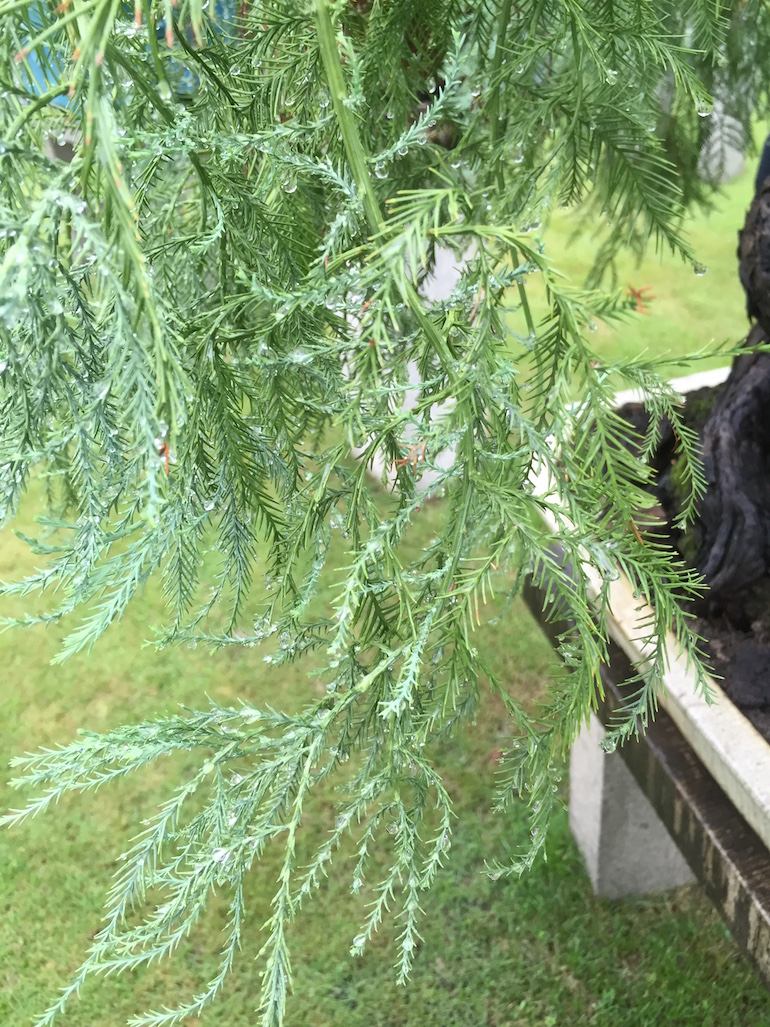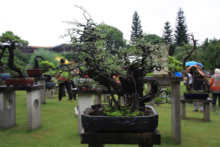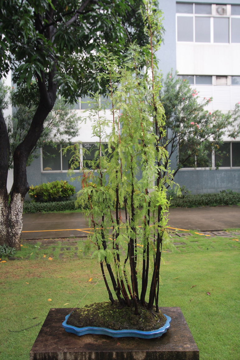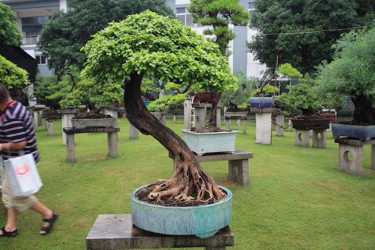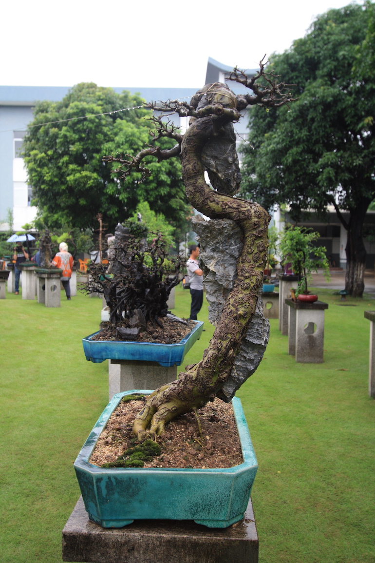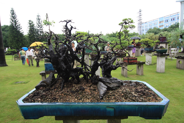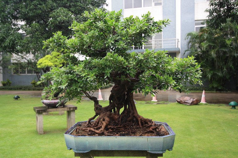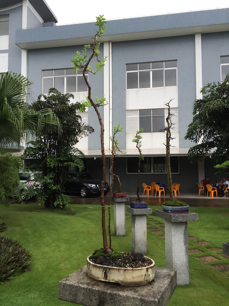 This was a collection of bonsai that kept inspiring, because in addition to a stunning massive collection of the finest Pinus massoniana there was a wide variety of other tree species on display as bonsai too including Giant Redwoods! This collection was in the Daliang County of Shunde in China in a place called Pinsongqiu, and despite the wet weather we got to wander round this exquisite collection admiring the intricate techniques used in these creations of art.