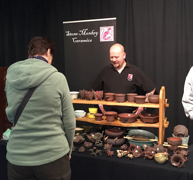 In the early part of 2003 I purchased a potter’s wheel and a 9 cubic foot gas kiln. Again there was another learning curve with new glaze recipes and reduction firing. Eventually I progressed enough to sell my Bonsai ceramics all over Europe via shows and also from my website under the name of Stone Monkey Ceramics.