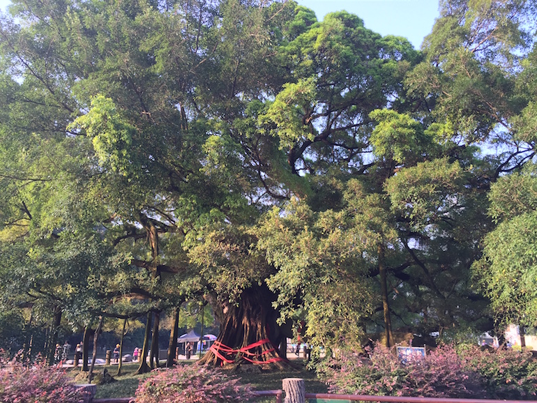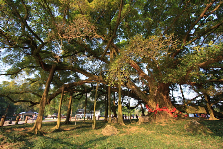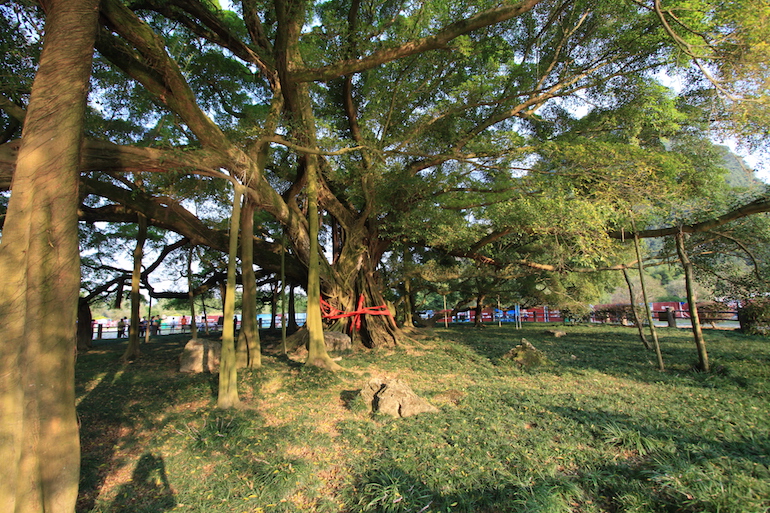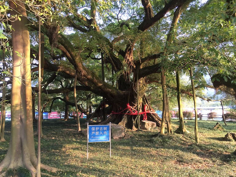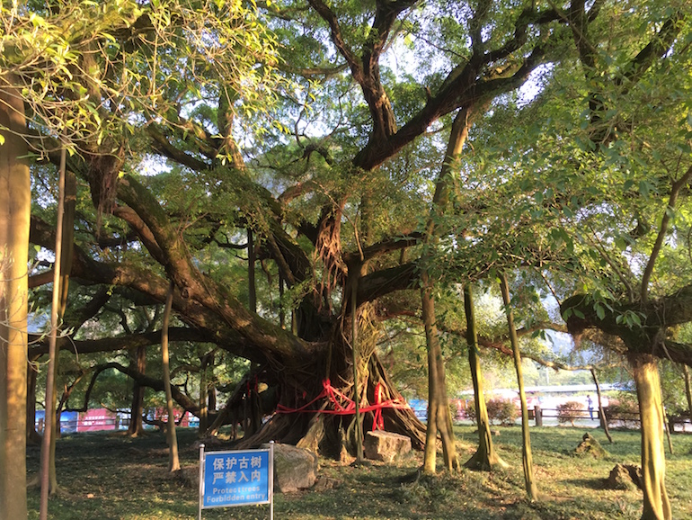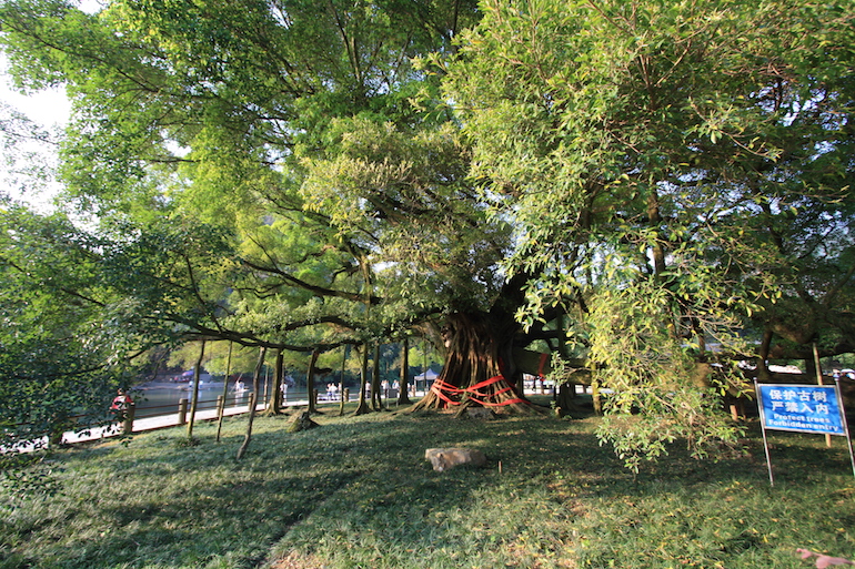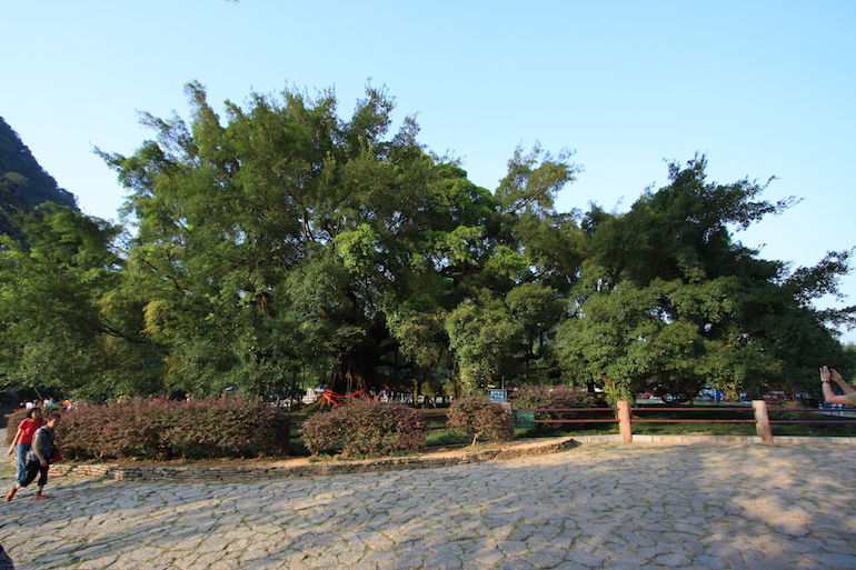Whilst staying at one of the most idyllic hotels called the Yangshuo Mountain Retreat in Yangshuo, China we walked to visit the nearby tourist attractions and one of these included a majestic Banyan Tree of epic proportions. It is located around 6km southwest of Yangshuo and set alongside the Gulin Li River and is a must visit scenic location in this part of China. The Banyan tree is stated to have been planted in the Sui Dynasty about 1,400 years ago which is amazing and checkout the aerial roots now forming props and becoming trees in their own right.