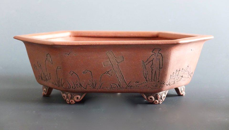 This unique pot was made by Stone Monkey and I am sure that everyone will want to own it. This special commemorative pot for Armistice Day 2016 will be travelling with him at each of the bonsai shows that he will be attending this year. He will be selling raffle tickets at £3 each and all monies received will be donated to the Royal British Legion in November 2016. The raffle will be drawn at 11 am on the 11th November 2016.