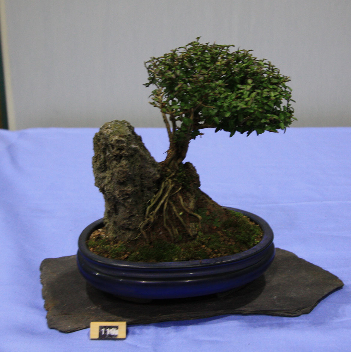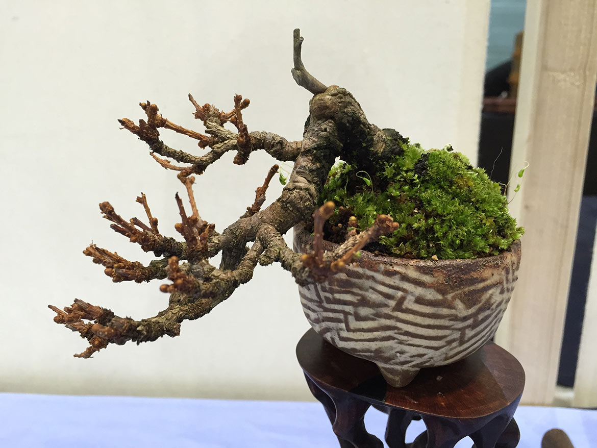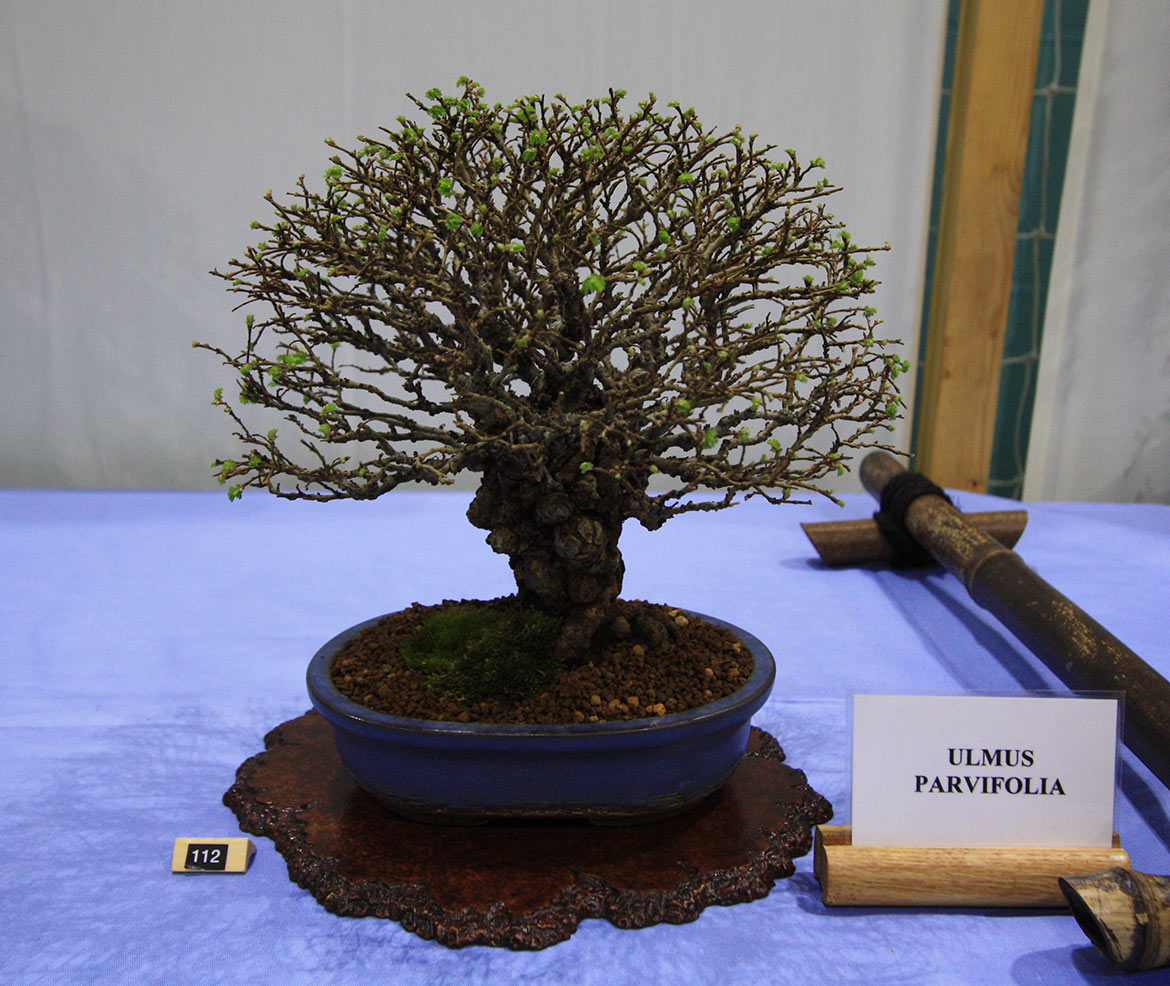 Some of the club members have been doing bonsai since the 1960’s and are able to display their trees, which they have developed during that time. Terry Adams kindly offered to print labels for club members to provide more details on the origin of the bonsai trees as well as details on the tree species and pot.