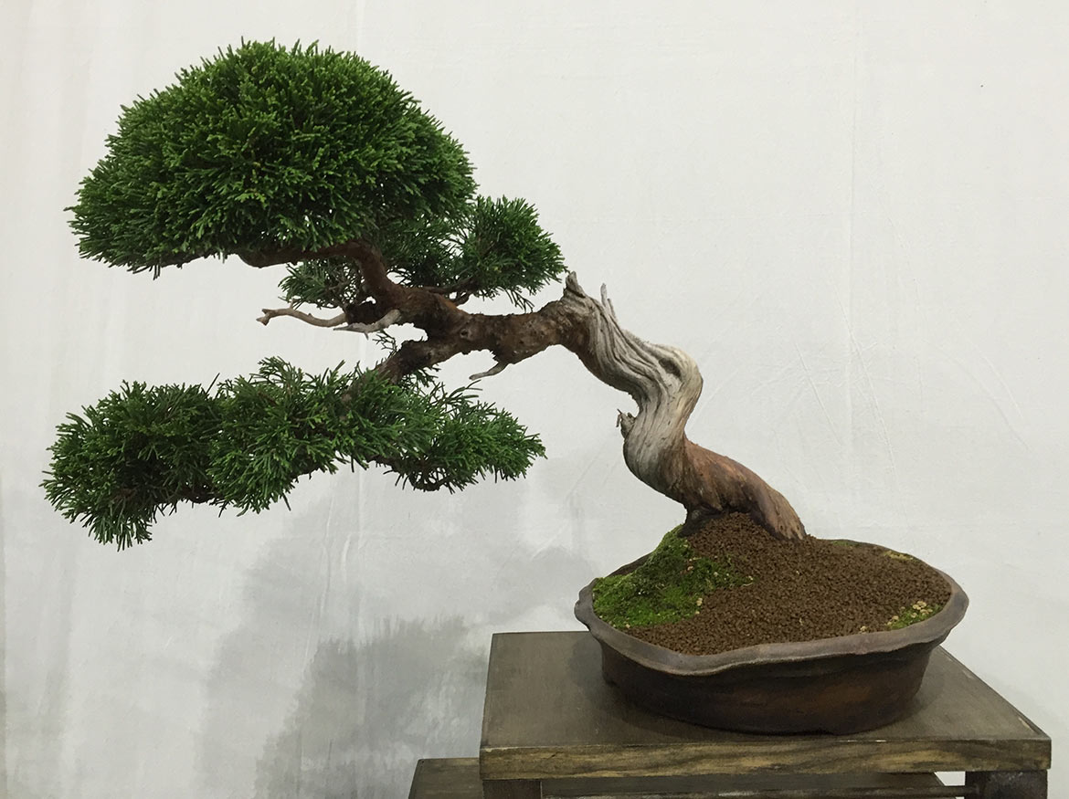 It was a great opportunity at this years Swindon Winter Image Bonsai Show to see a fantastic array of bonsai styles, shapes and sizes as well as a good diversity of tree species. One style that captured my interest was that of the cascade and semi cascade. Here are some of the examples that caught my eye during the show.