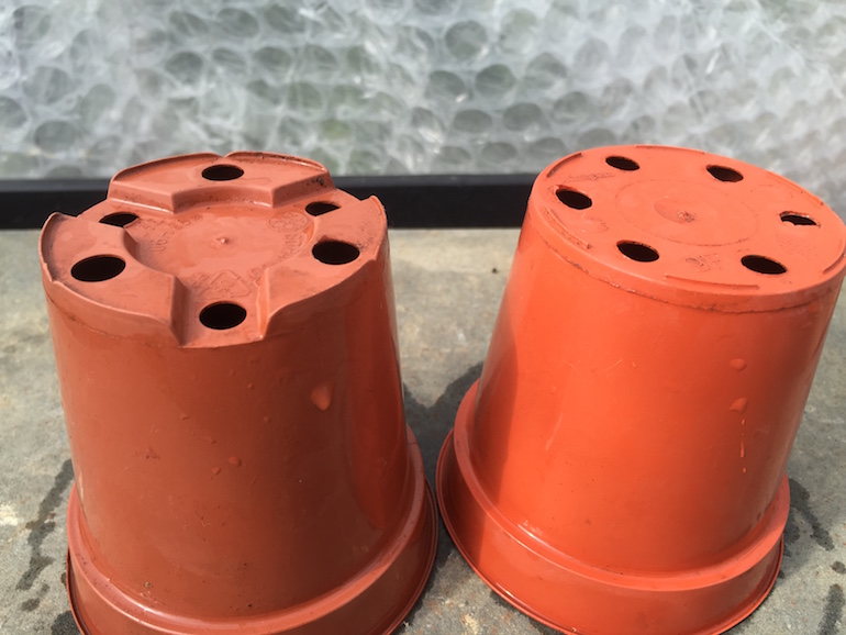 Flower pots with sunken holes and inset holes allow for good drainage as the soil can drain freely. However if pots ares flat to ground then the pots won’t drain.