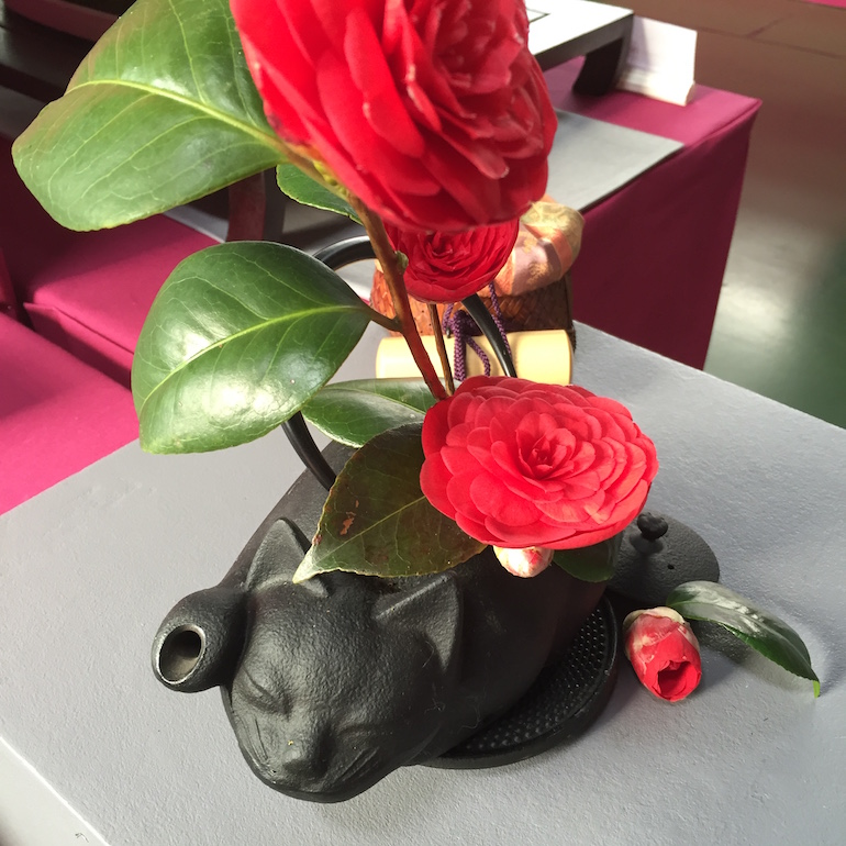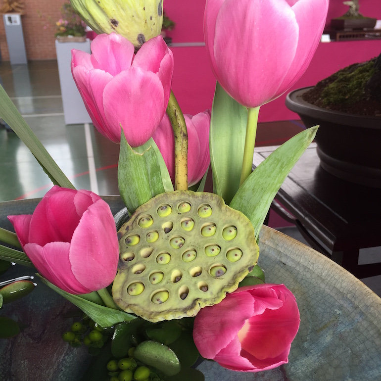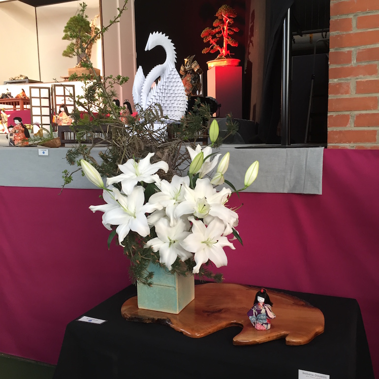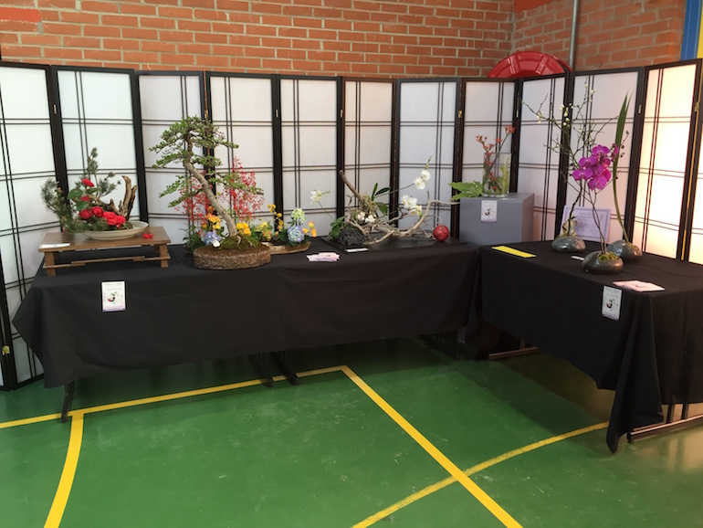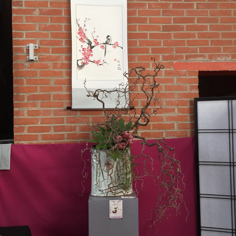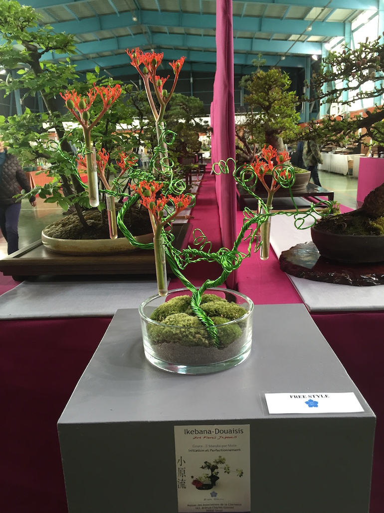 Ikebana, floral displays and points of interest from the Bonsai Exposition in France. There were some extra elements of interest around the whole show with small corner displays, and the central stage had a large display of Japanese items.