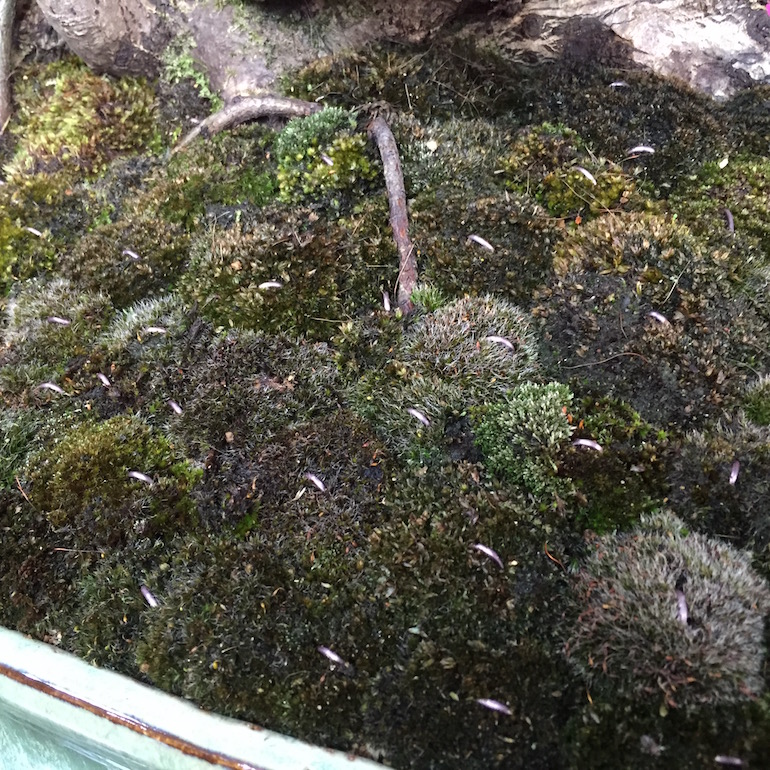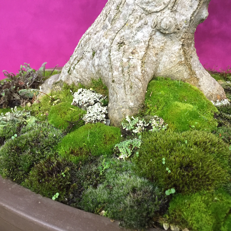 Another point of interest was the moss and the method for securing the moss on the soil with the use of small clips or wire bent over, and this seemed to be very effective.