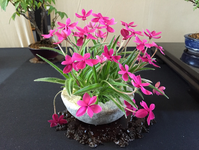 There was a stunning display of accents at Bonsai with Love, and some very interesting styles, designs and species of plants used as accents too. The pots were also amazing, so many brightly coloured and wonderful designs it was hard to choose a favourite. Check out some of the accents from the show below. For anyone who missed the show, it was in aid of charity with the aim of being a fund-raising event sponsored by Dan and Cecilia Barton to raise funds for the Charity: M.E. RESEARCH UK. There was a huge set of Tombola prizes at the show, which followed on from an auction of some lovely bonsai trees. It was a great event and a chance also to catch up with many bonsai friends.