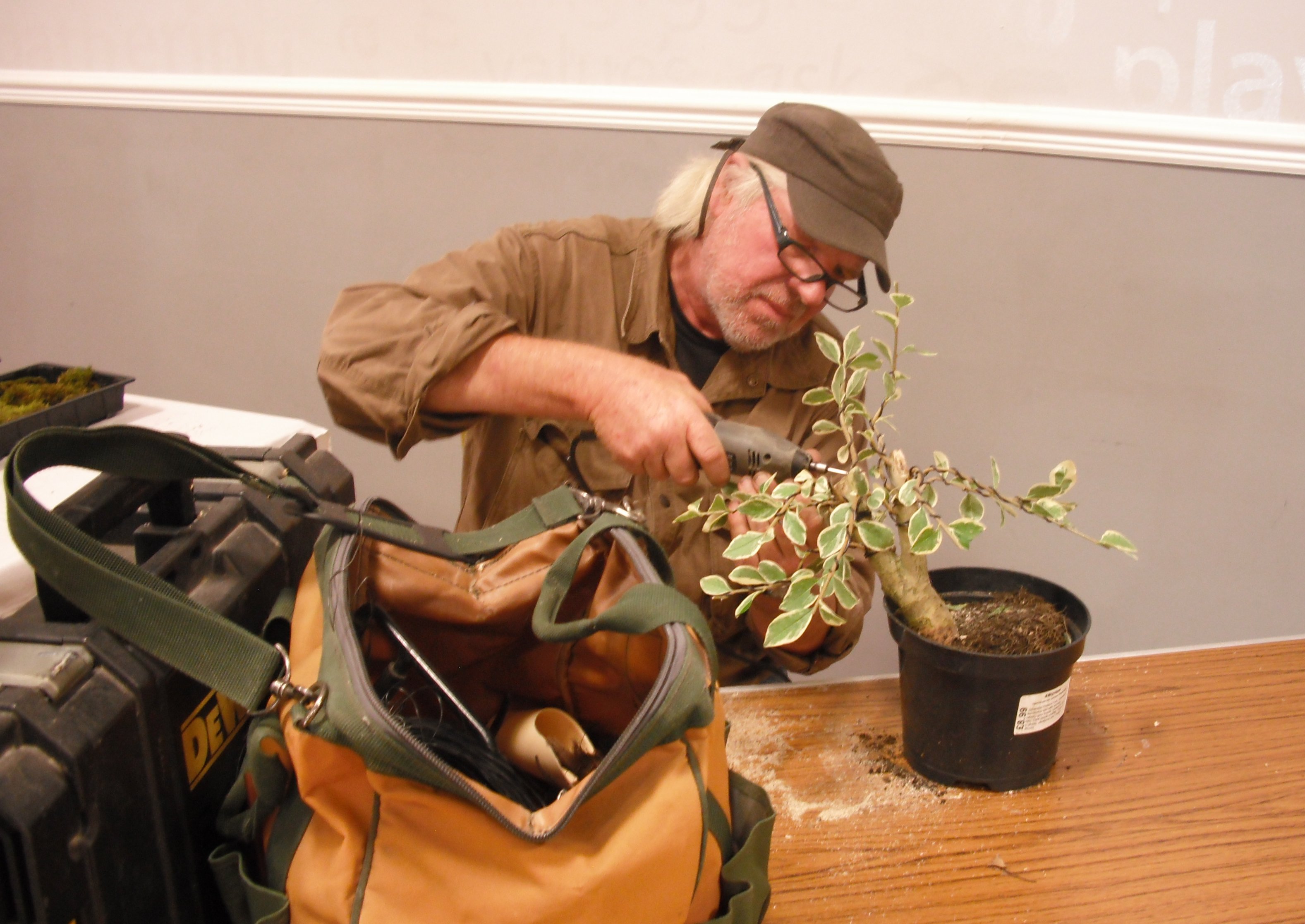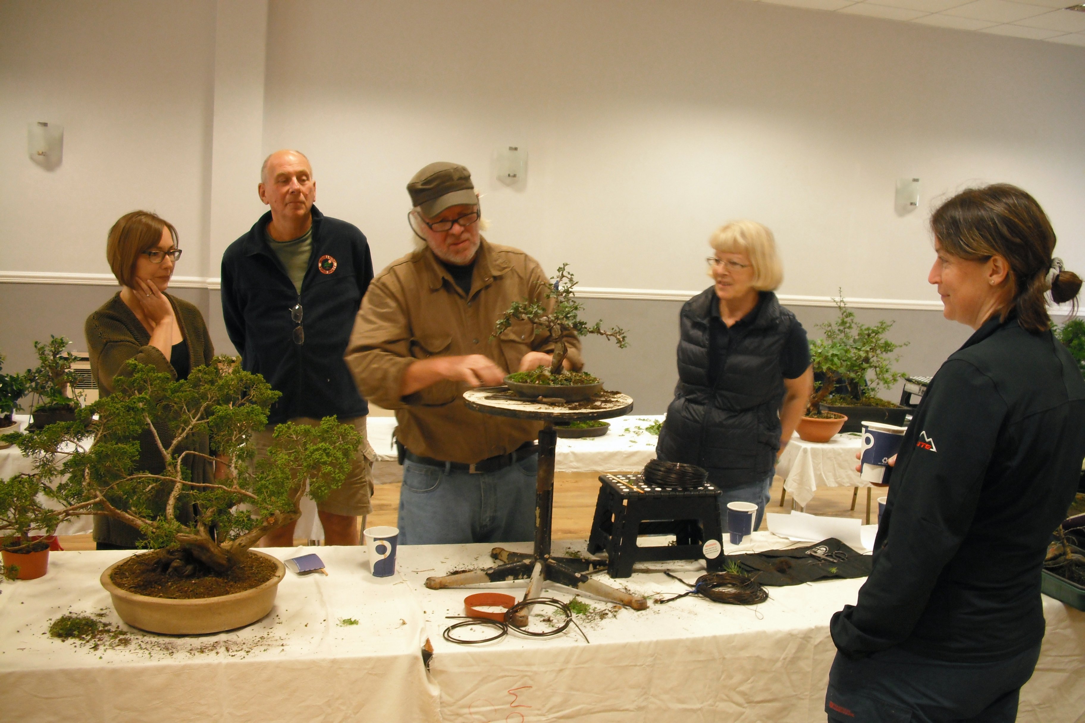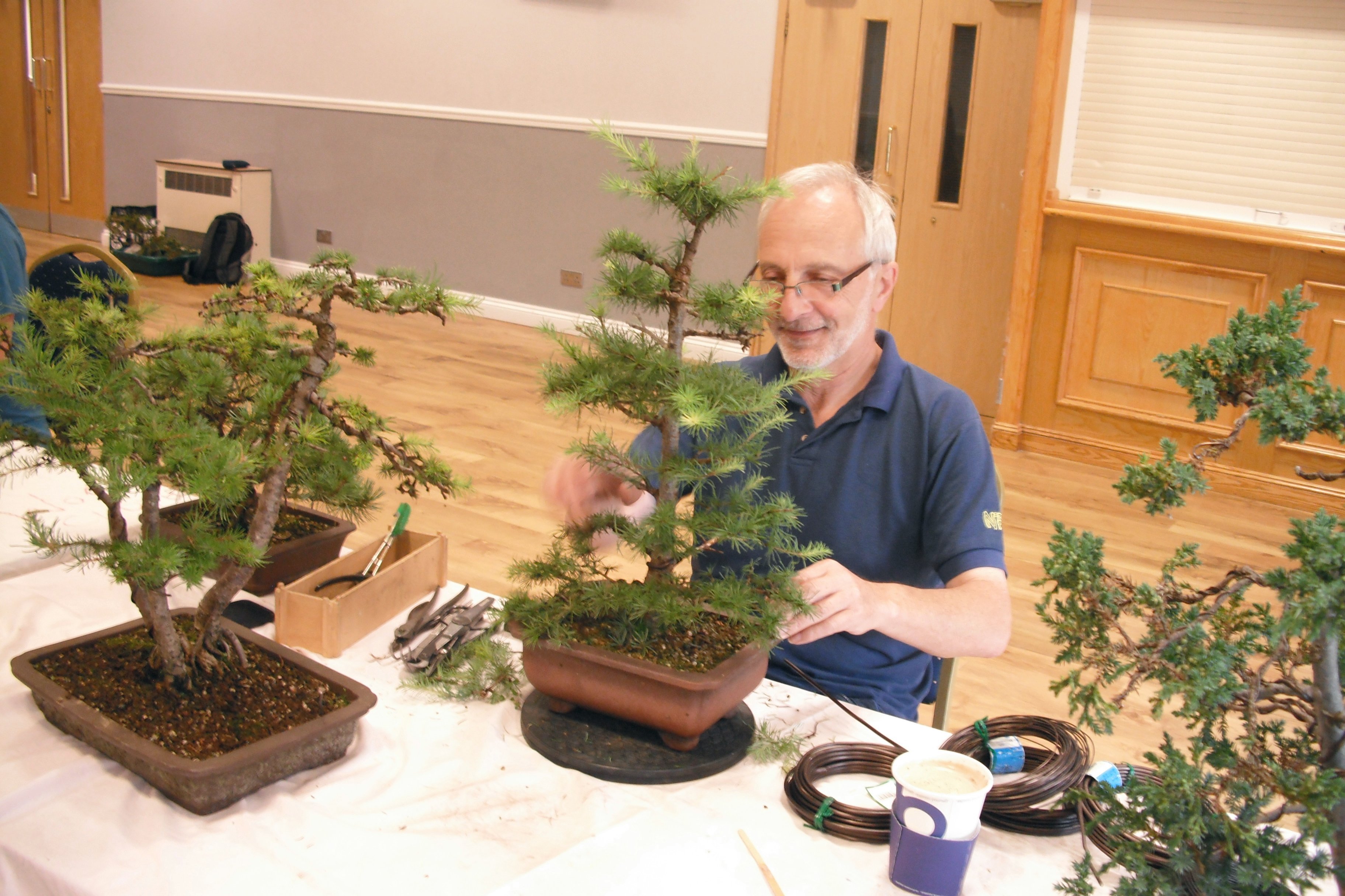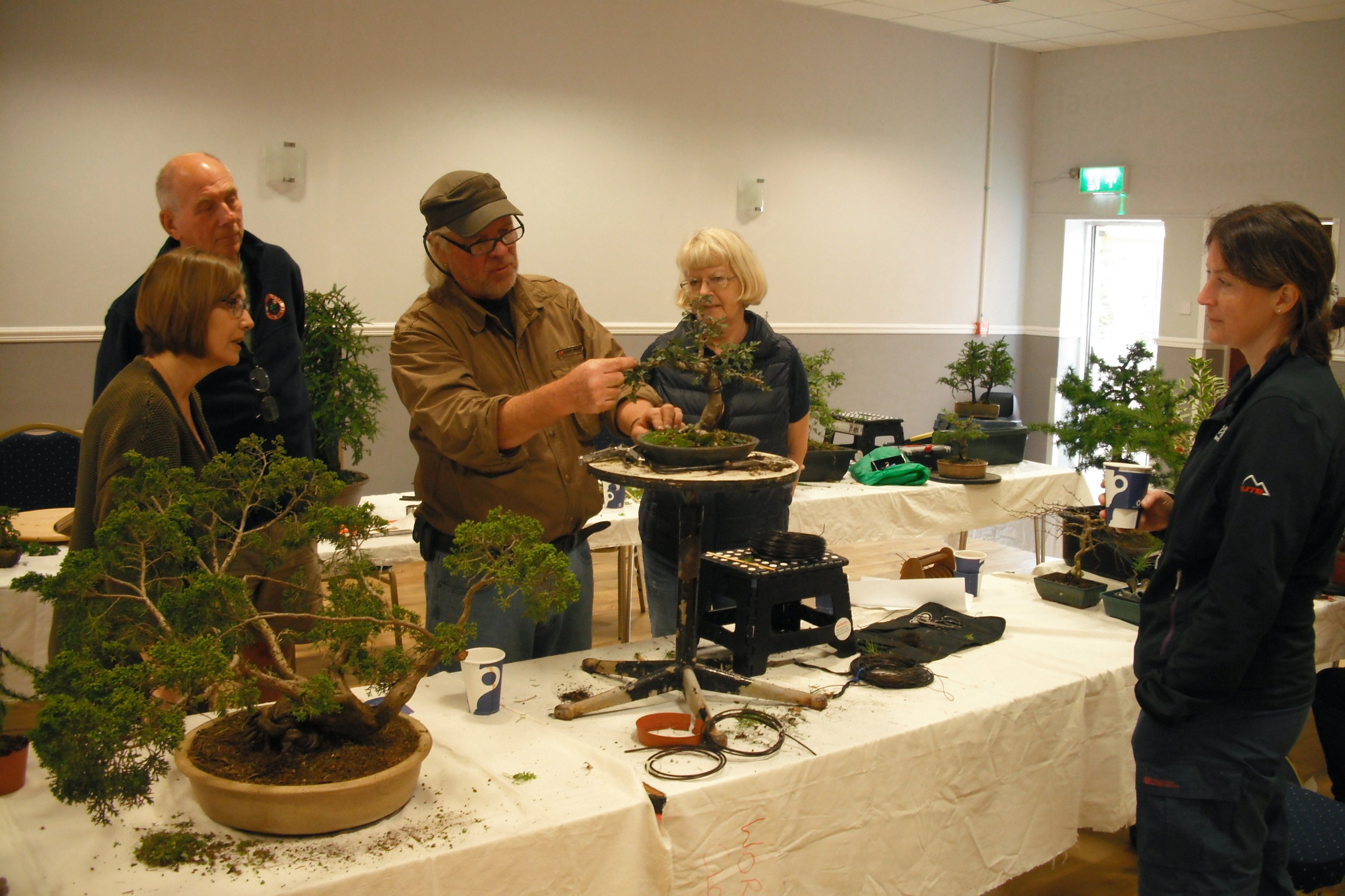 On Saturday the 17th September 2016, the club held a Autumn workshop with Chris Thomas. With the Coleview being busy we were treated to a lot more room at the Grange Leisure Centre, this is where we hold our ‘Winter Image’ show every February. These workshops are a great way to increase your knowledge of trees and design, while spending a few hours working on trees in your collection without any interruptions…………well other than a few coffee breaks and to tuck into the array of biscuits or some of Sally’s lovely cake.