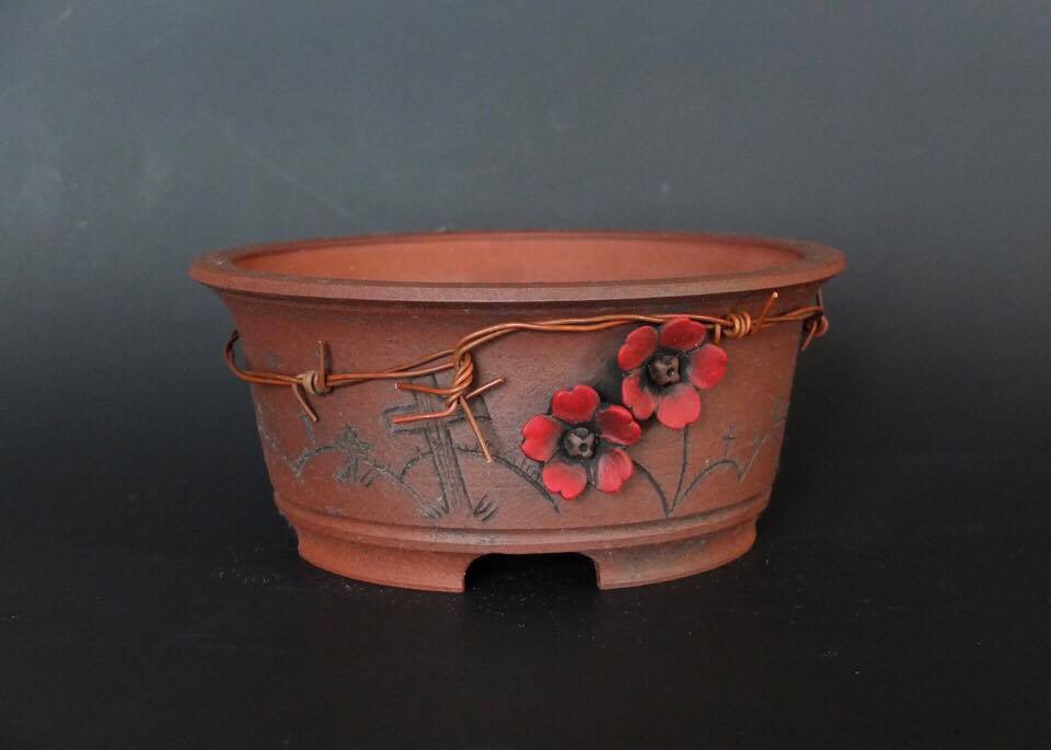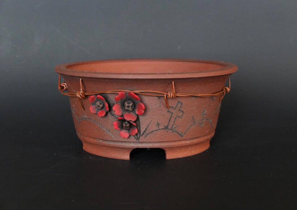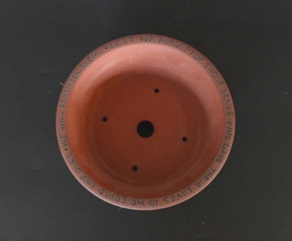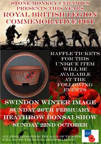 Here is the Commemorative pot designed and made by Andrew Pearson aka Andy of Stone Monkey in support of the British Legion. The pot will be at the Swindon Winter Image Show on Sunday 26th February 2017 and on display on the Swindon club sales table. Andy will have the raffle tickets for sale at our show and also various shows during the year that he is trading which you can buy for your chance to win this bonsai pot.