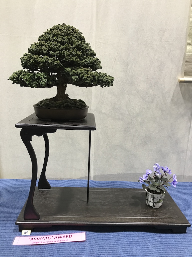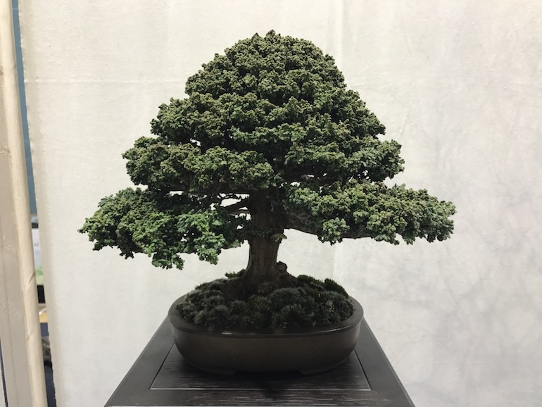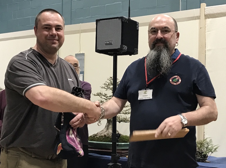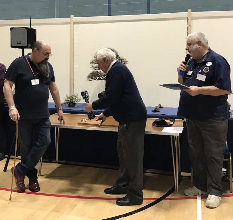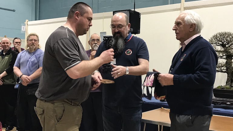 Congratulations to Andy Jordan for winning the Arihato award for his wonderfully displayed chamaecyparis obtusa sekka at this years Swindon Winter Image Show. This tree is probably one of the most striking in the show but it’s real beauty is when you look within the branch structure.