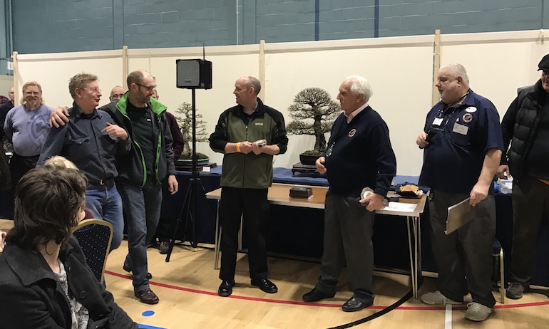 - Simon Crocker being awarded the Best Tree Pot Combination by Dave Jones of Walsall Studio Ceramics with Gordon Duffett