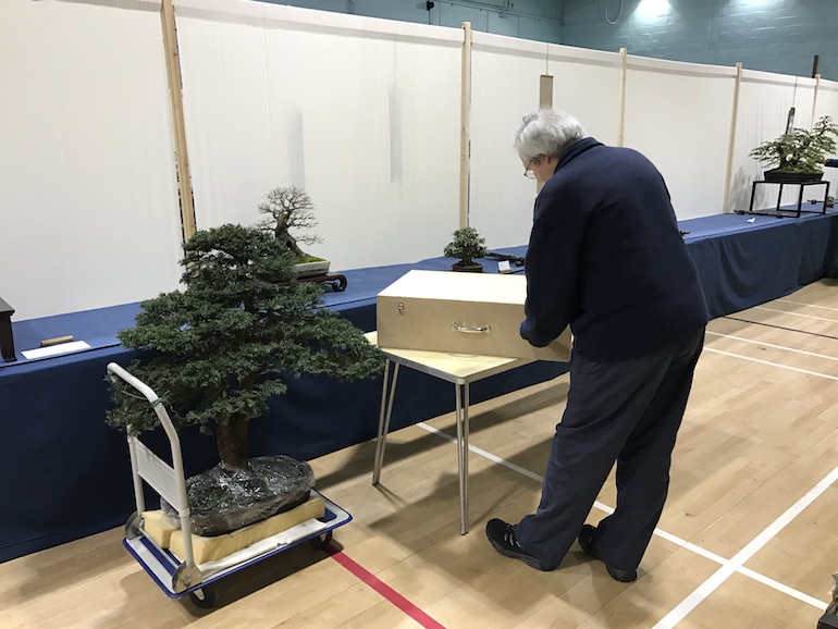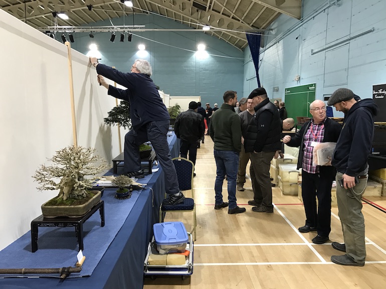 Well the preparations for the show usually start immediately after the current show has just finished so we started preparing for the 2017 in February 2016 so a year in the making. There is always so much to do when organizing a bonsai show including some of the following like ensuring there are enough tables and we needed 114. Having enough cloths and backdrops for the exhibits and there were 72 screens to cloth. Not then forgetting to work out who can supply any shortfalls and organising transportation to get all the items to the show and back again. Inviting traders, guest exhibitors, clubs, promoting the event and sorting out raffle prizes, the list goes on but it is all worth it in the end.