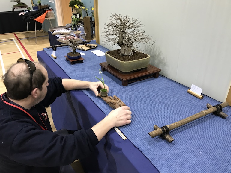 Club members have the opportunity to review their bonsai trees for display at the show in the months running up to the show and arrange to borrow stands, accents and the like to aid with creating their displays. Some of the more experienced club members are also on hand to provide guidance and tips on preparing trees for the show which is really helpful too. Also it is a chance to review how to transport your trees to the show and some club members come up with some fun methods.