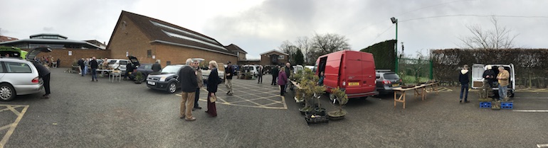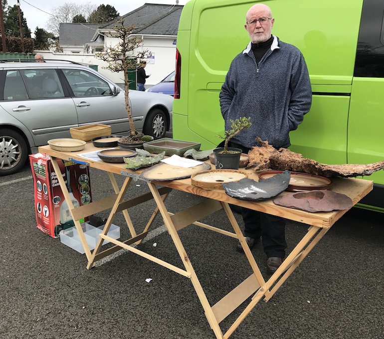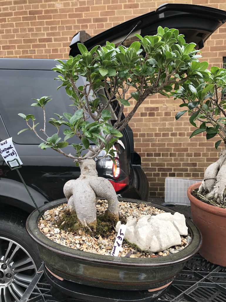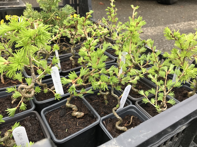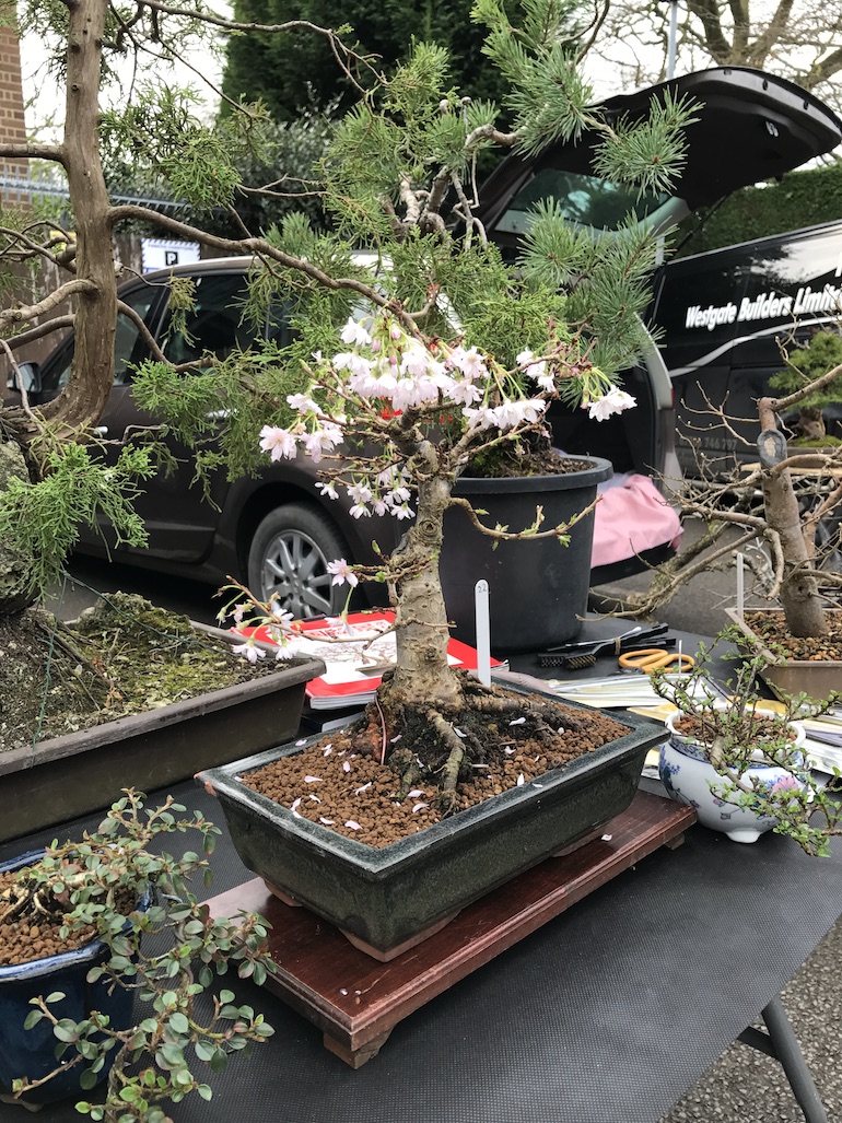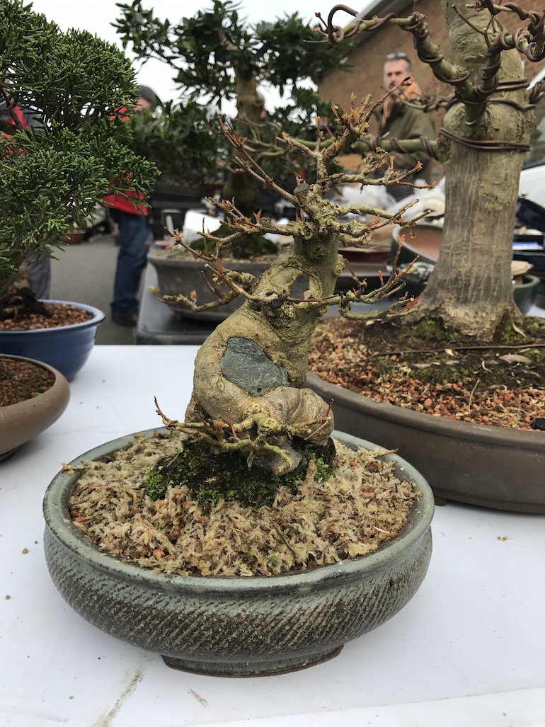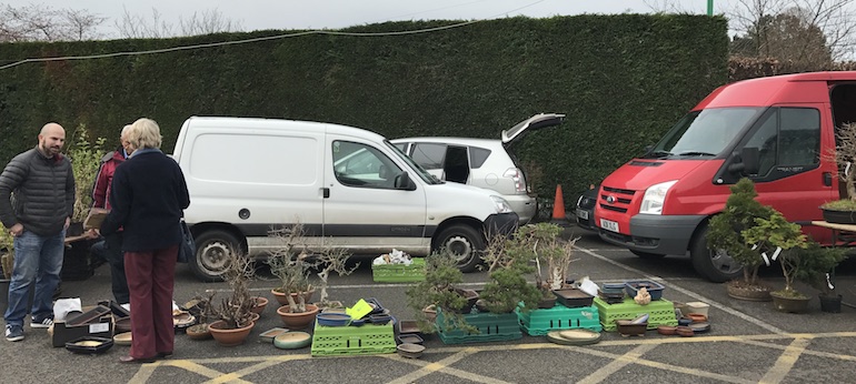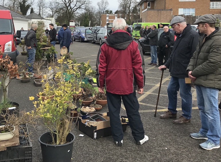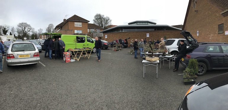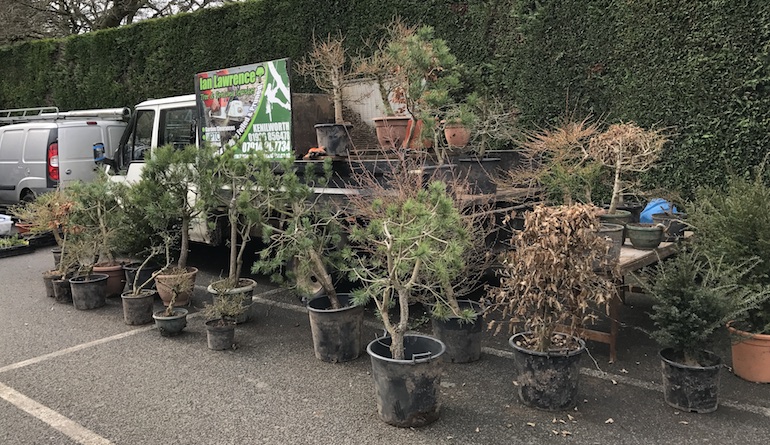 The Bonsai Boot Sale at Birmingham Botanical Gardens was a well attended event today coniciding with the Federation of British Bonsai Societies (FoBBS) Annual General Meeting (AGM). There was a good selection of bonsai on sale of all price ranges and some bargains to be had. There were trees of all sizes from established bonsai to collected material and some funky mame twisted Larch which had to be bought to add to the ever growing collection. Here are some images of the event to show you the selection of trees and other bonsai items on sale. It was good to see so many bonsai friends and have an opportunity to shop for bonsai in a great setting at the botanical gardens.
