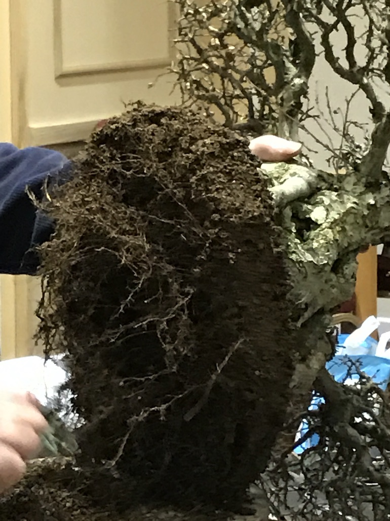 Repotting is nearly over for most species of trees now that Spring is finally here and hopefully all your trees are doing well. Lots of activity has been going on behind the scenes for everyone who owns a bonsai as it is a busy season ensuring that all your trees requiring repotting are carefully repotted. One of our Club members bought in a Korean Hornbeam to demonstrate his repotting technique and here are a few images of the process.