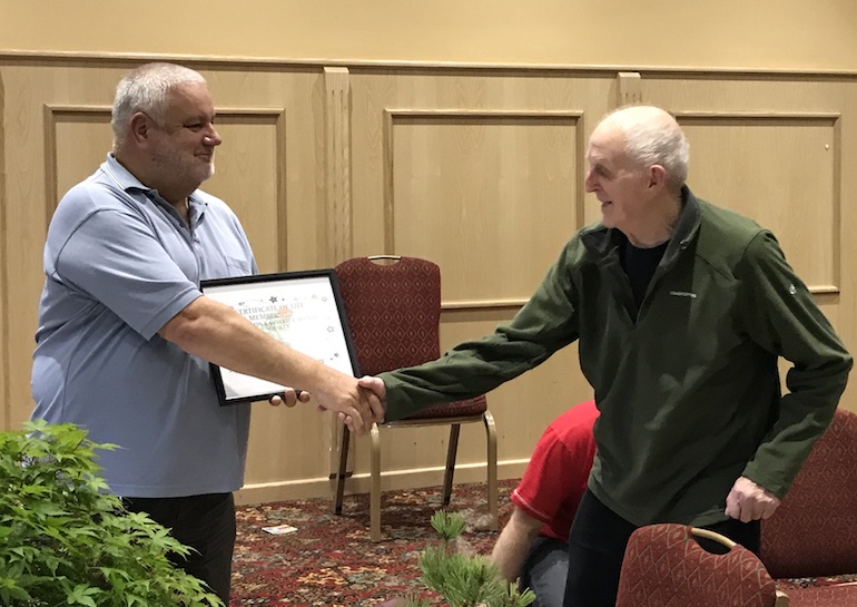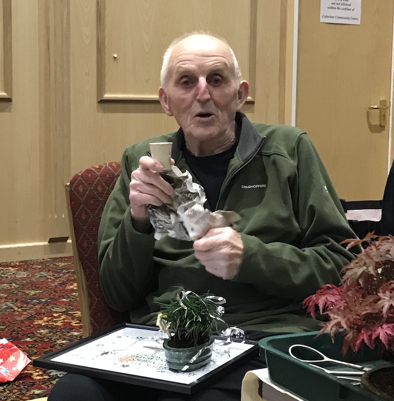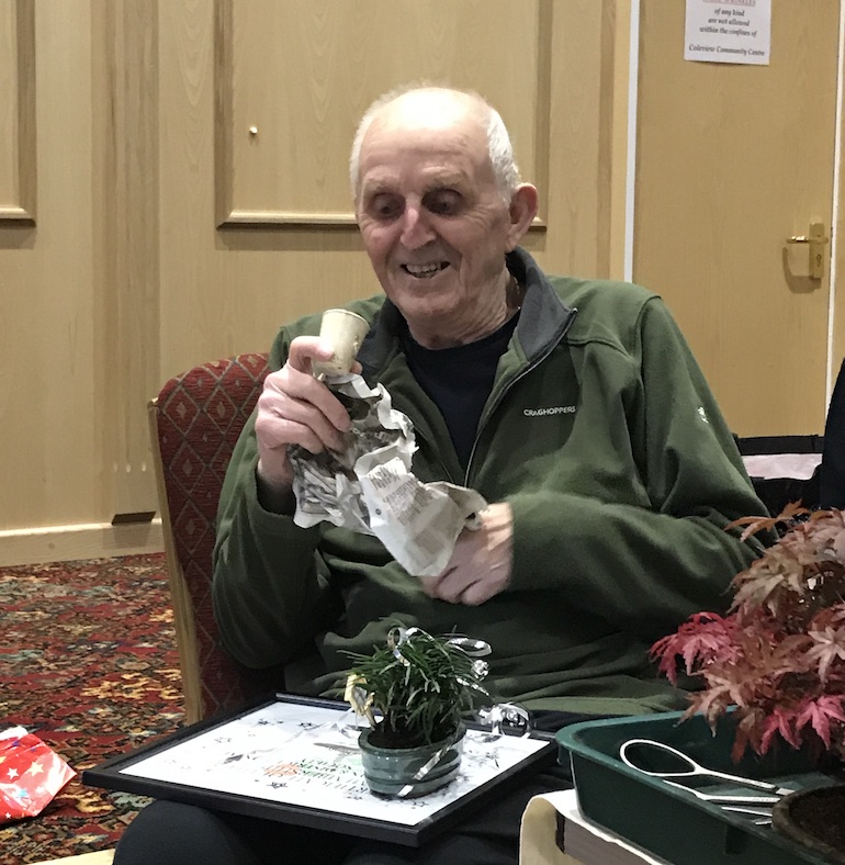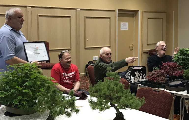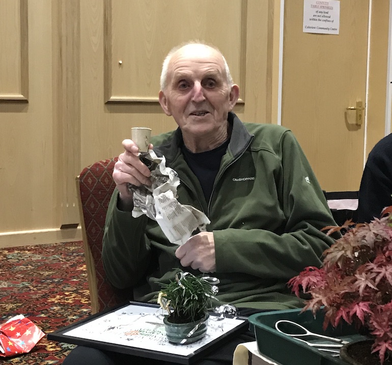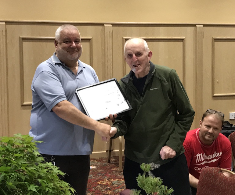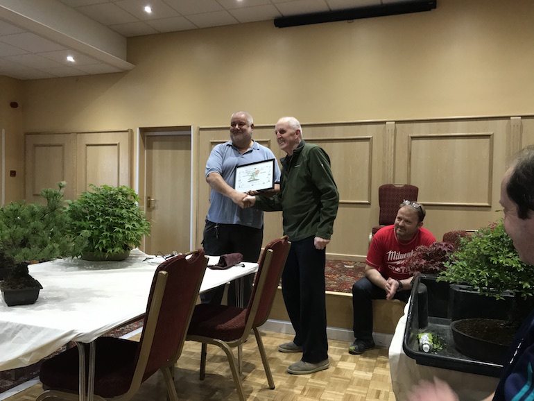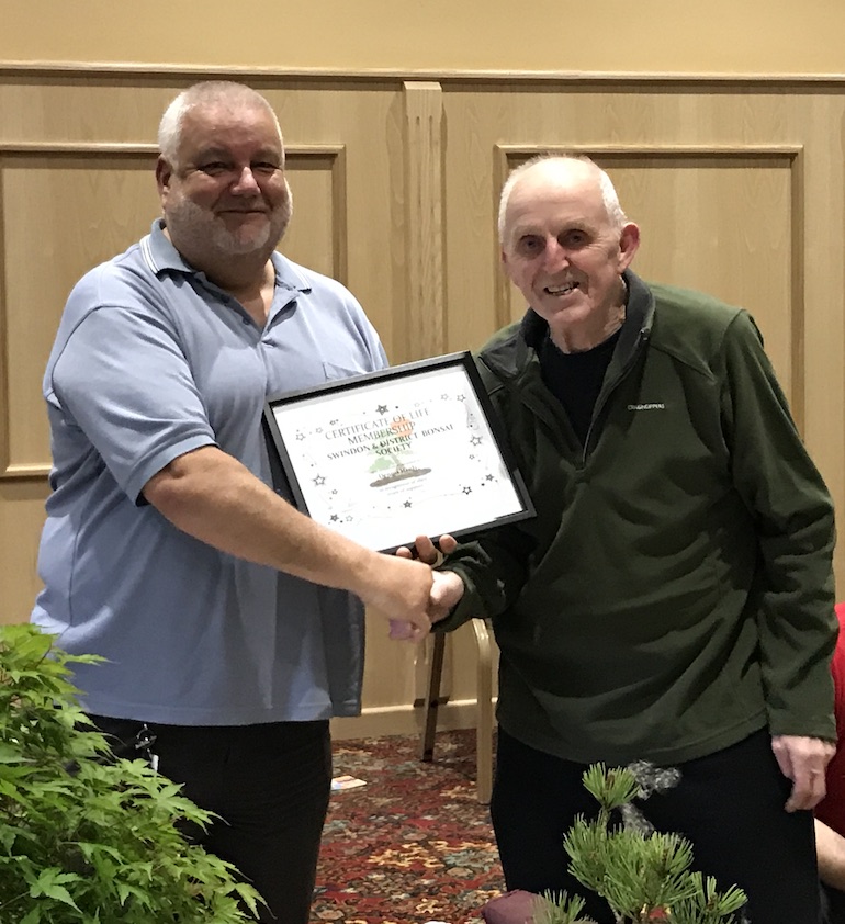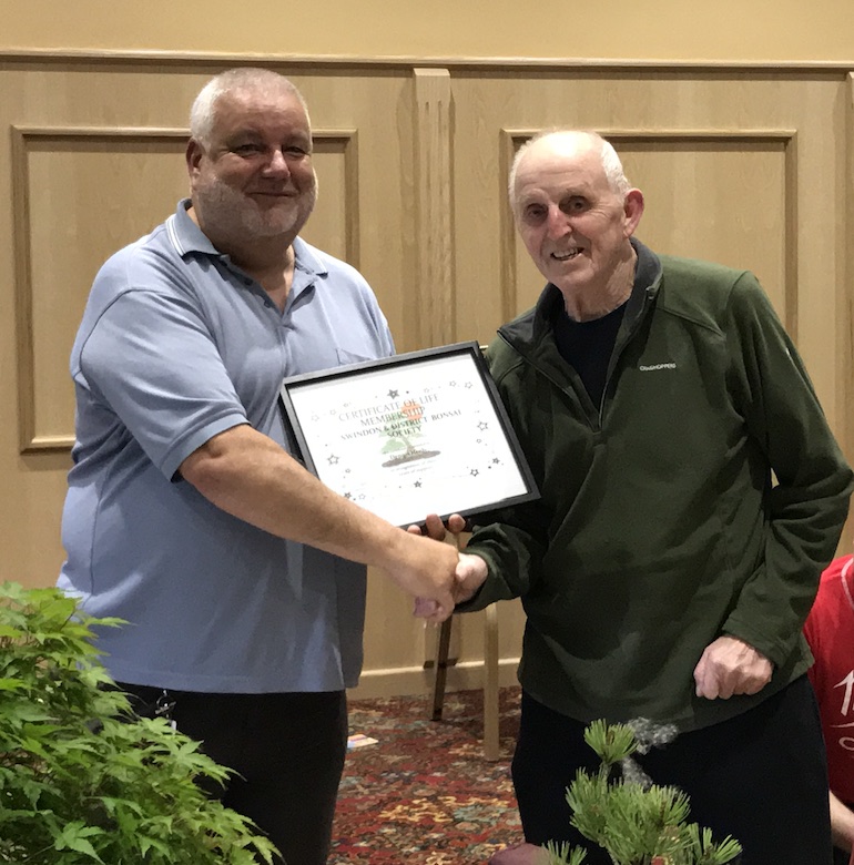 Tonights club night was a special night as we awarded Dennis the life long membership award to Swindon Bonsai Club. In addition he also received the 40th anniversary gift and a present for his long commitment to bonsai as a hobby and as a thank you for his support and involvement in the club for so many years.