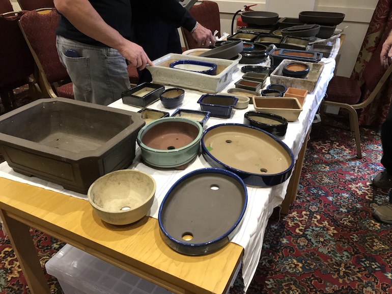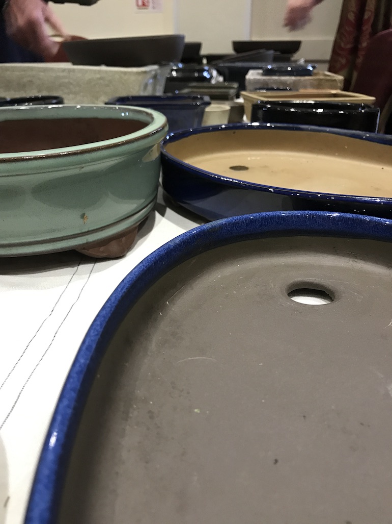 At the club night there was also an opportunity to buy some bonsai pots that belonged to a previous bonsai enthusiast and all the money raised from the sale of the pots was being donated to the British Heart Foundation. The pots varied in size and shape, some were ceramic, others were mica pots and some were made by well known potters.