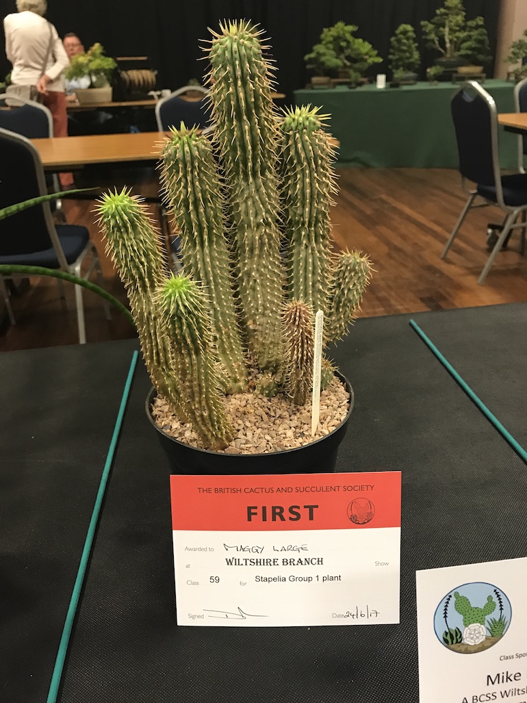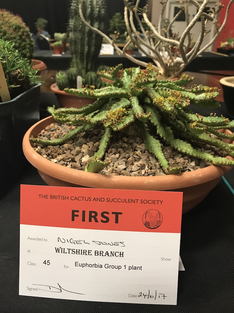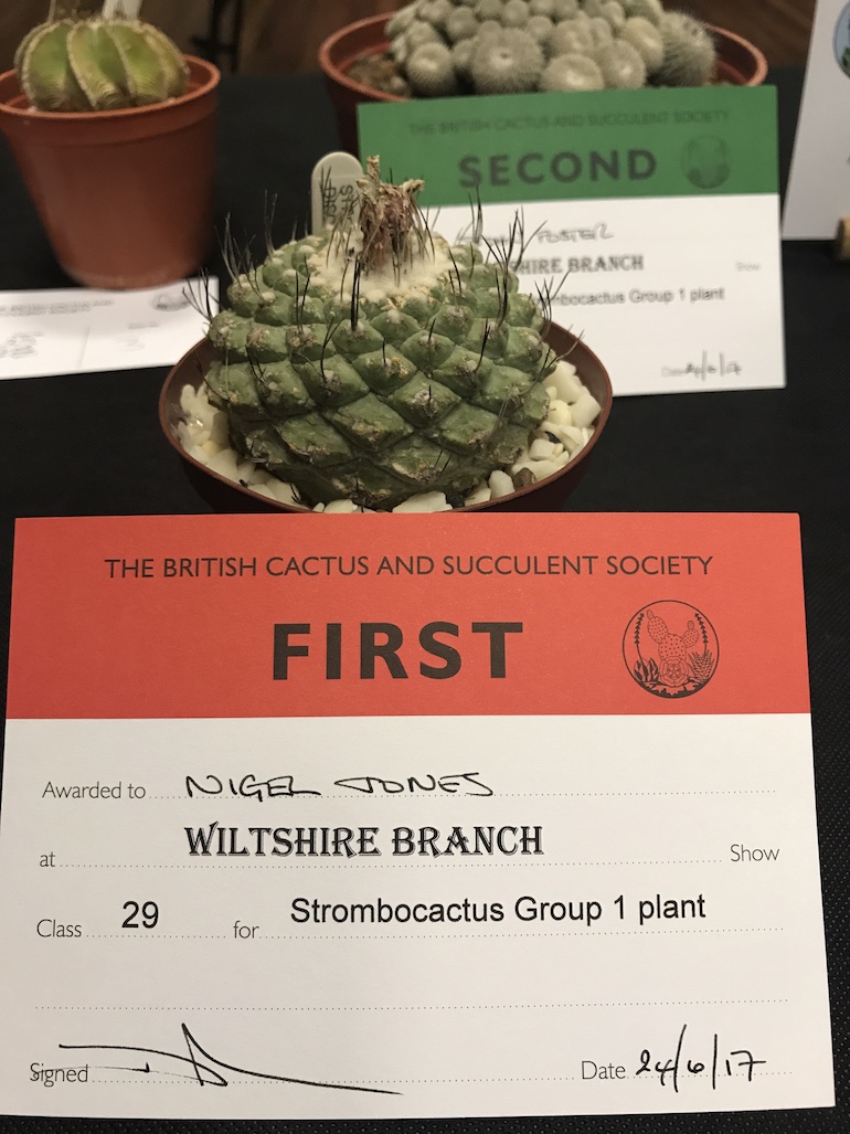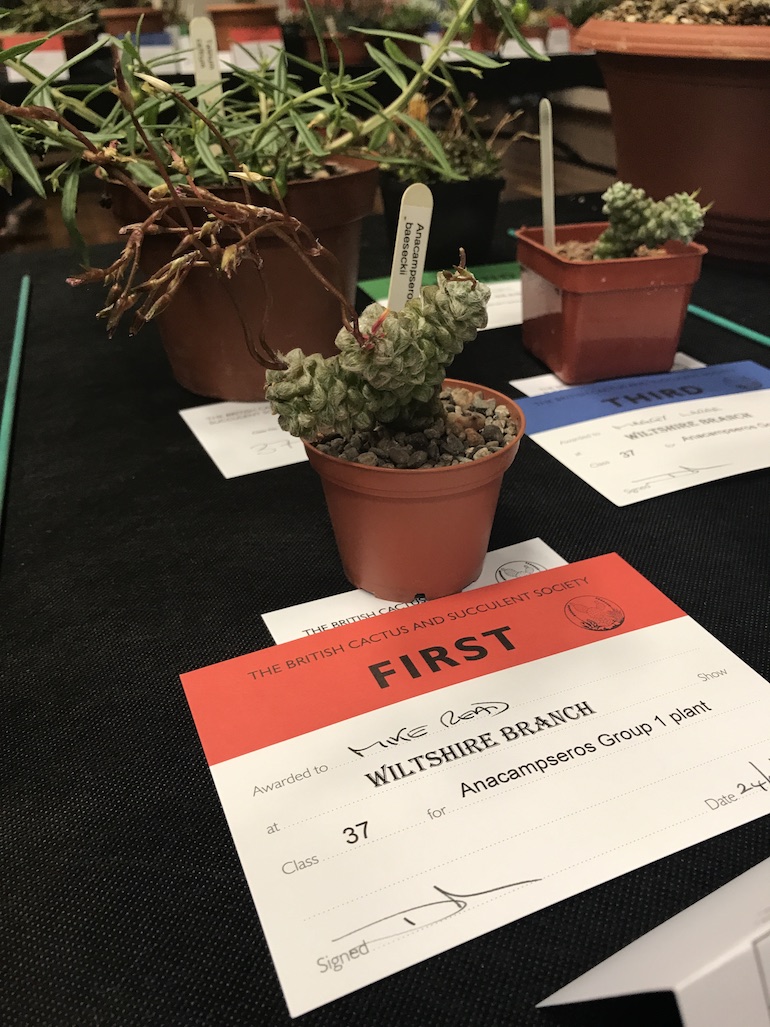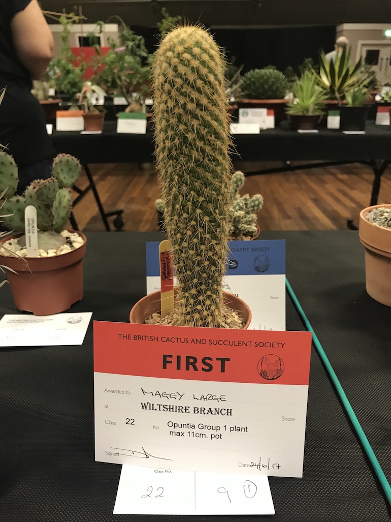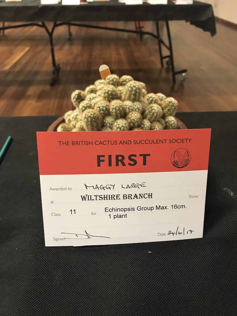 Thank you to everyone from the Wiltshire branch who helped out prior to the day and on the day making the teas, doing the entry on the door, aiding with the set up and take down. Maggie did a sterling job on the sales tables and it was great to have such a good range of plants to sell. Congratulations to Derek May Chairman of the Wiltshire Branch for organising and managing a great cacti and succulent show for the Wiltshire branch.