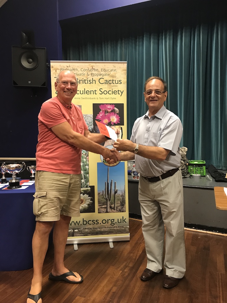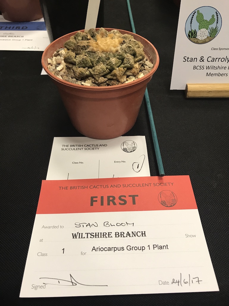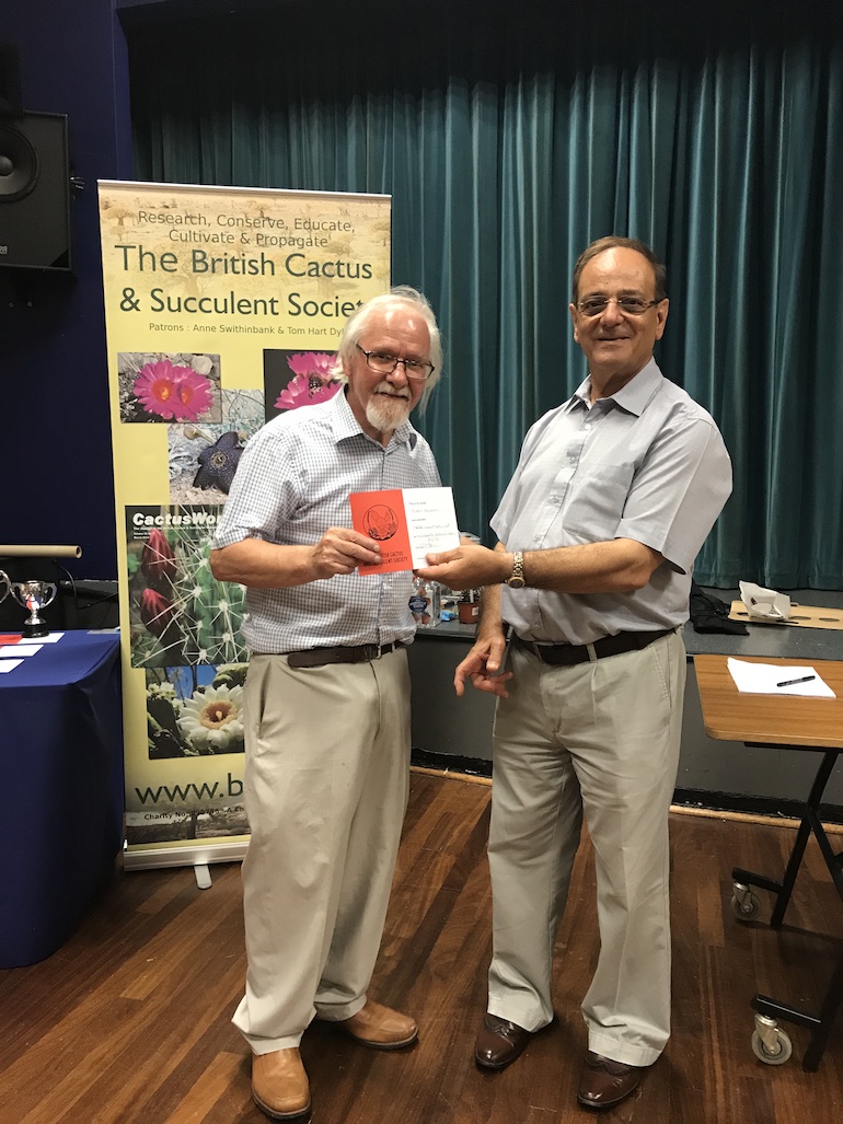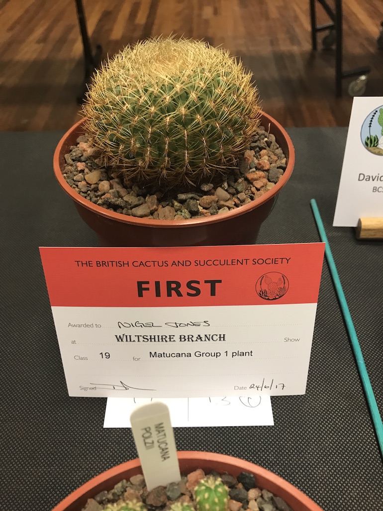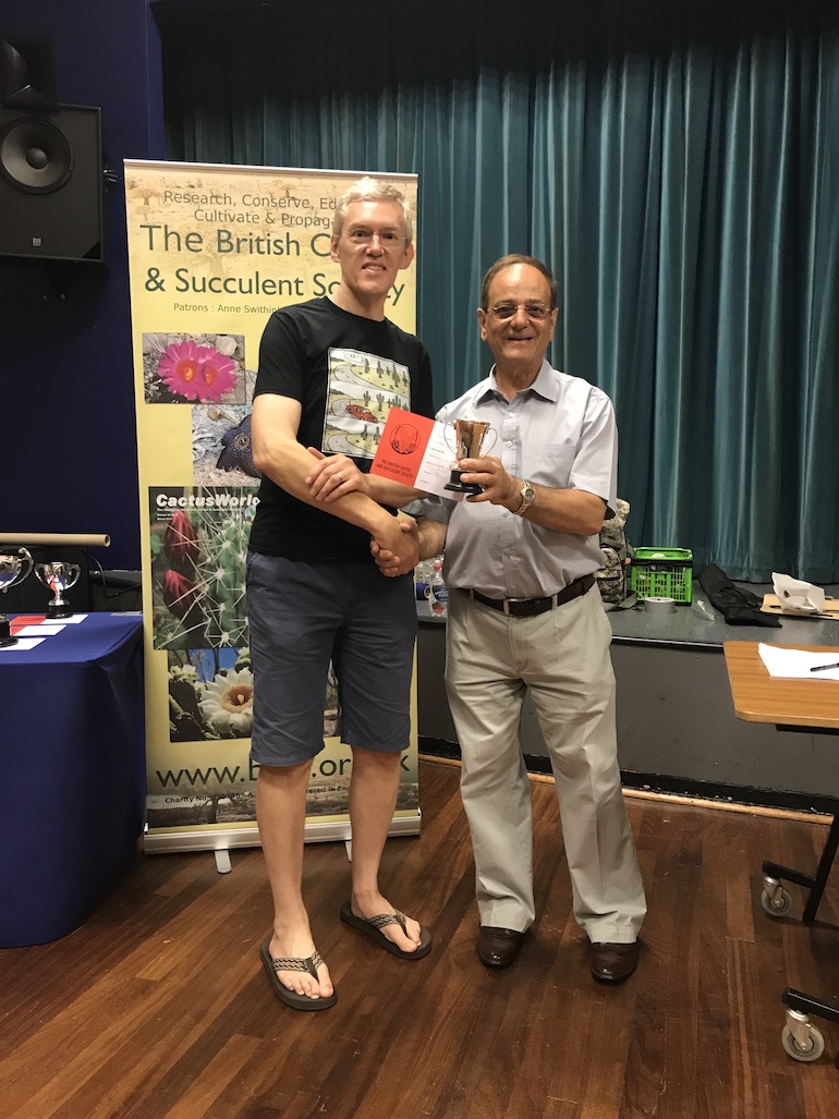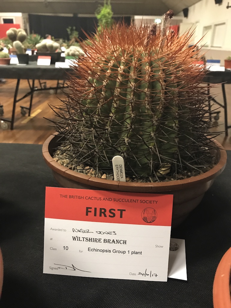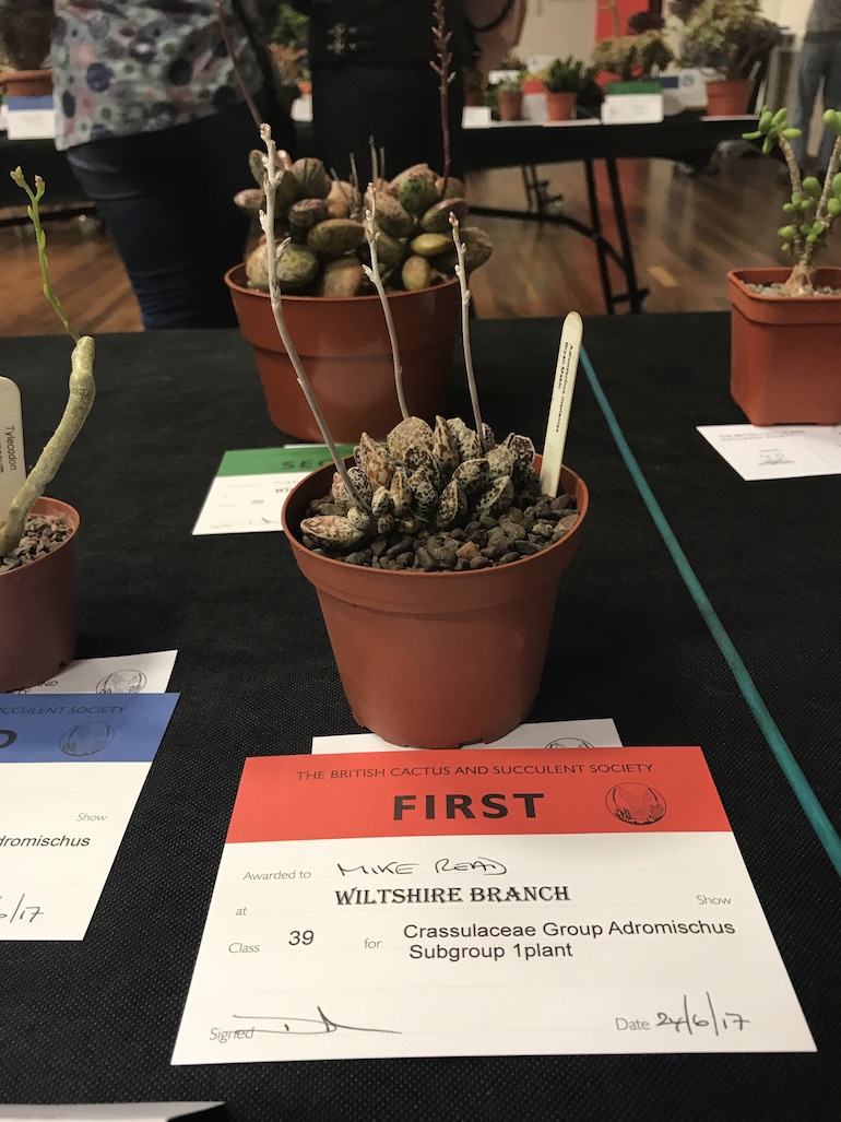 Thank you to everyone from the Wiltshire branch who helped out prior to the day and on the day making the teas, doing the entry on the door, aiding with the set up and take down. Maggie did a sterling job on the sales tables and it was great to have such a good range of plants to sell. Congratulations to Derek May Chairman of the Wiltshire Branch for organising and managing a great cacti and succulent show for the Wiltshire branch.