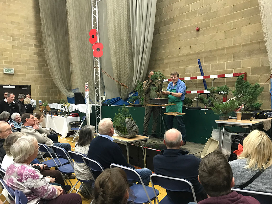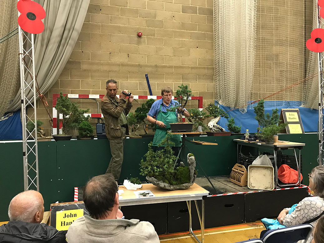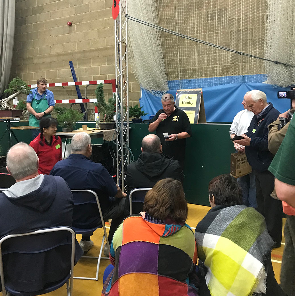 There was so much to see and do all day but many took time out from viewing the exhibits and shopping for bonsai to watch the demonstrations by John Hanby which were very useful and informative.