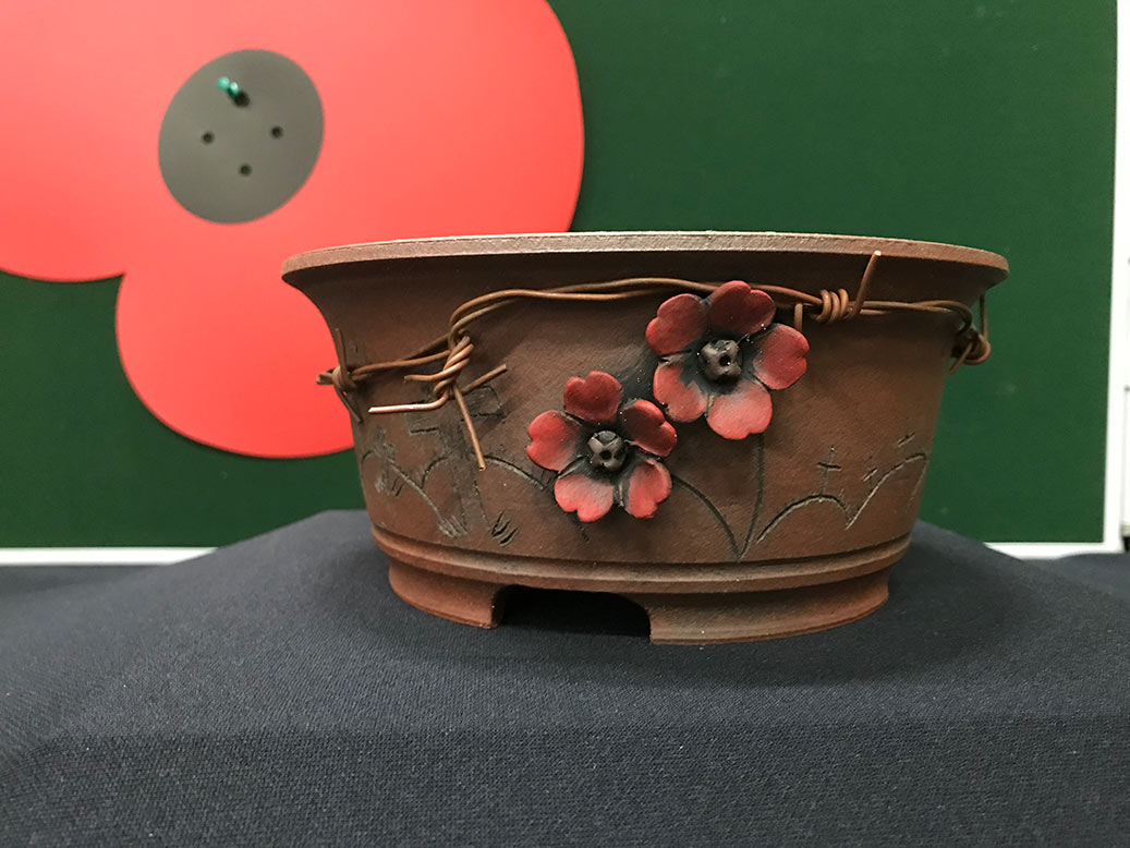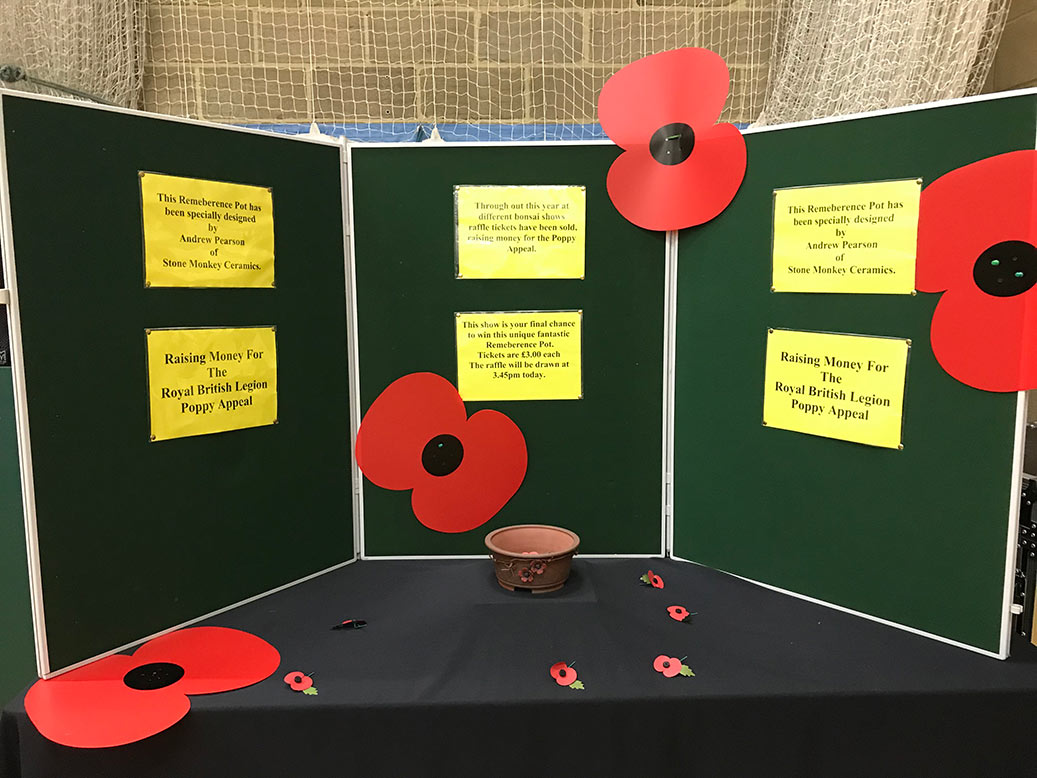 Thank you to everyone who bought a raffle ticket and congratulations to the lucky winner of this superb Remembrance pot designed by Andrew Pearson of Stone Monkey Ceramics which has raised funds for a well deserved charity of the Royal British Legion Poppy Appeal. The winner of the RBL raffle was Clive Osborne of Swindon Bonsai Society.