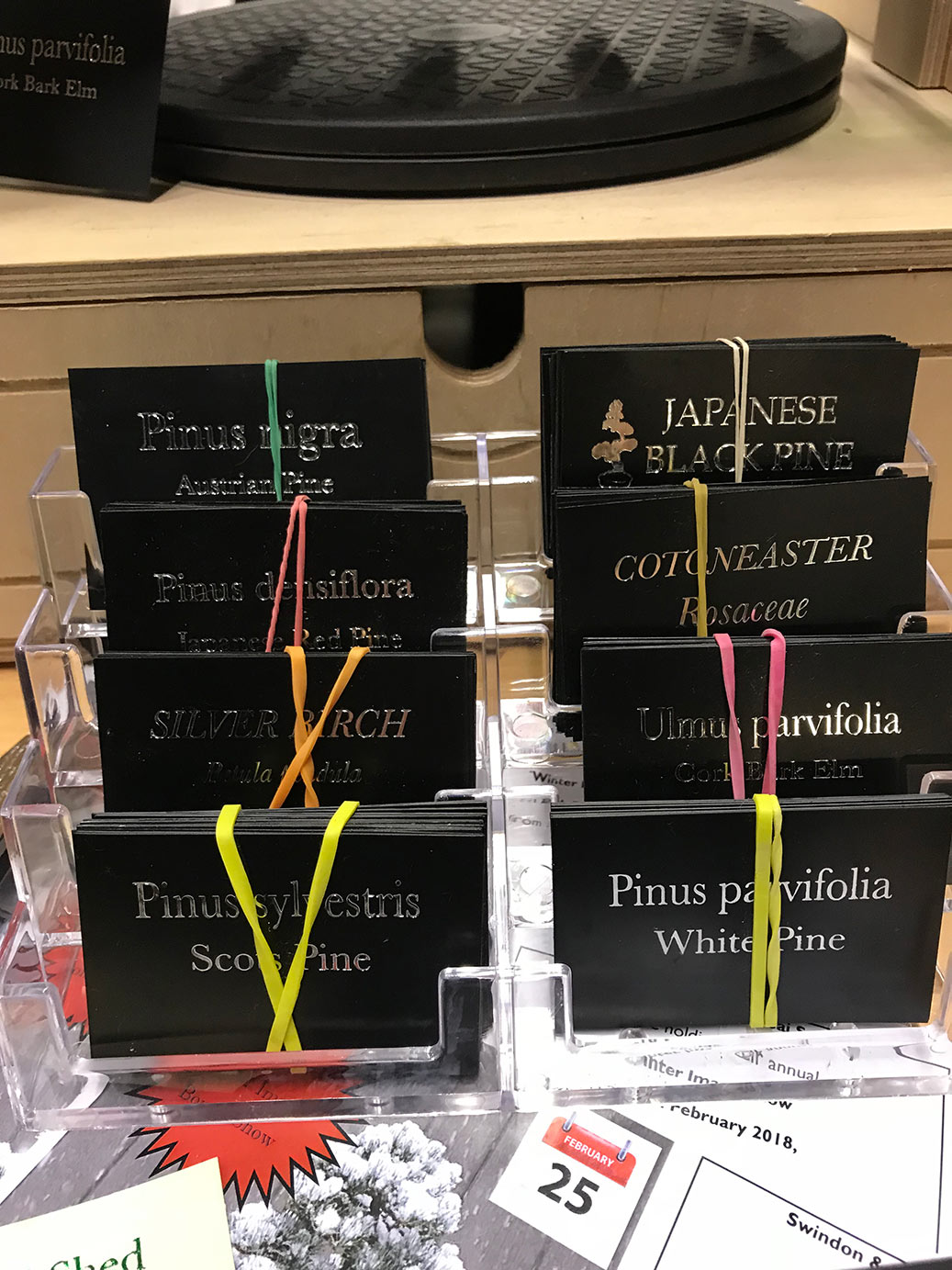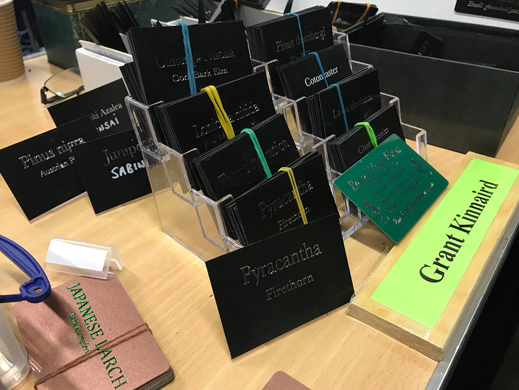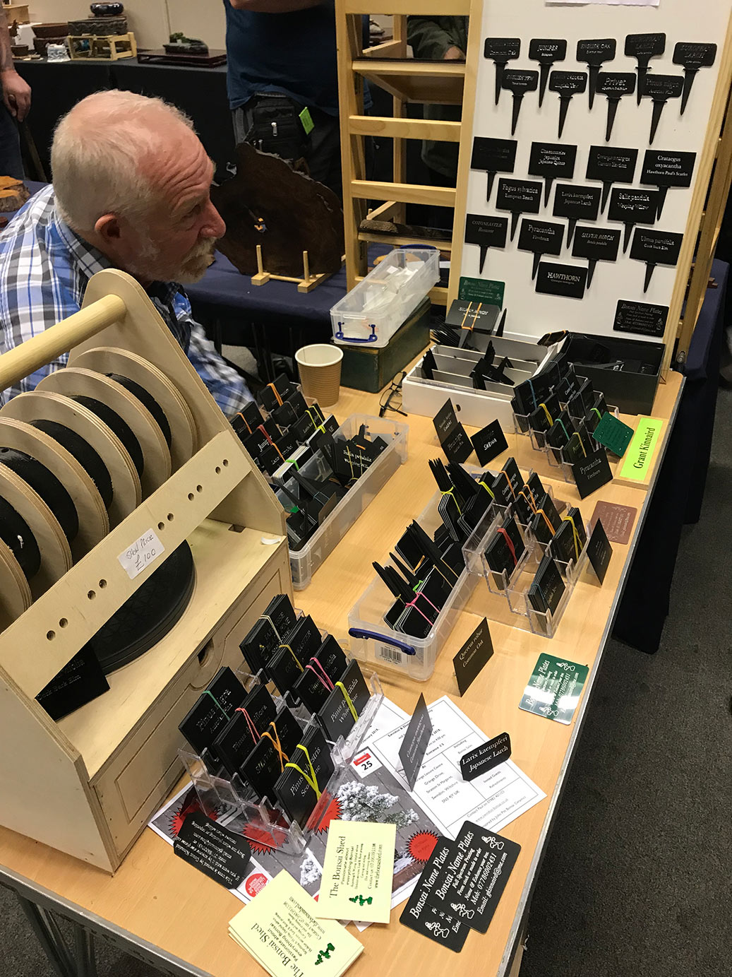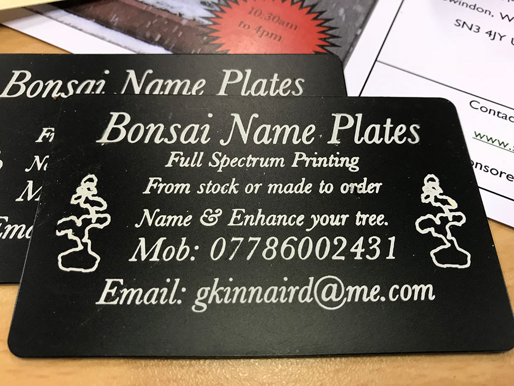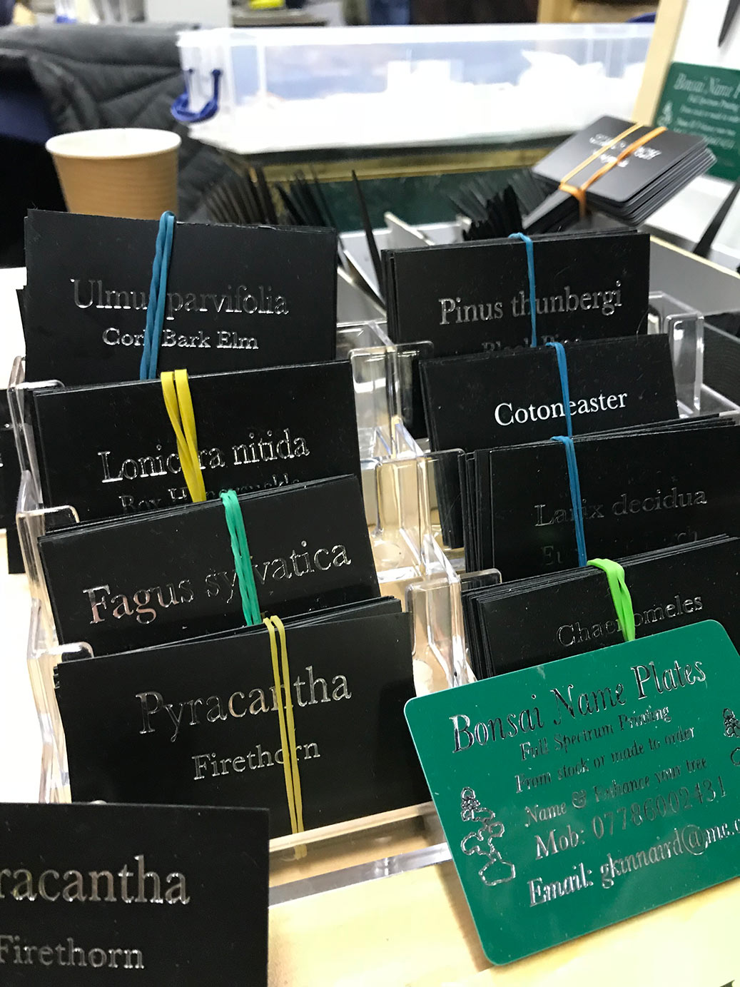 Grant Kinnaird of Bonsai Name Plates has started producing and selling some bonsai tree labels to aid with identification of bonsai trees for your own collection as well as for use at shows. The labels have been well received by the bonsai community and were seen on some trees at the recent Heathrow Show in October.