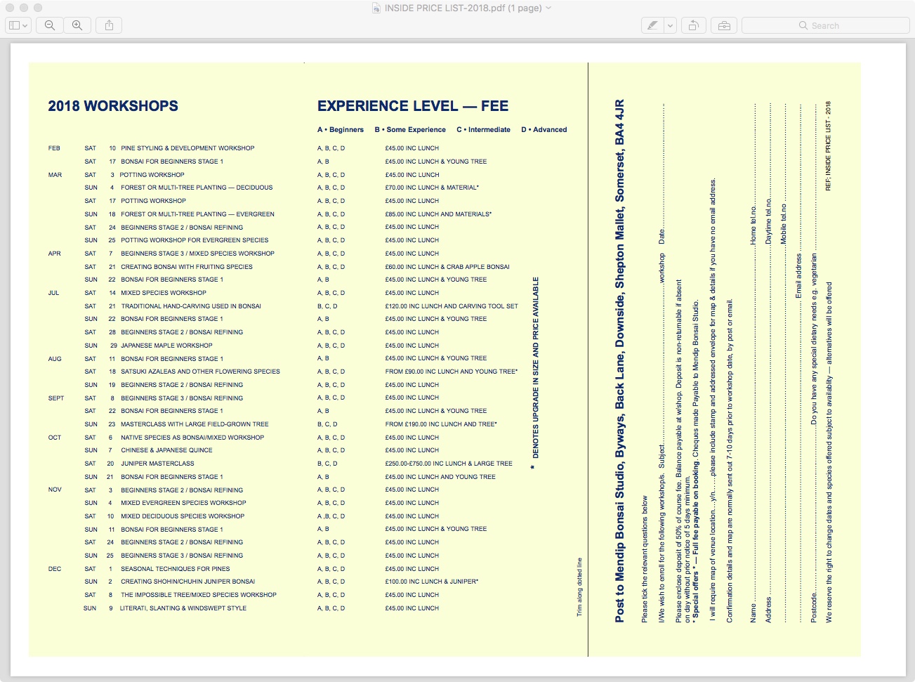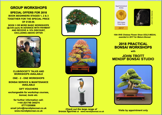 John Trott of Mendip Bonsai Studio wants all his customers and those who also share a passion to learn the art of bonsai and has launched his most recent workshop list for 2018 which is now available for bookings. Due to a massive response to his range of bonsai workshops offered this year, and the request for next years dates already he has finalised the dates earlier than last year to hopefully avoid disappointment.