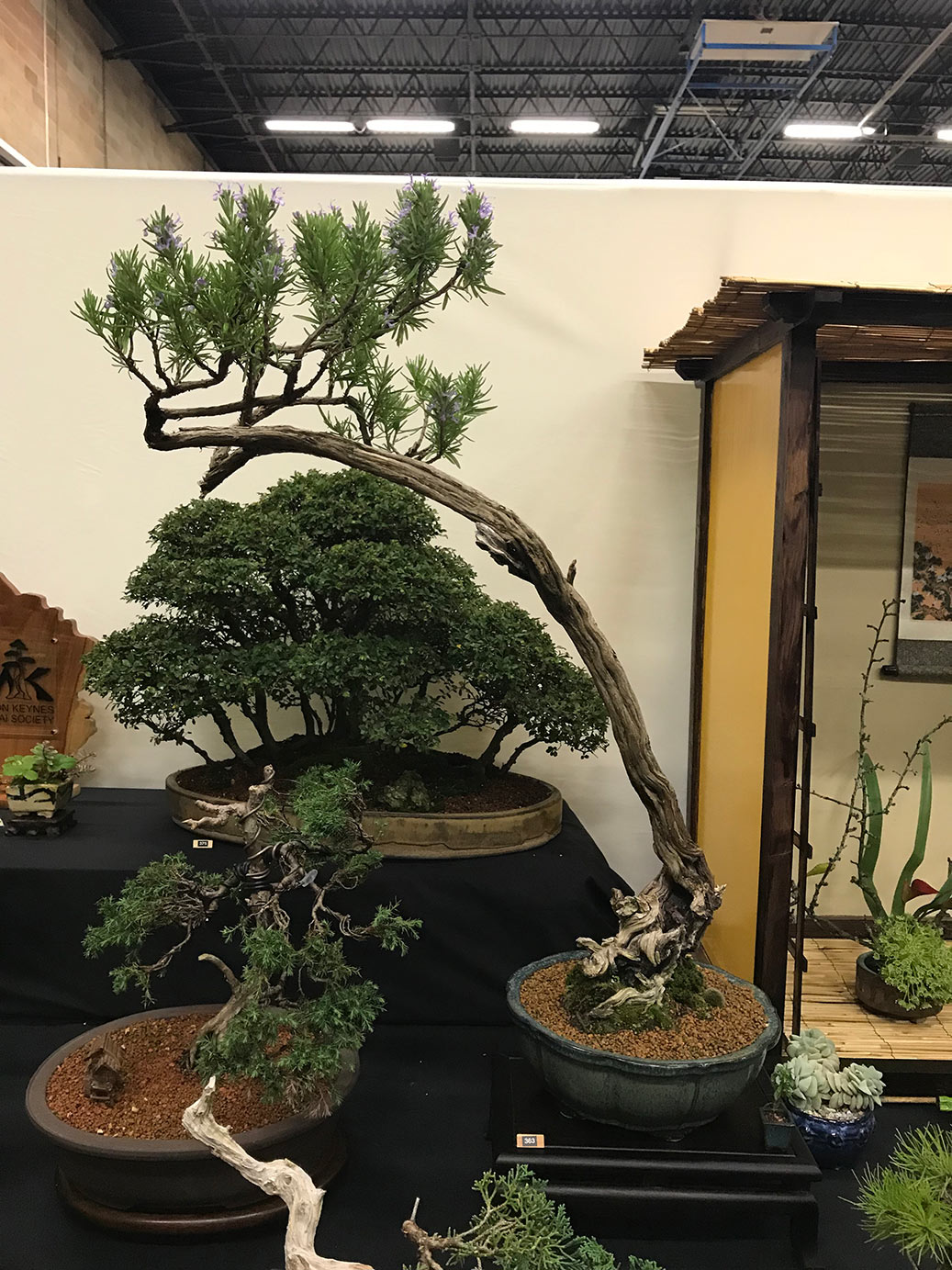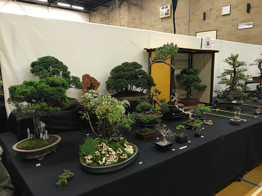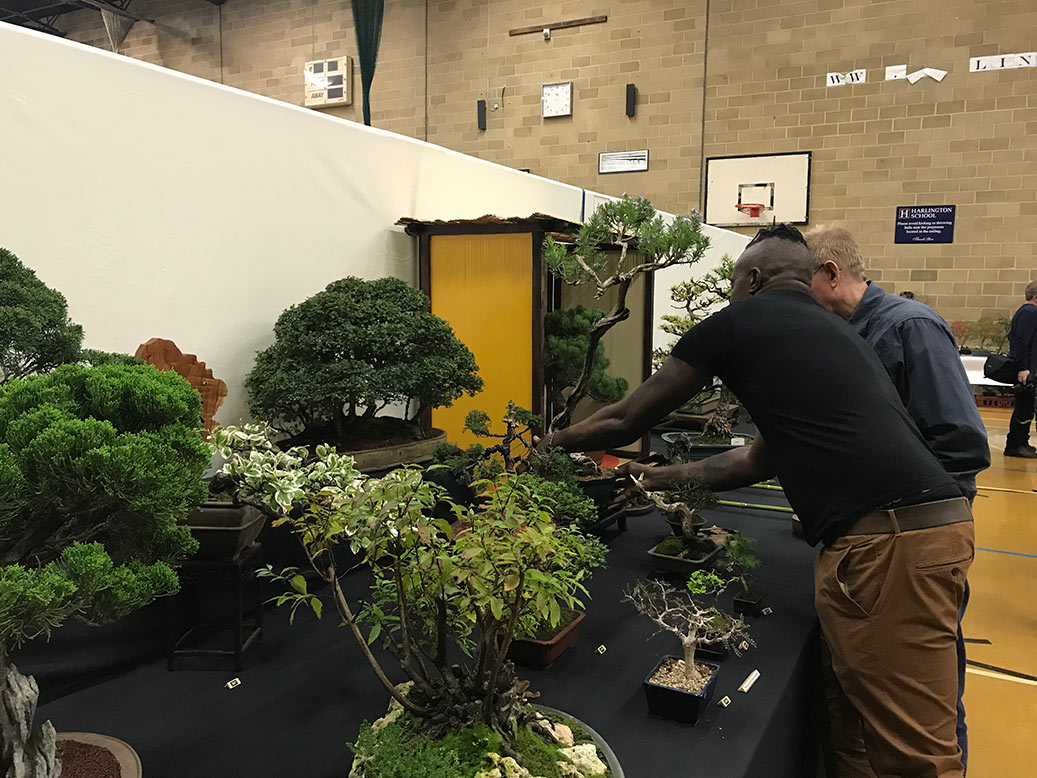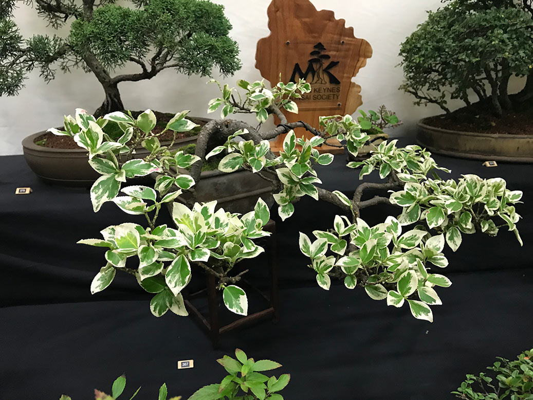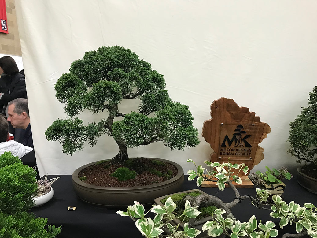Milton Keynes Bonsai Society was formed in 1986. The society aims to promote the art and appreciation of bonsai cultivation. They aim to encourage members to develop all aspects of bonsai art and utilise various methods such as monthly meetings, talks by bonsai professionals and a collection of literature for use within the club. Visitors are welcome and if you are satisfied they would like to invite you to become a member. Meetings are held at 7.30pm on the second Monday of each month (except January & August) at Milton Keynes Reform Synagogue Hall, 1 Hainault Drive, Giffard Park, MK14 5PQ. They have a tea break and often a raffle. Please see their events link for upcoming meetings/events on their facebook page. They put on a bonsai display for the first time at the 8th Heathrow Bonsai show and below are a few images of their club members display.