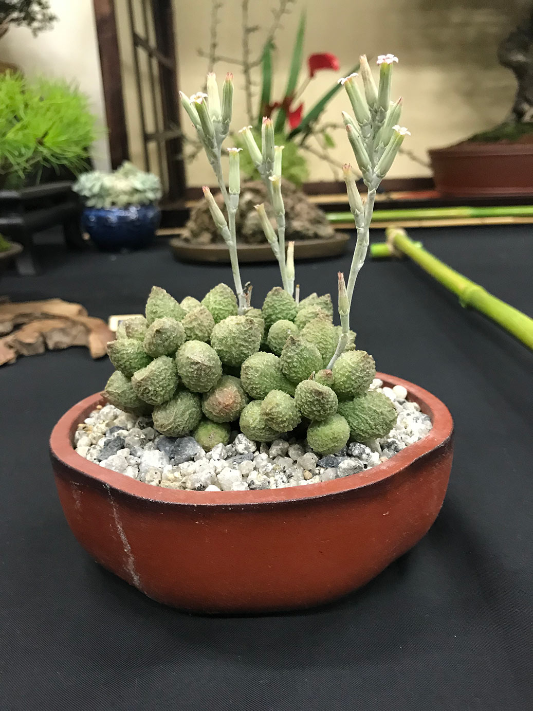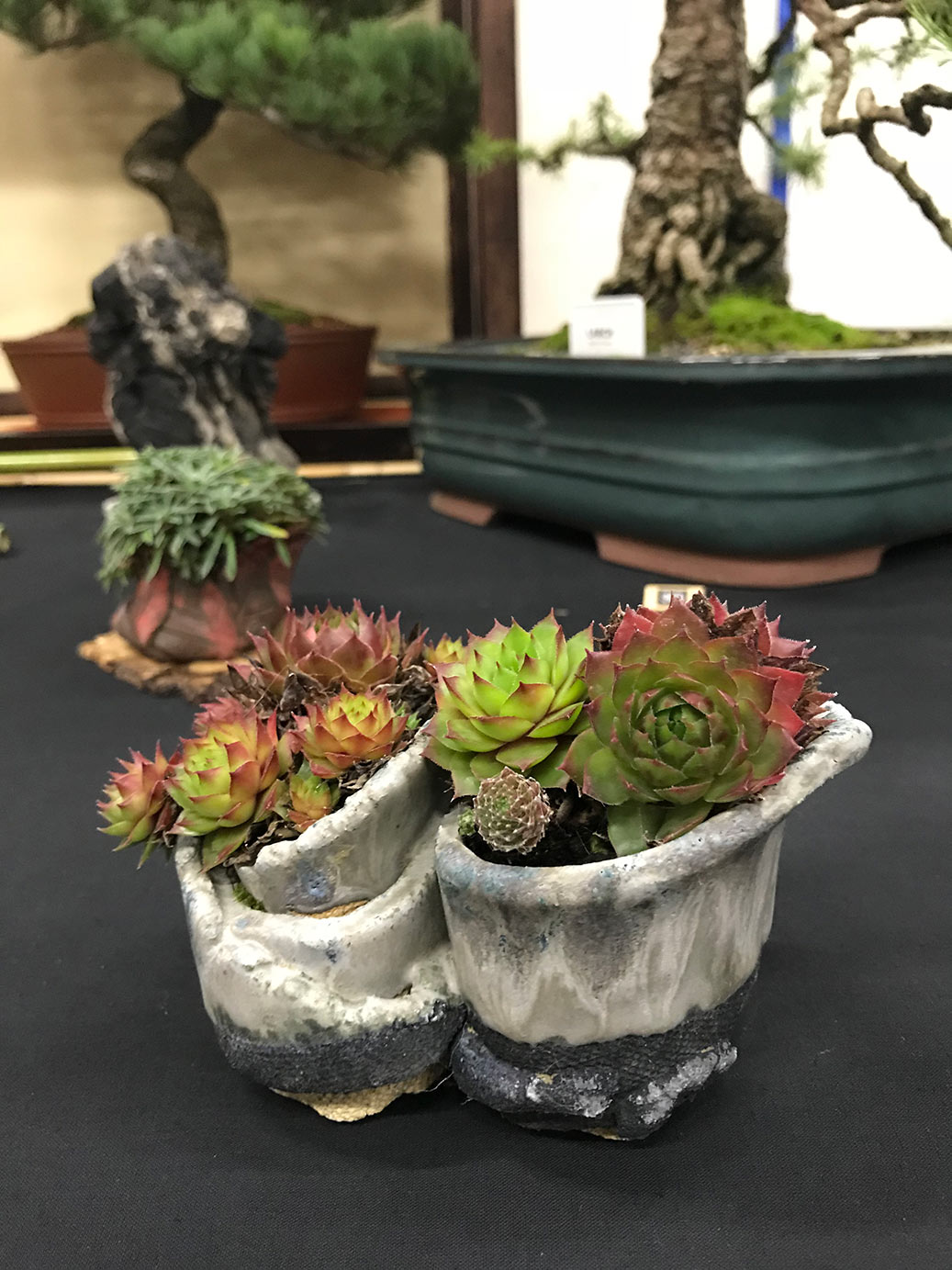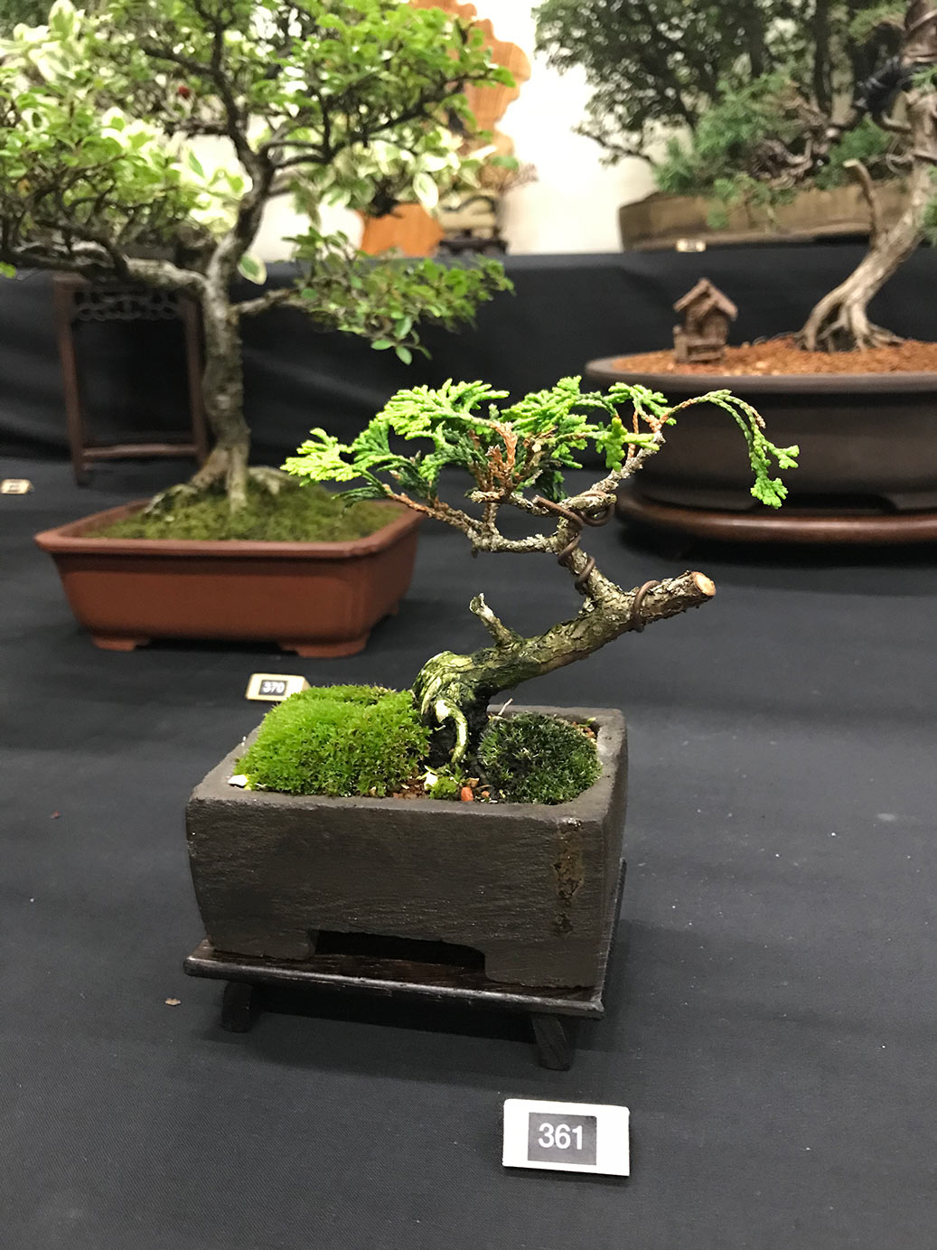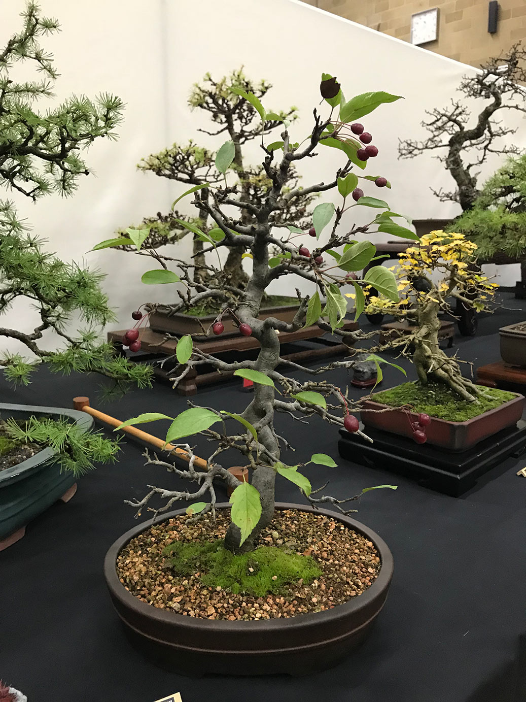 Milton Keynes Bonsai Society was formed in 1986. The society aims to promote the art and appreciation of bonsai cultivation. They aim to encourage members to develop all aspects of bonsai art and utilise various methods such as monthly meetings, talks by bonsai professionals and a collection of literature for use within the club. Visitors are welcome and if you are satisfied they would like to invite you to become a member. Meetings are held at 7.30pm on the second Monday of each month (except January & August) at Milton Keynes Reform Synagogue Hall, 1 Hainault Drive, Giffard Park, MK14 5PQ. They have a tea break and often a raffle. Please see their events link for upcoming meetings/events on their facebook page. They put on a bonsai display for the first time at the 8th Heathrow Bonsai show and below are a few images of their club members display.