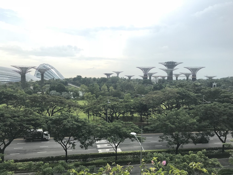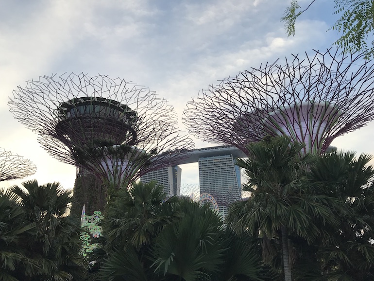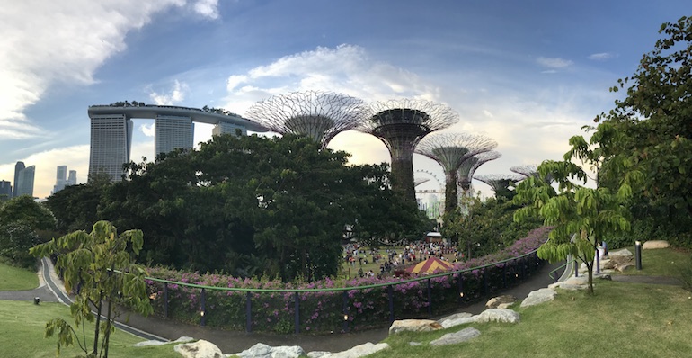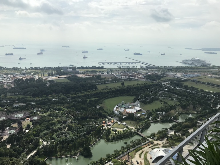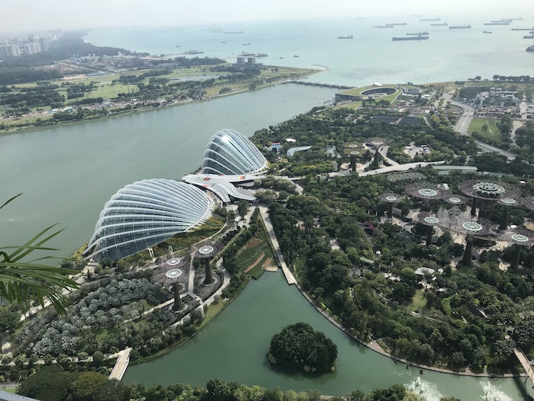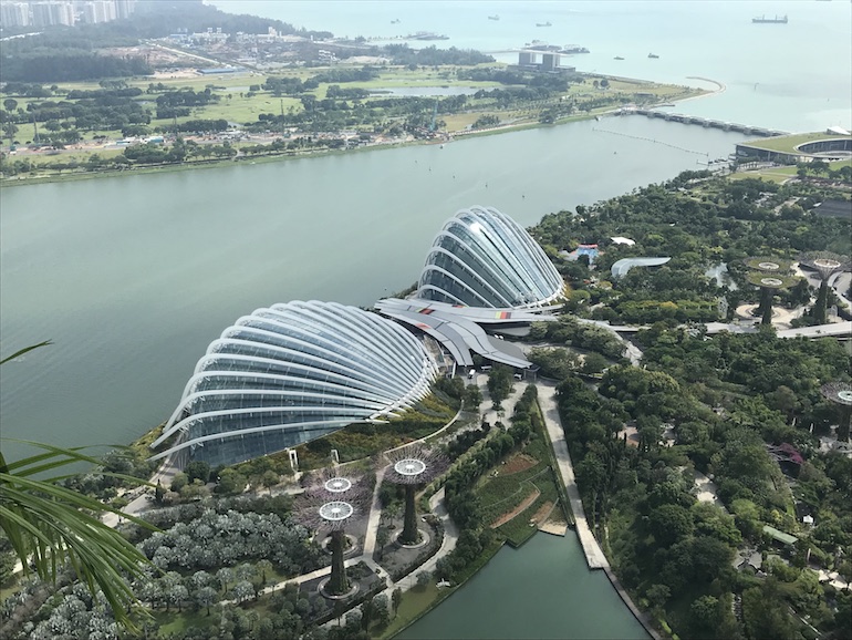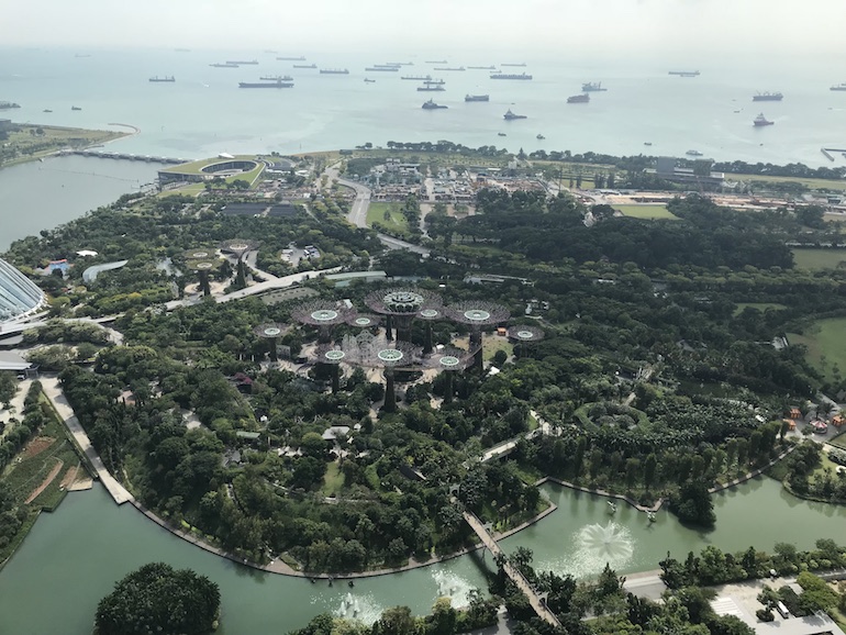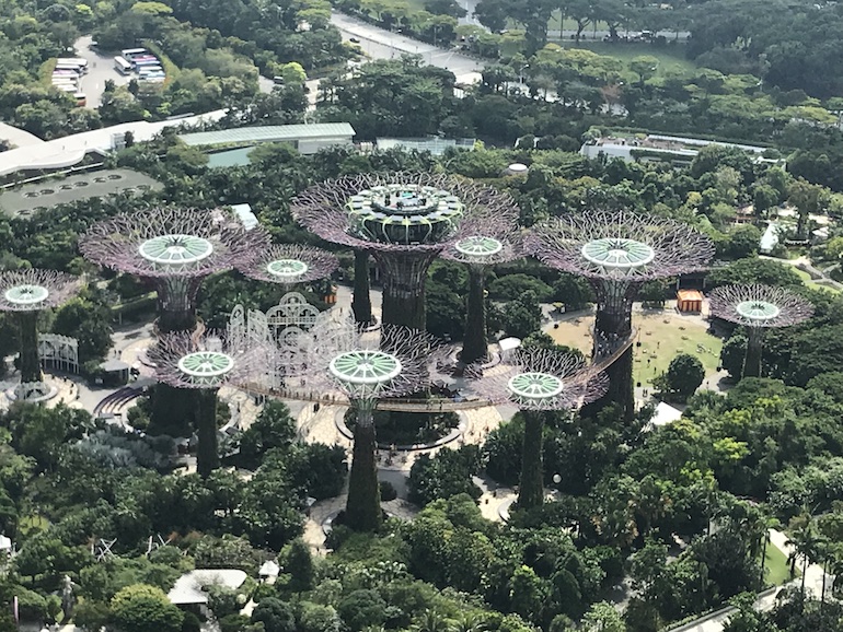 Aerial views of the Gardens by the Bay from the roof of the Marina Bay Sands Hotel