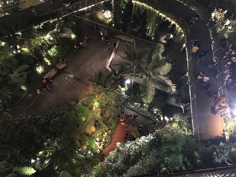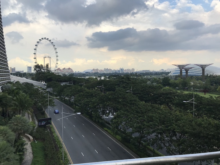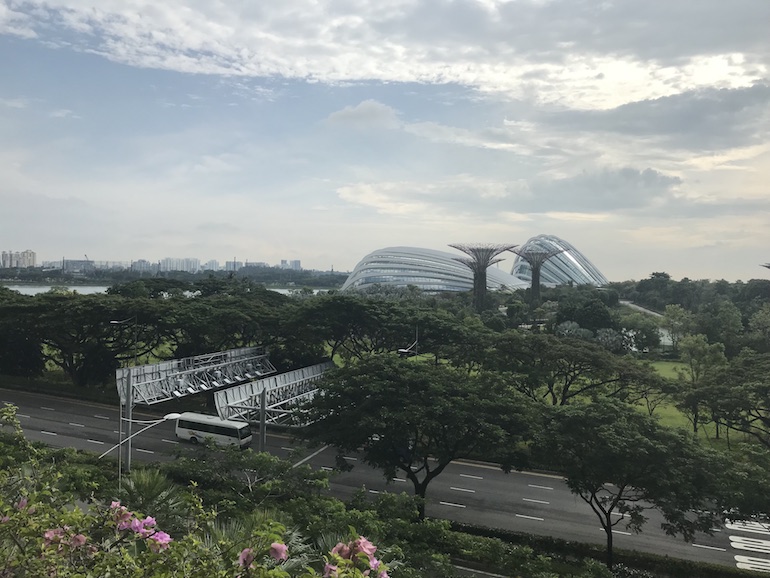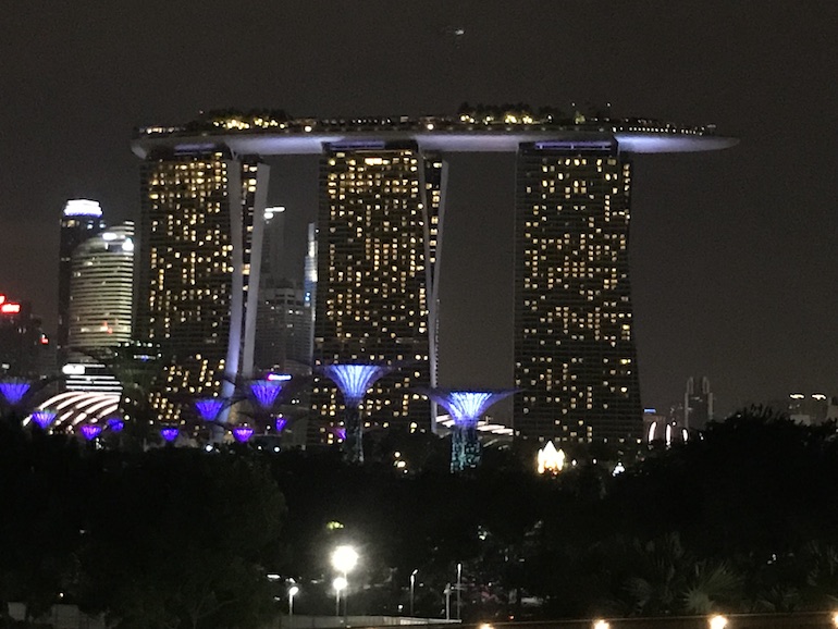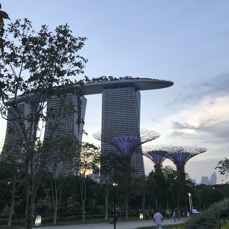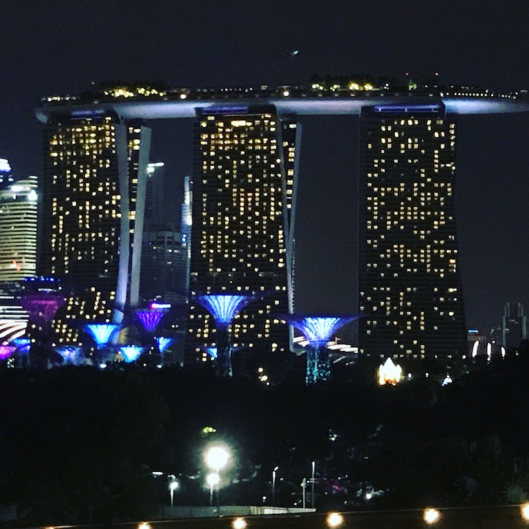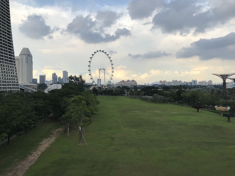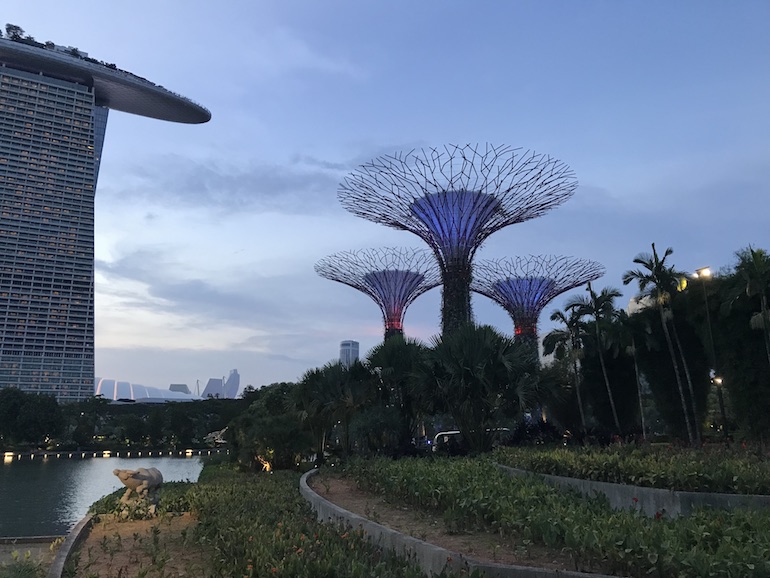 Aerial views of the Gardens by the Bay from the roof of the Marina Bay Sands Hotel