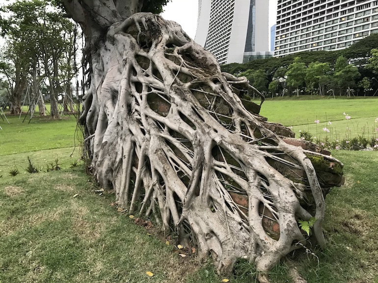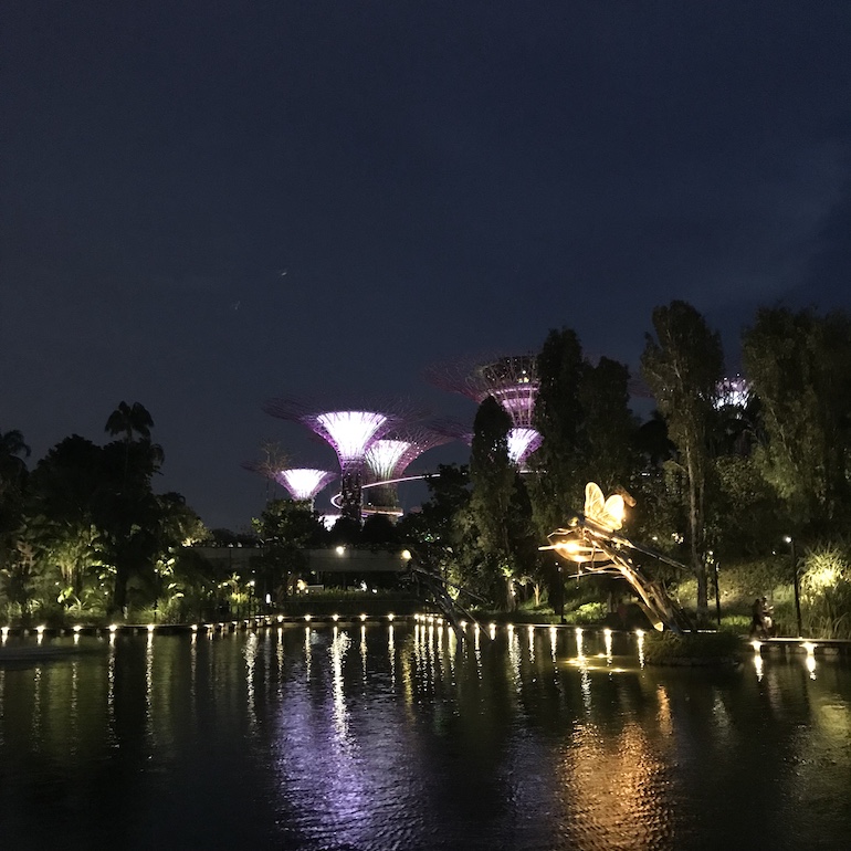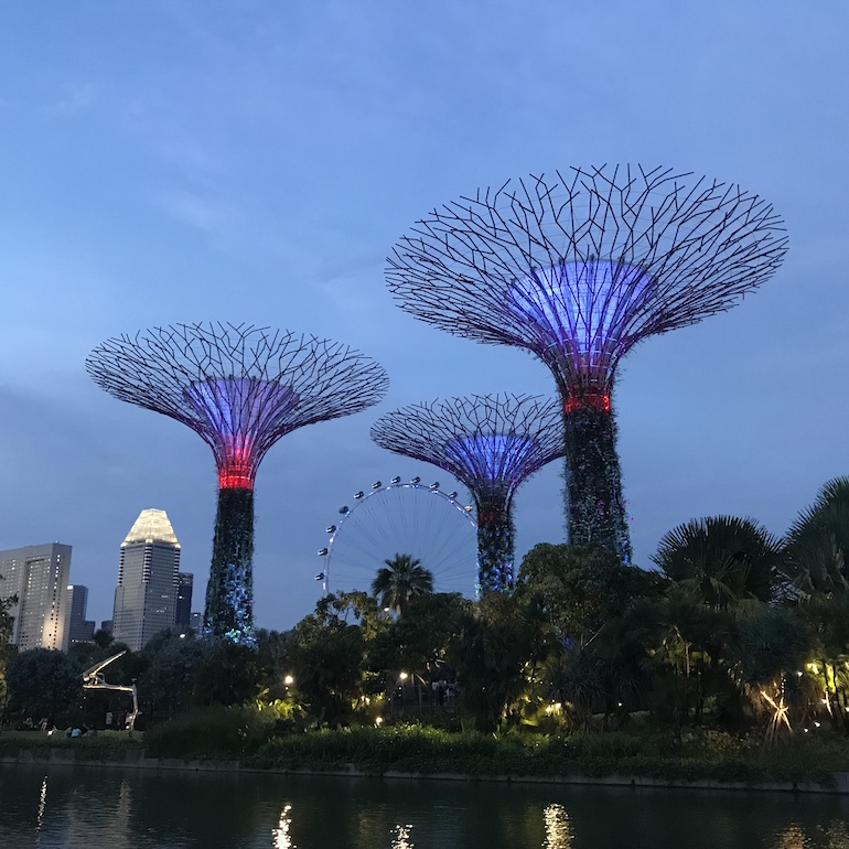 Wow and wow again is the only way to describe the Gardens by the Bay in SIngapore. What an amazing location and site, a botanical dream and inspiration all in one place. The scale, presence, magnificence and beauty is incredible. We were fortunate to visit during Christmas so the gardens were buzzing with people visiting the winter wonderland festive fair, as well as just viewing the amazing floral displays. The lakes within the gardens are full of fish and other wildlife and the real trees are establishing well. It was great to see so many varied species used within the planted areas as well as some excellent examples of Figs and Baobabs.
