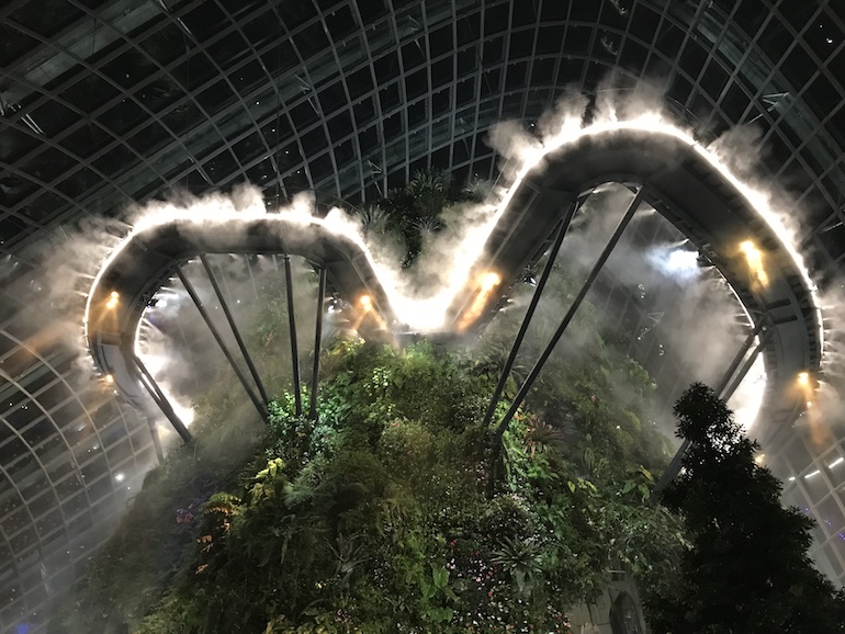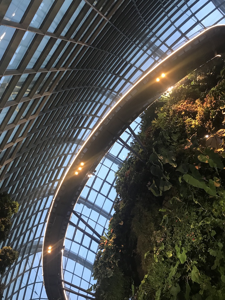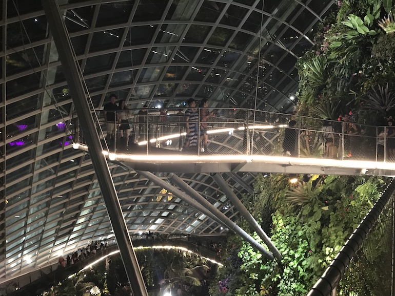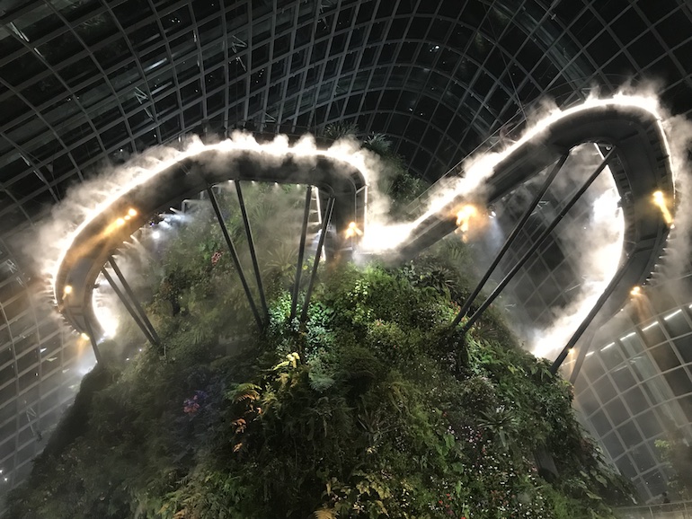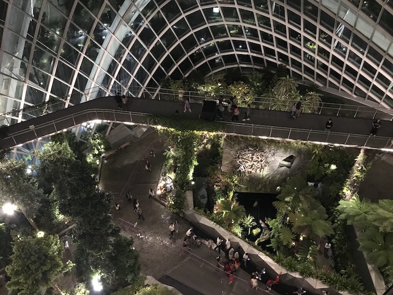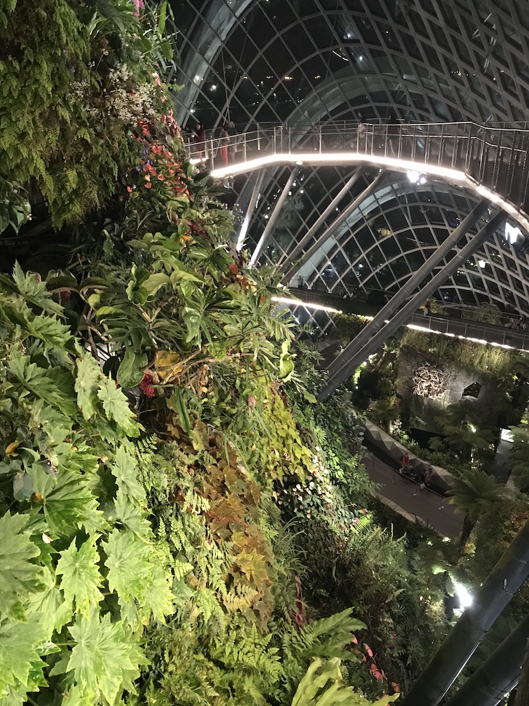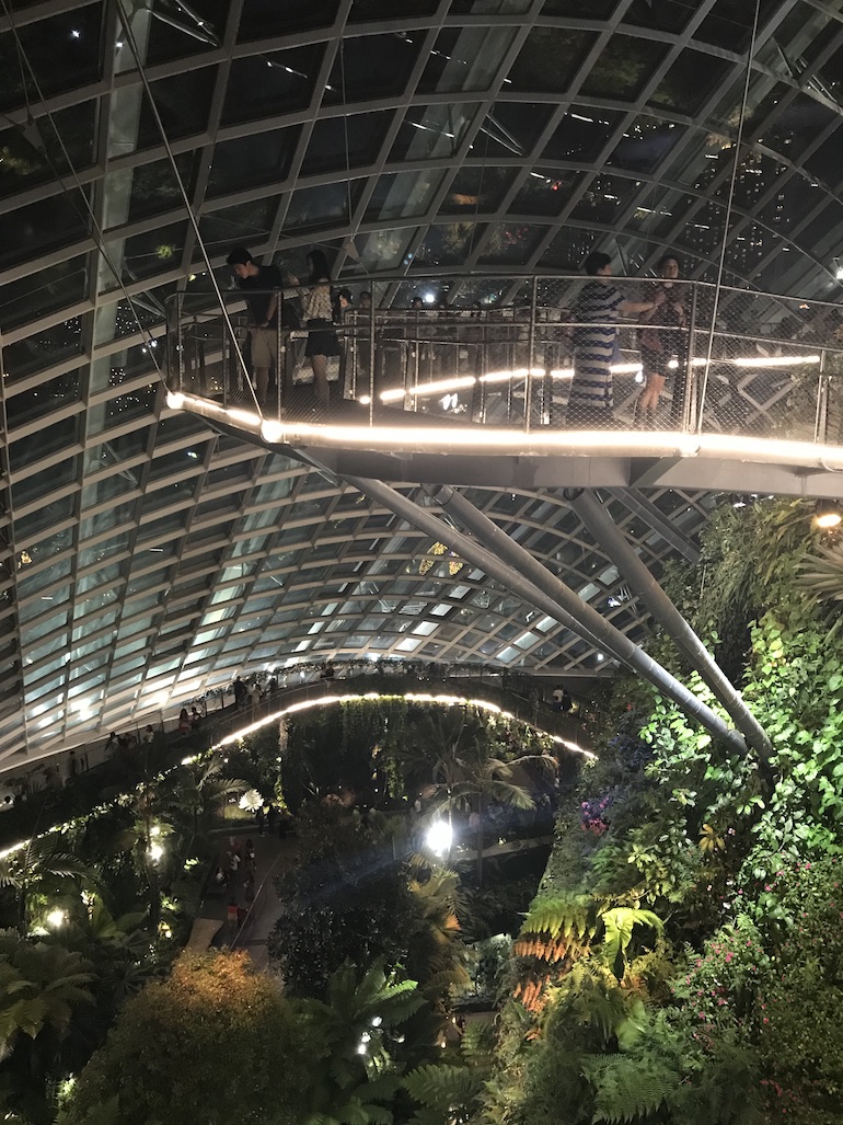 Having visited other bio domes around the world I was fairly confident in what I would find inside the Cloud Forest Dome and also having been to the Cloud forests in Costa Rica, however this was just mind blowing. Inside the Cloud Forest dome you are greeted first off with a waterfall which is 35 metres in height, and then spiral your way around the dome inside to get a lift up to the 6th floor to climb up to the 8th floor aerial walk way in the clouds. Everywhere is packed full of plants and trees, ferns and mosses including some superb wood carving sculptures plus lego! The lighting illuminates key features enhancing your experience in addition to the mist in the air and running water. What an experience and well worth the visit.