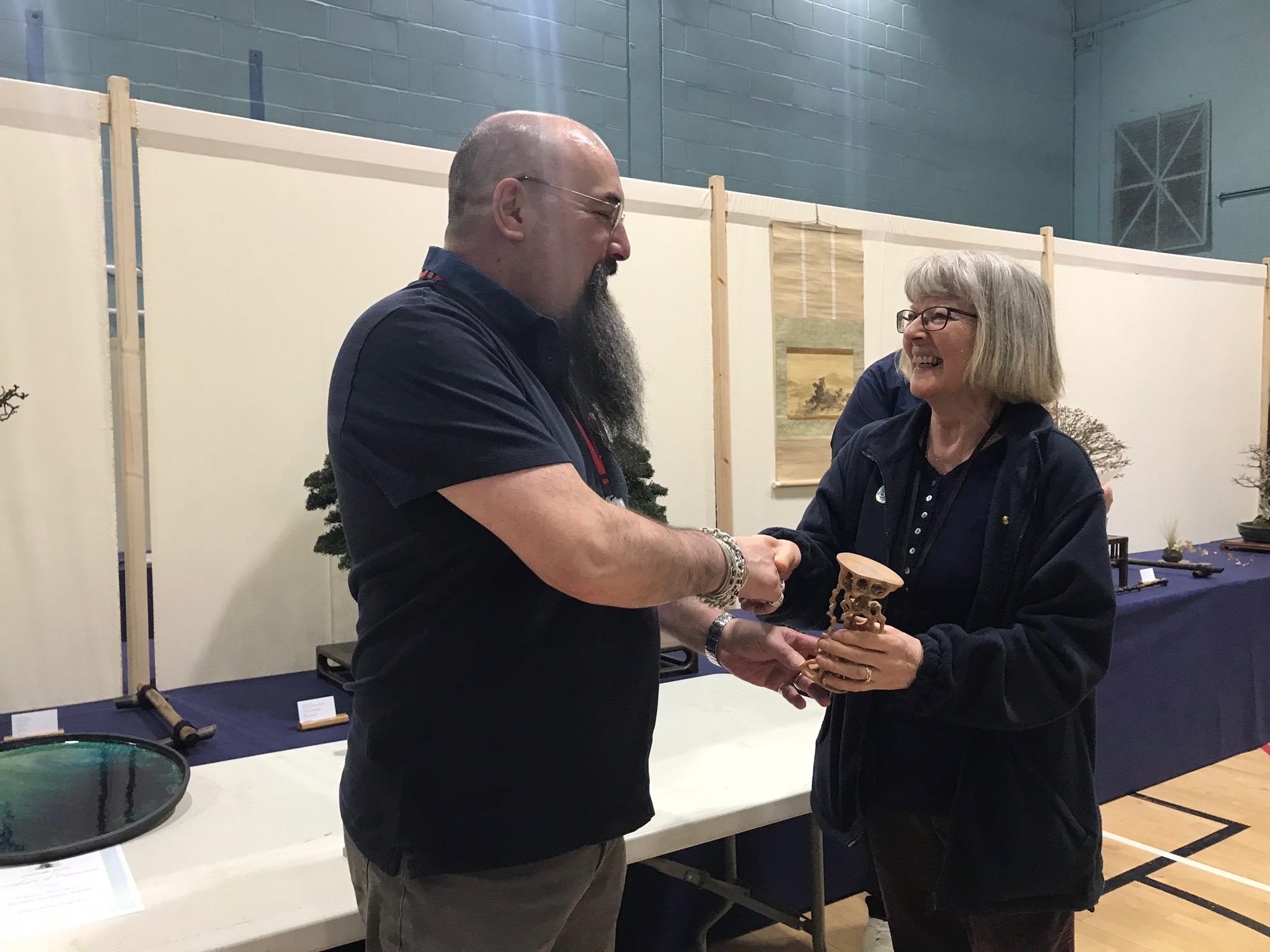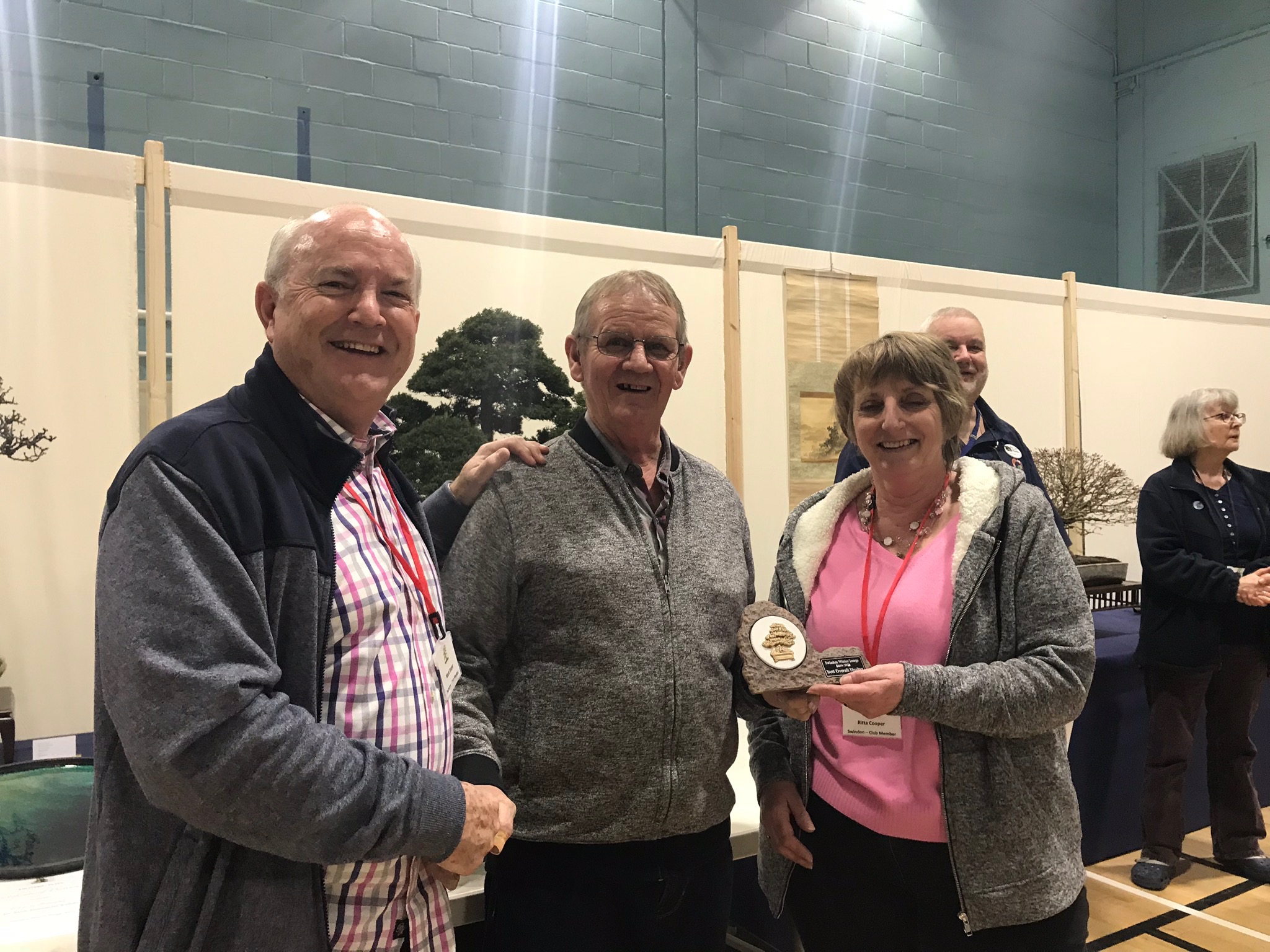 - Mark and Ritta Cooper being awarded for the Best Shohin tree by John Pitt