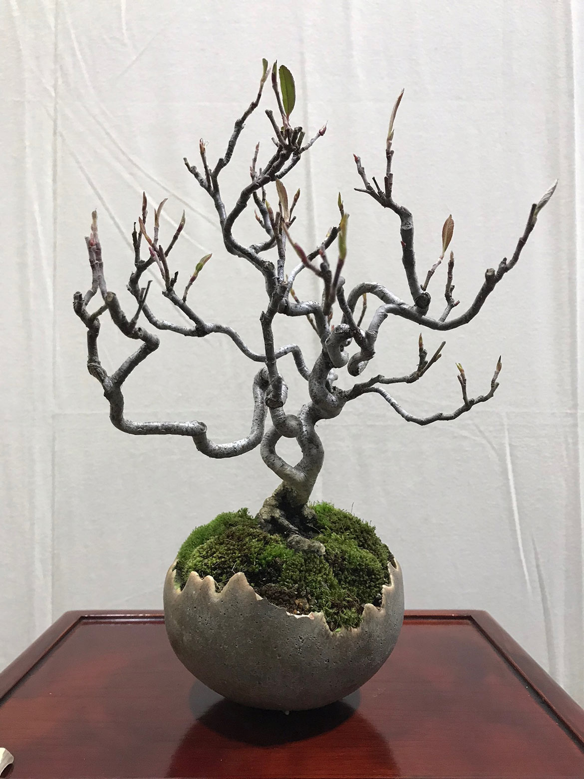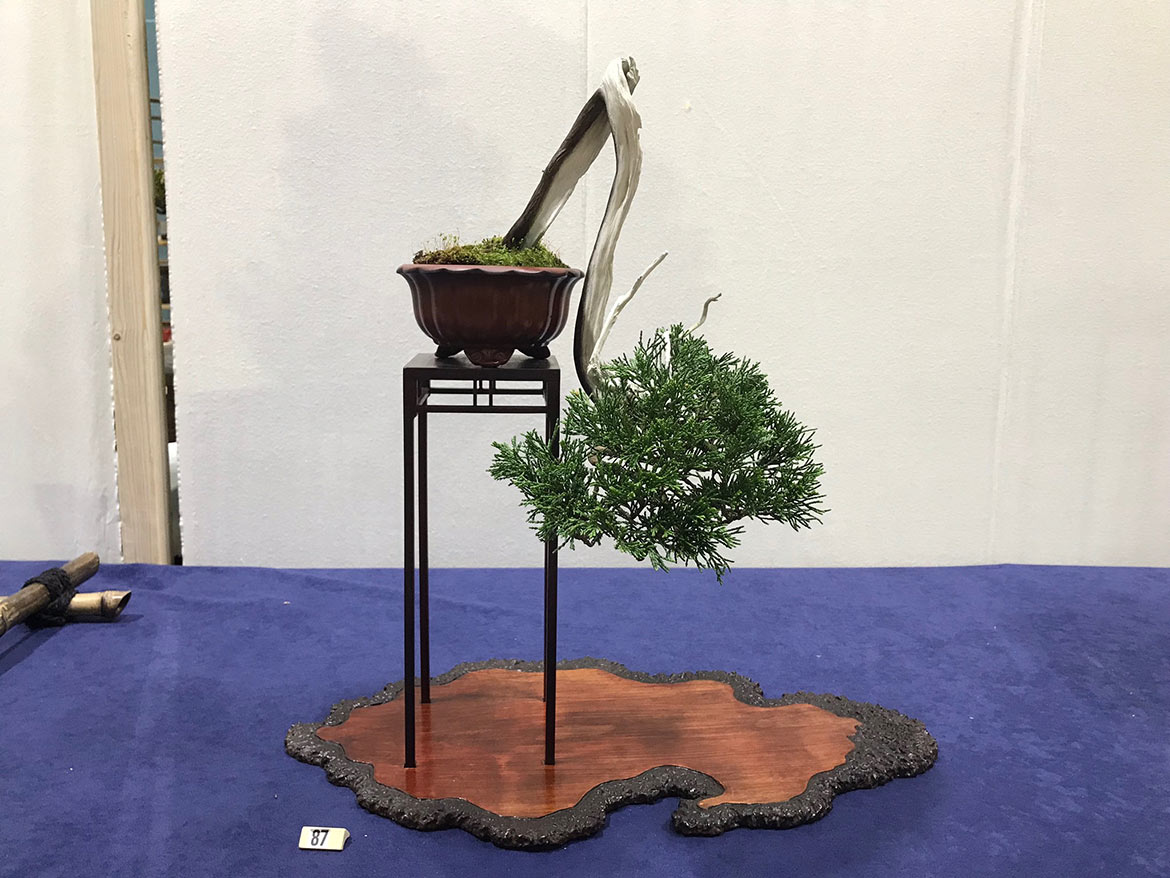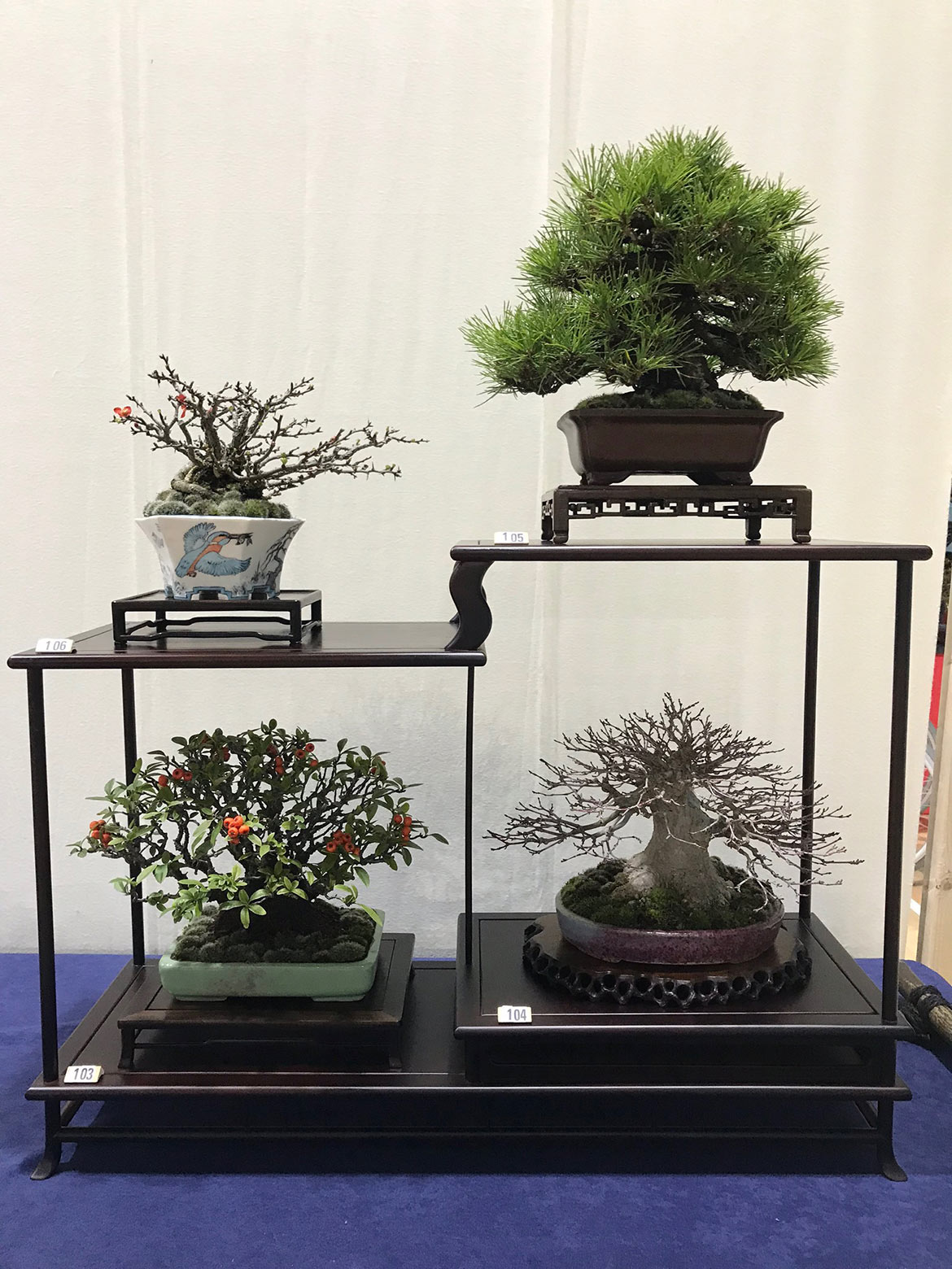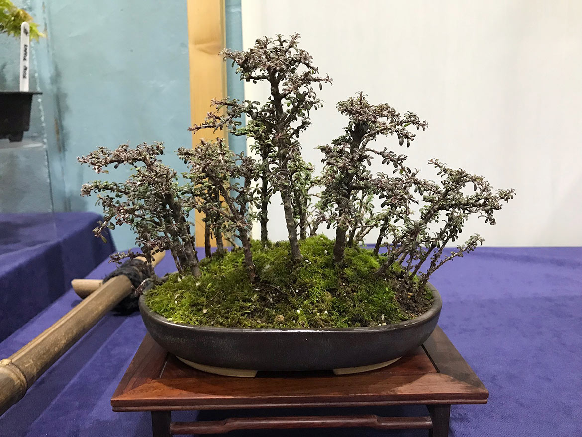This year we were pleased to also have a great collection of small trees on a range of shohin and mame displays at our show. The detail of some of these tiny bonsai trees is exquisite and they also have the cute factor. Below are the photos from each of the trees on the displays for your enjoyment. Thank you to everyone who set up a shohin and mame display as the time required to plan and then prepare these displays is often extensive as well as the day to day maintenance and care.