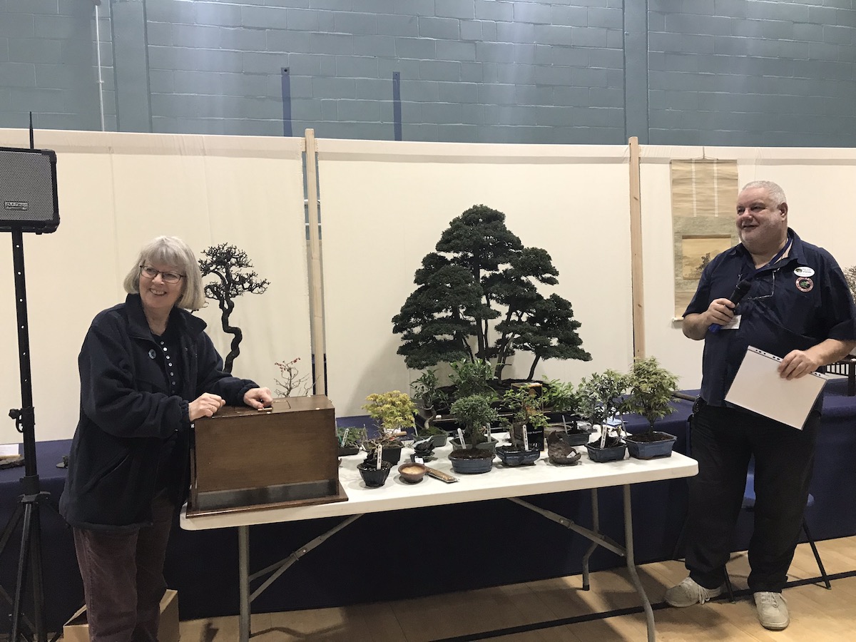 - Mark and Ritta Cooper being awarded for the Best Shohin tree by John Pitt