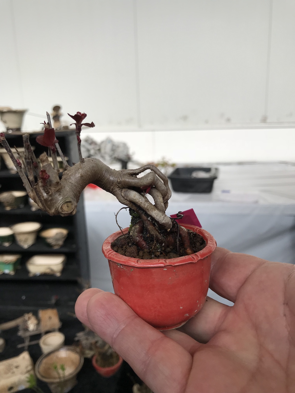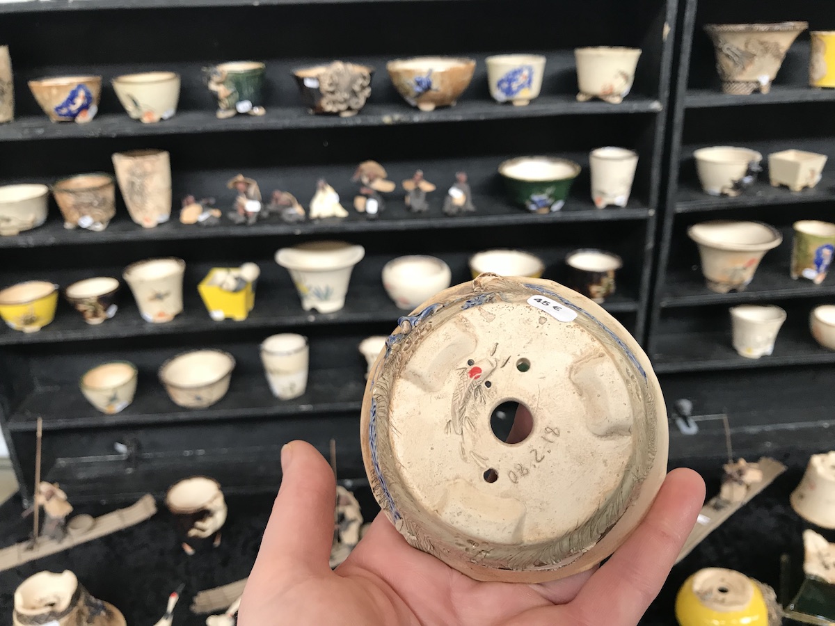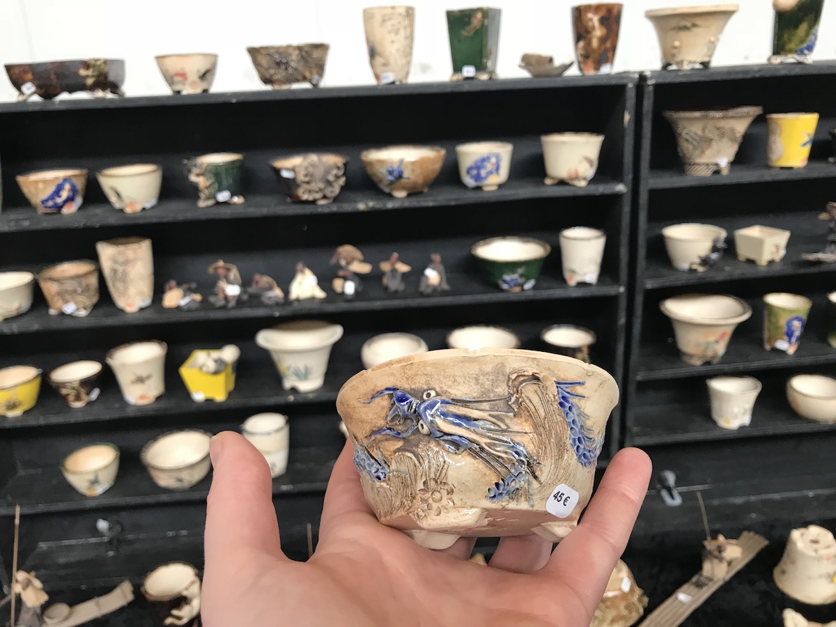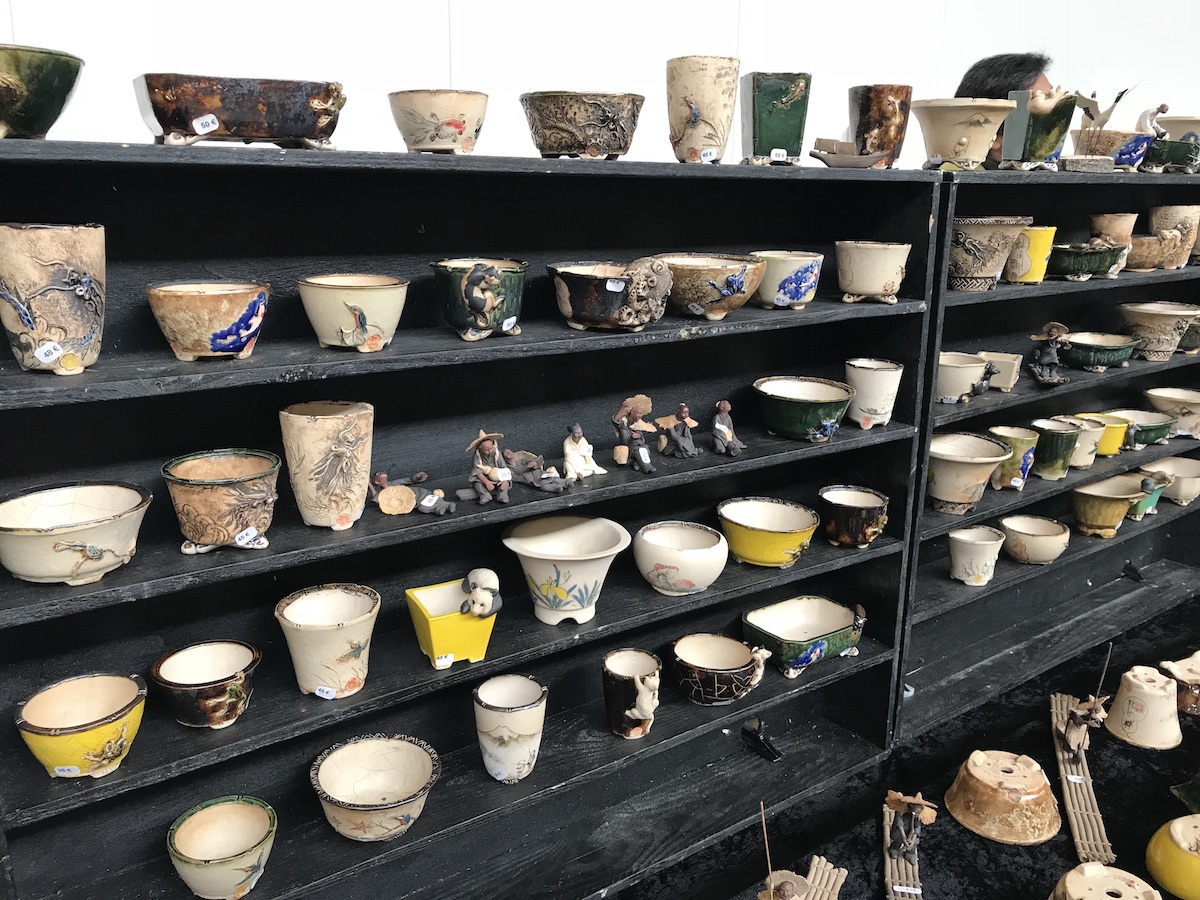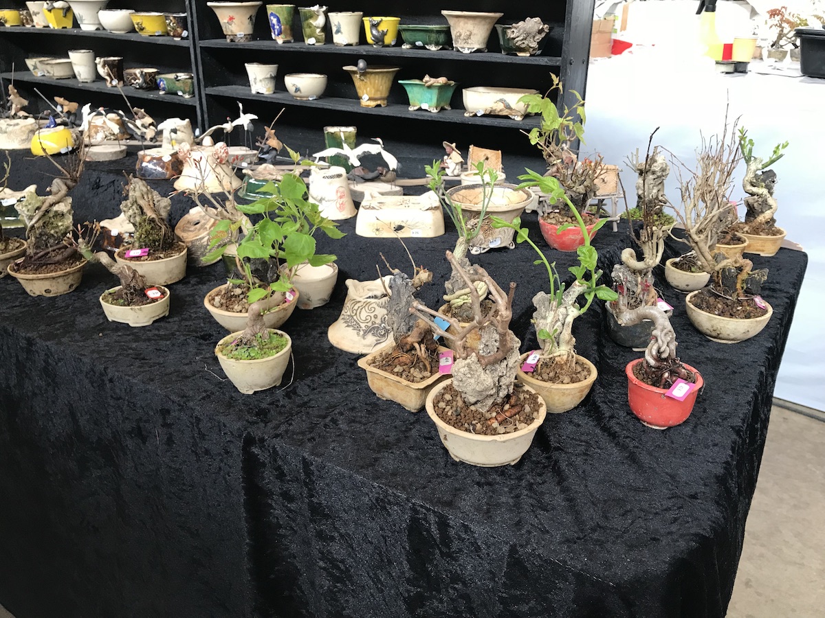 One trader who caught my eye and interest this weekend at the Lodder Bonsai open weekend was Lotus Bonsai Studio. Wow was my first impression to his stunning pots with such artistic flare and detail, they were wonderful. In addition he had some exquisite mame bonsai over rocks which has inspired me to have a go at creating some myself as well as making a purchase of a ready made one.