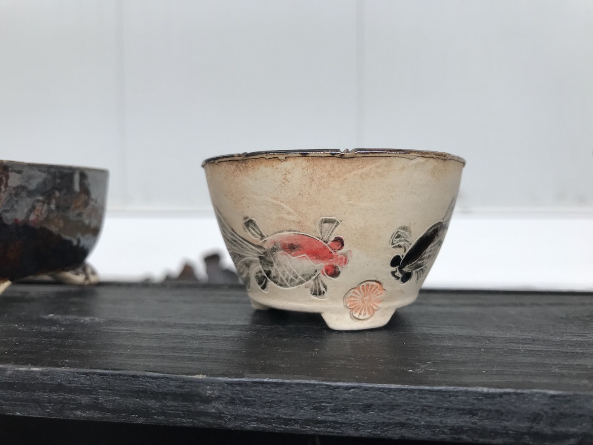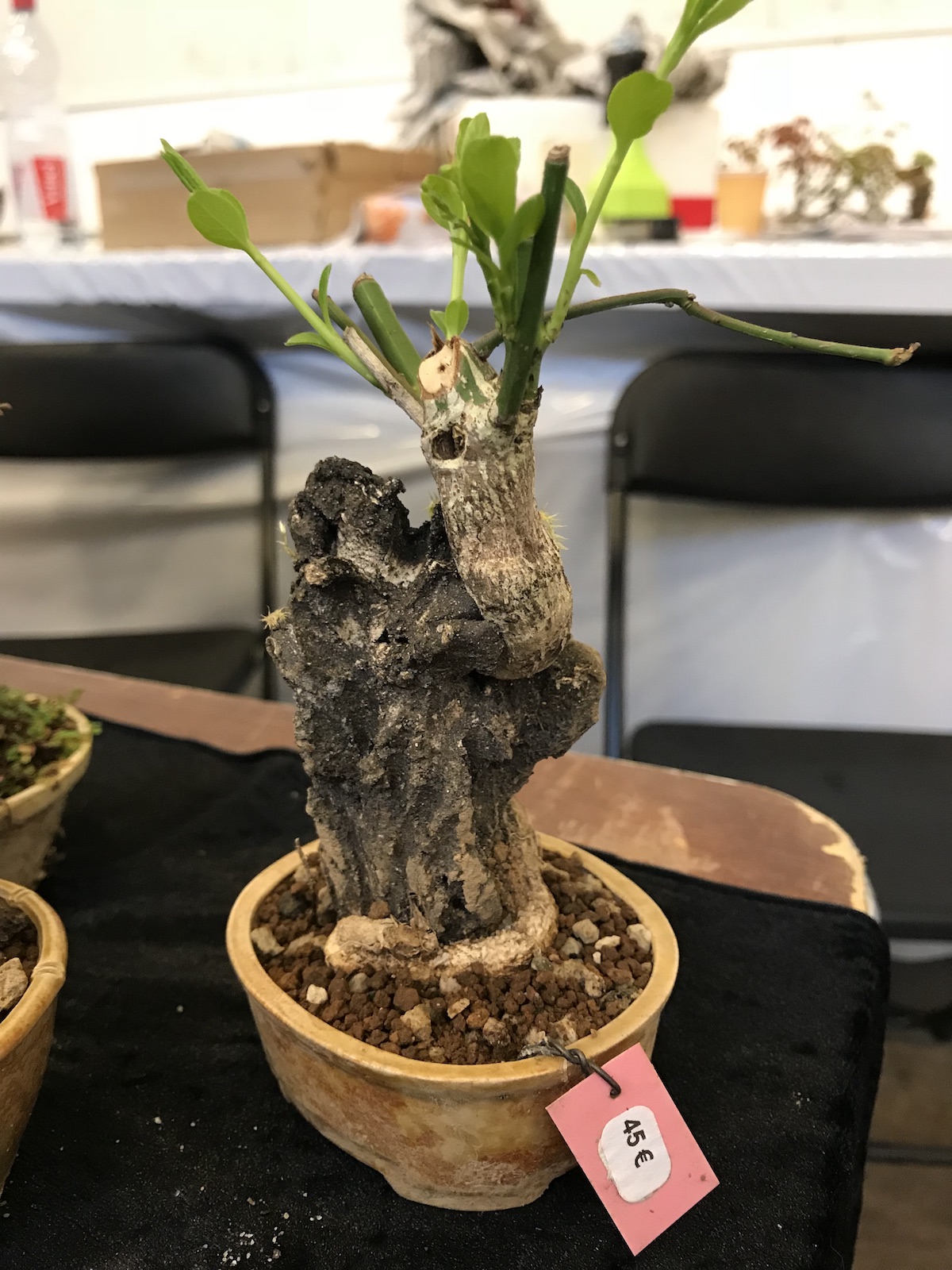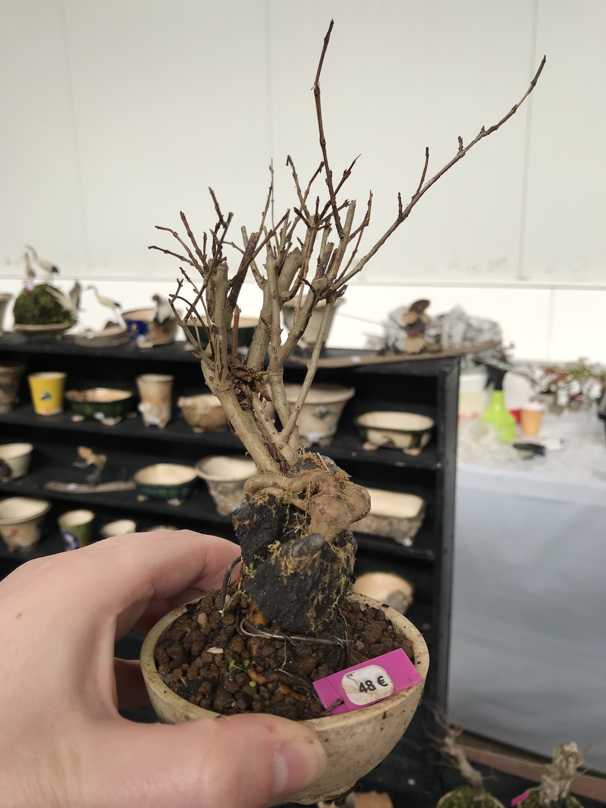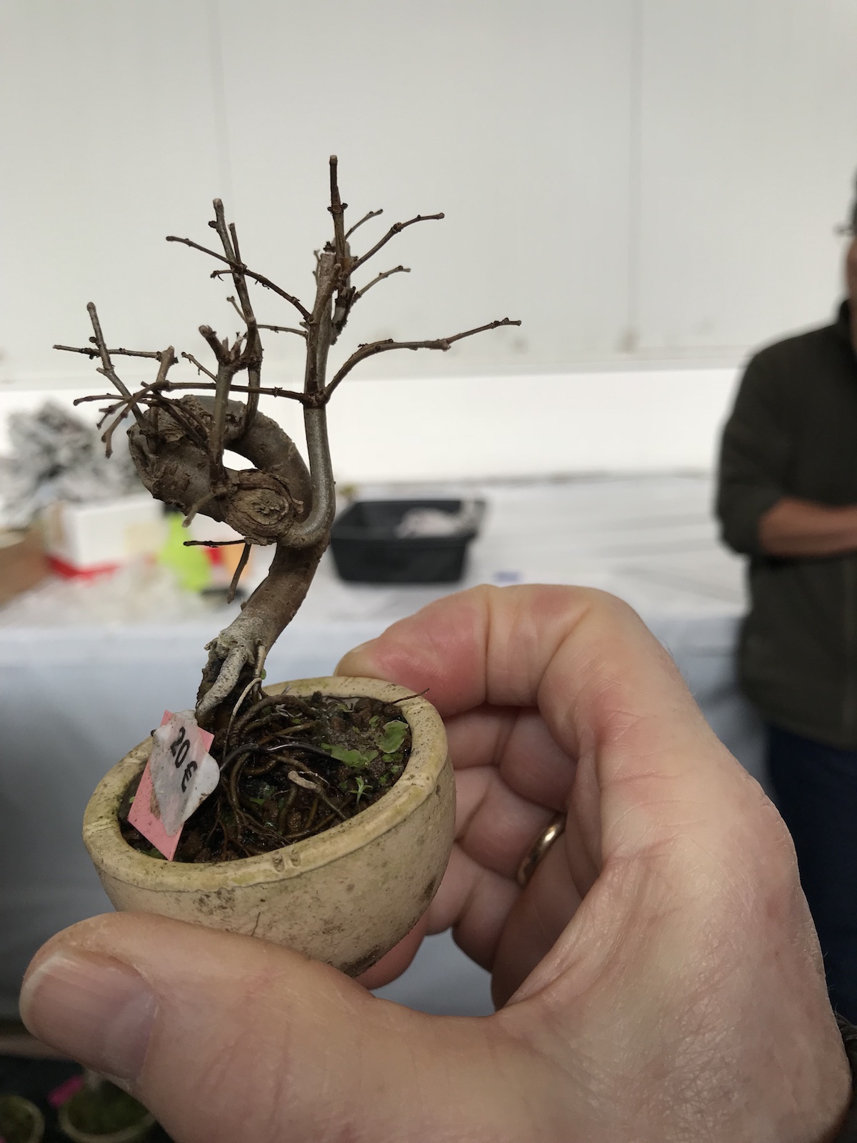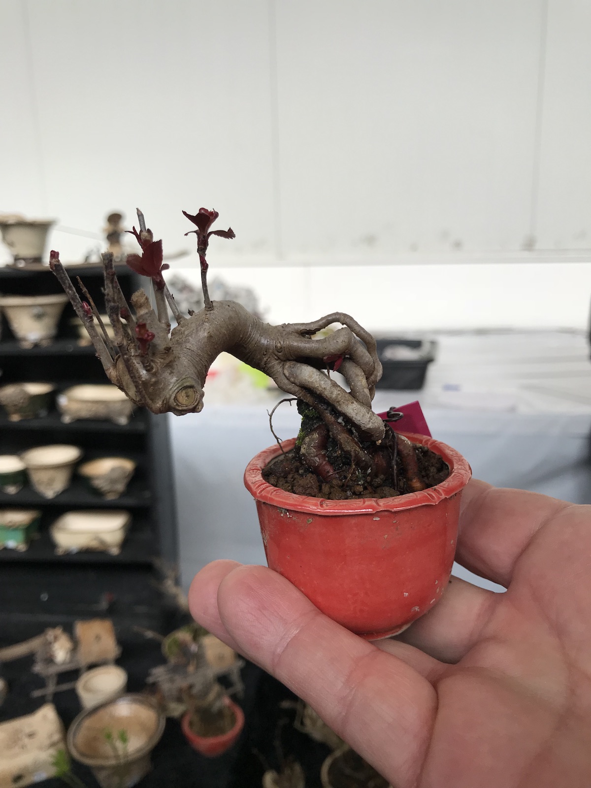 One trader who caught my eye and interest this weekend at the Lodder Bonsai open weekend was Lotus Bonsai Studio. Wow was my first impression to his stunning pots with such artistic flare and detail, they were wonderful. In addition he had some exquisite mame bonsai over rocks which has inspired me to have a go at creating some myself as well as making a purchase of a ready made one.