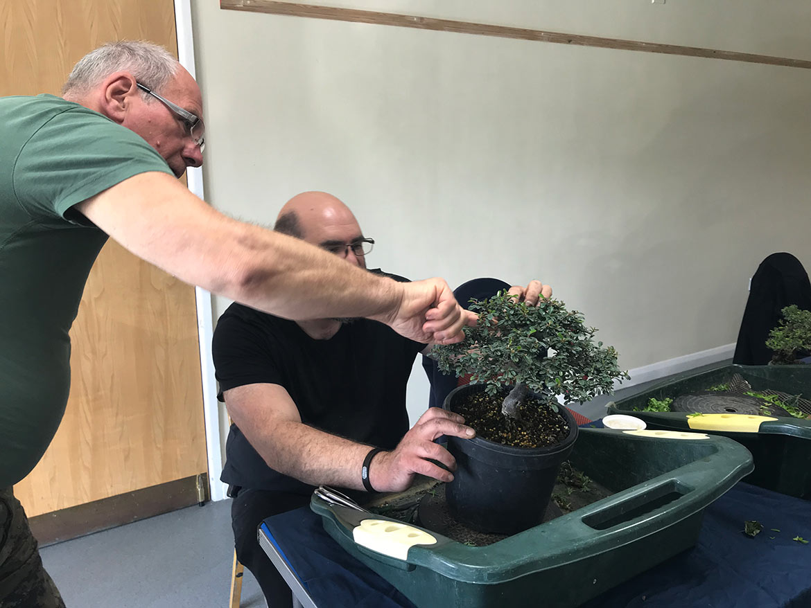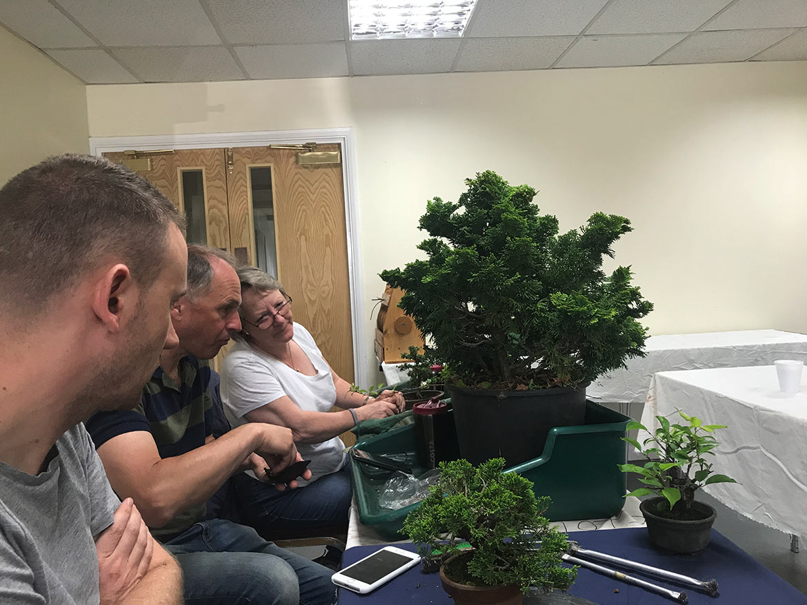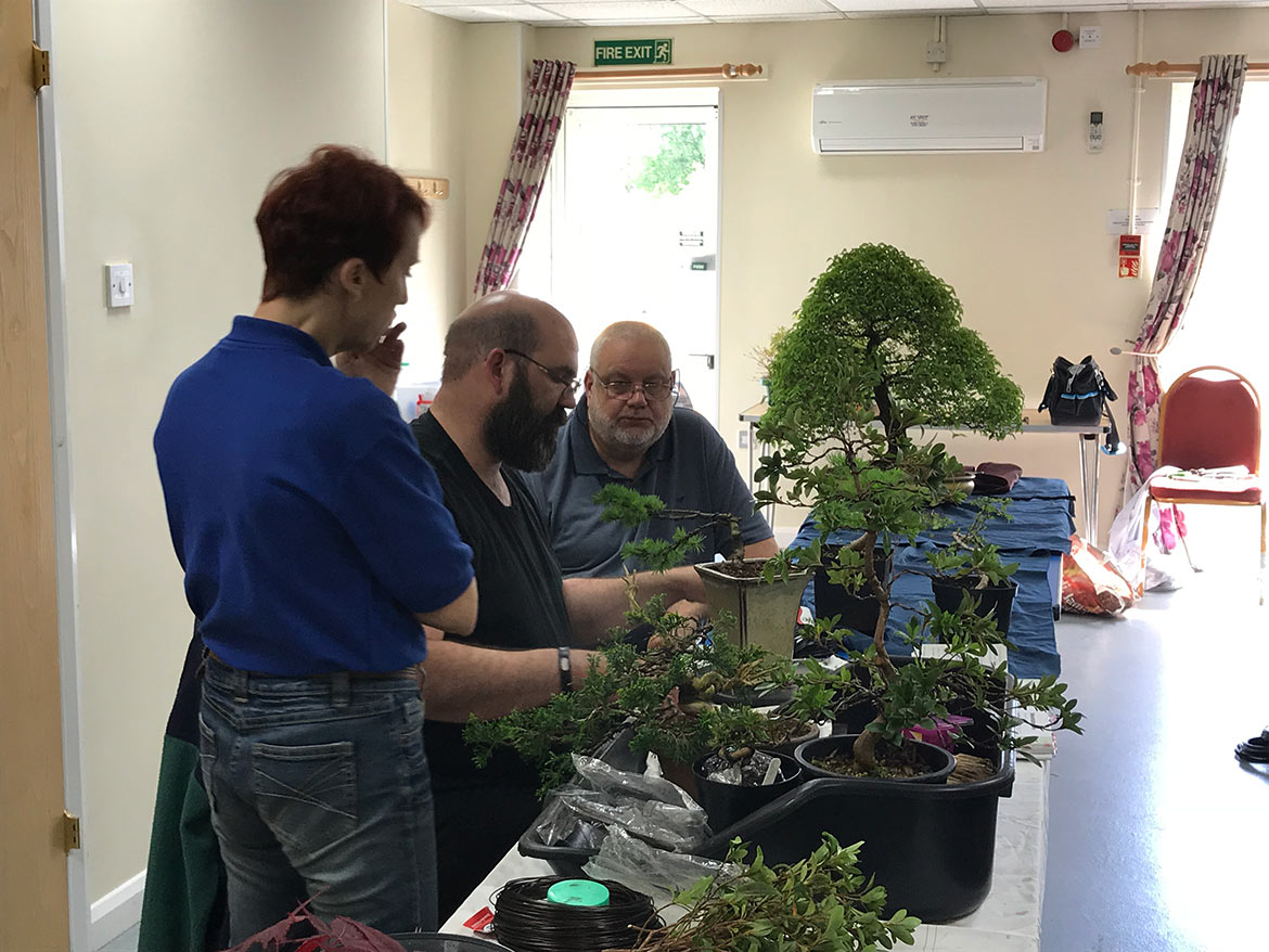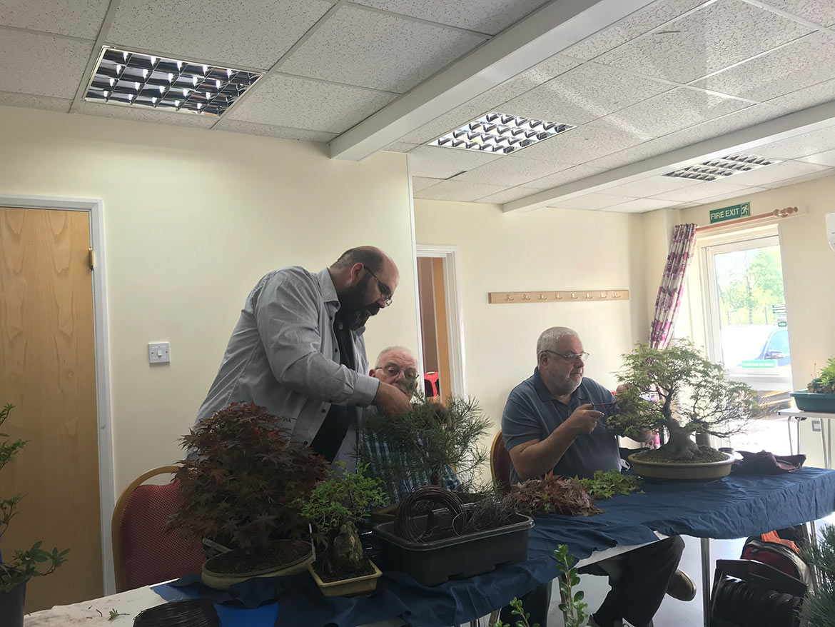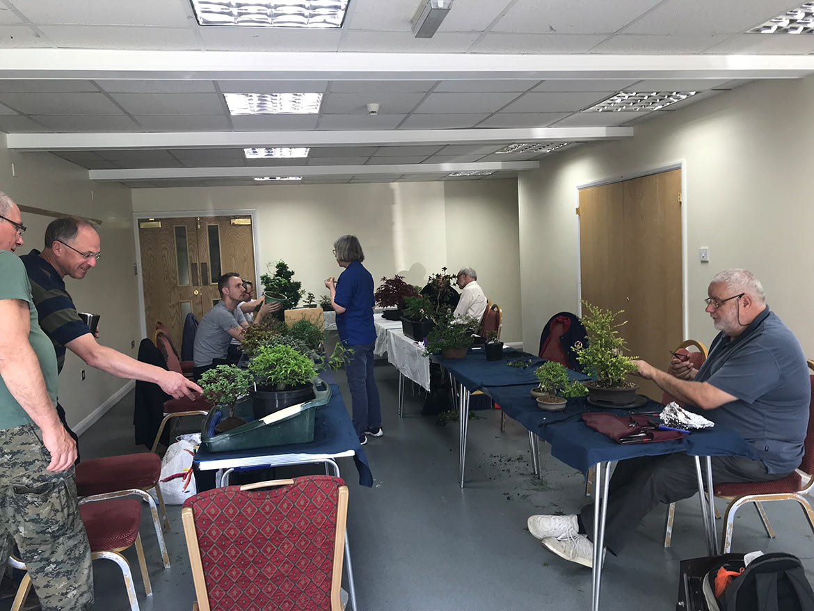 A fun day was had by all at the workshop with John Armitage. We all bought in lots of trees to work on and get help and advice from John on styling, development, pruning and much more. Below are a few images from the day. Well worth attending the full day workshops as you can get so much done and get on hand advice and guidance.