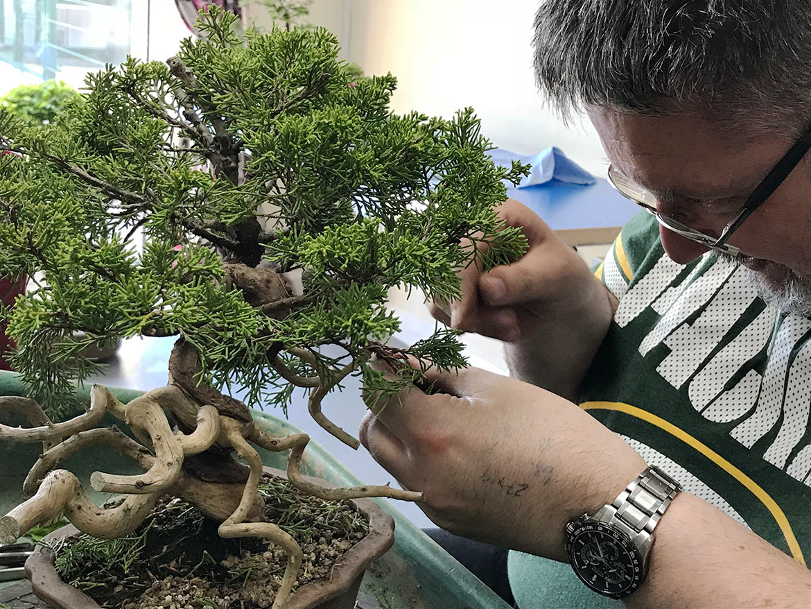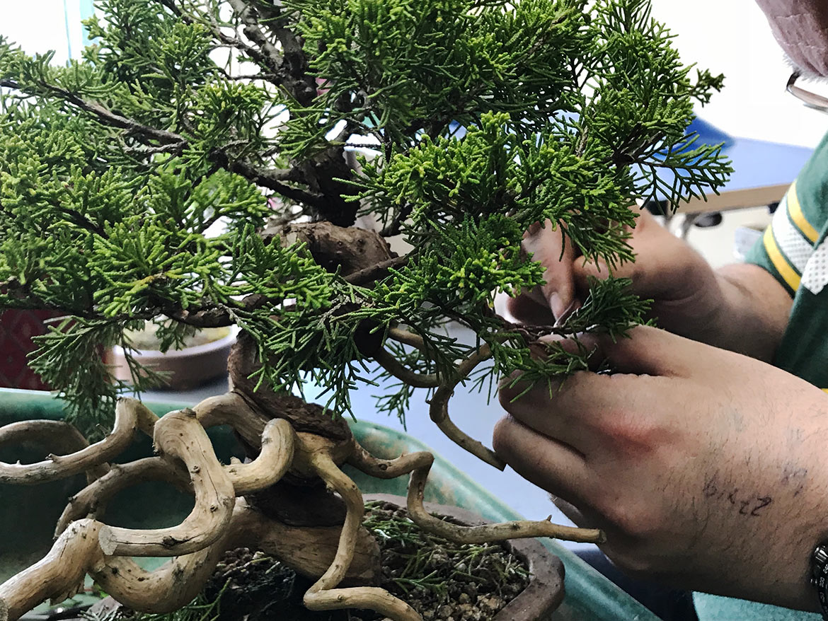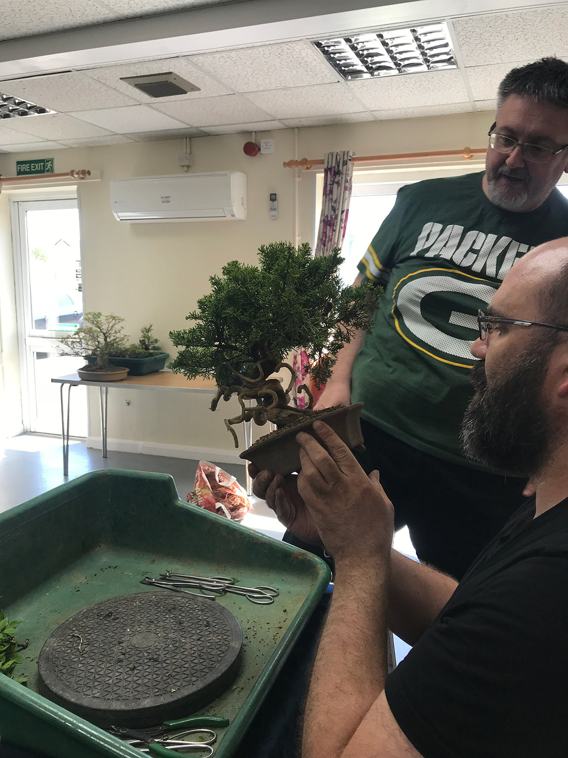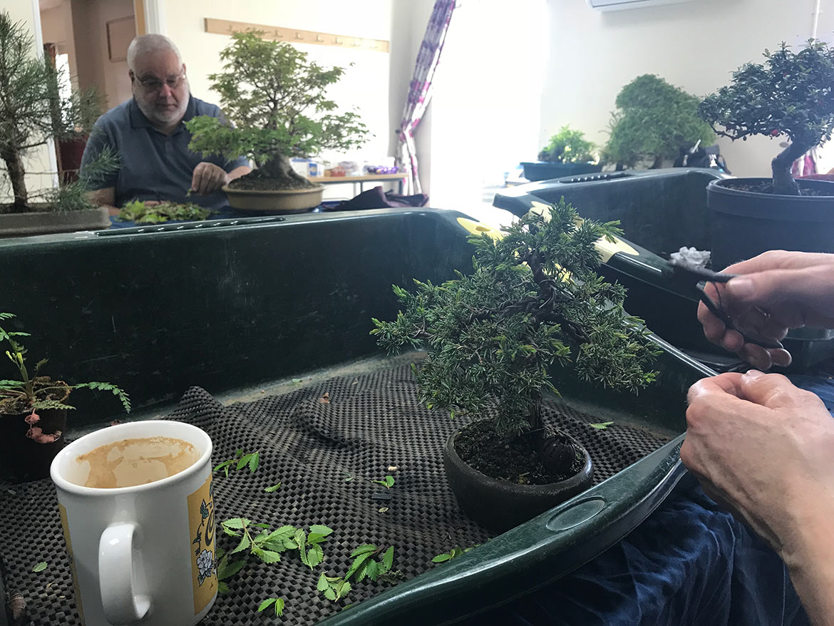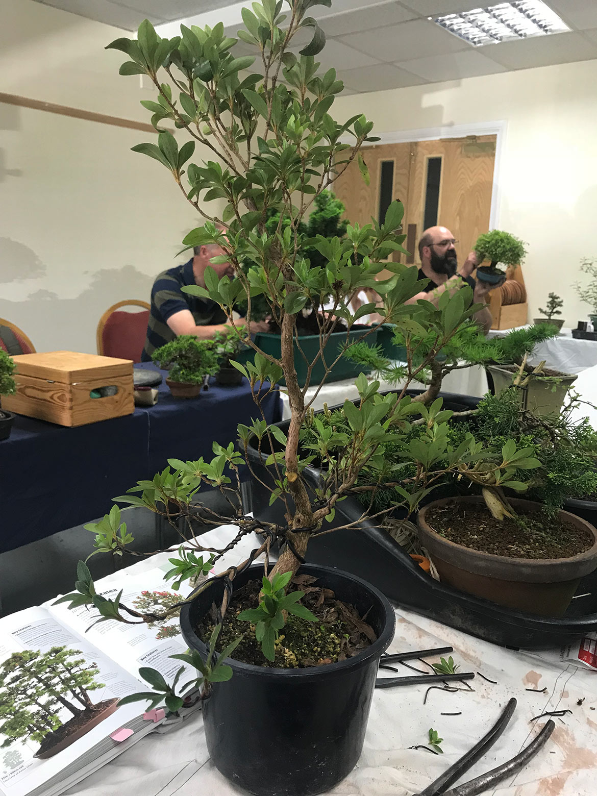 A fun day was had by all at the workshop with John Armitage. We all bought in lots of trees to work on and get help and advice from John on styling, development, pruning and much more. Below are a few images from the day. Well worth attending the full day workshops as you can get so much done and get on hand advice and guidance.